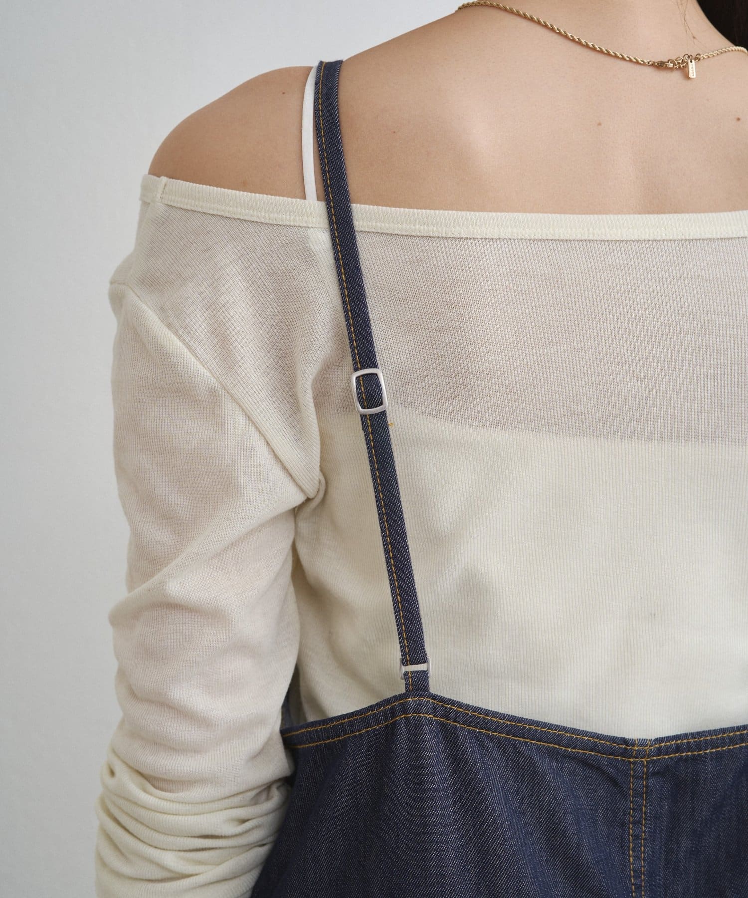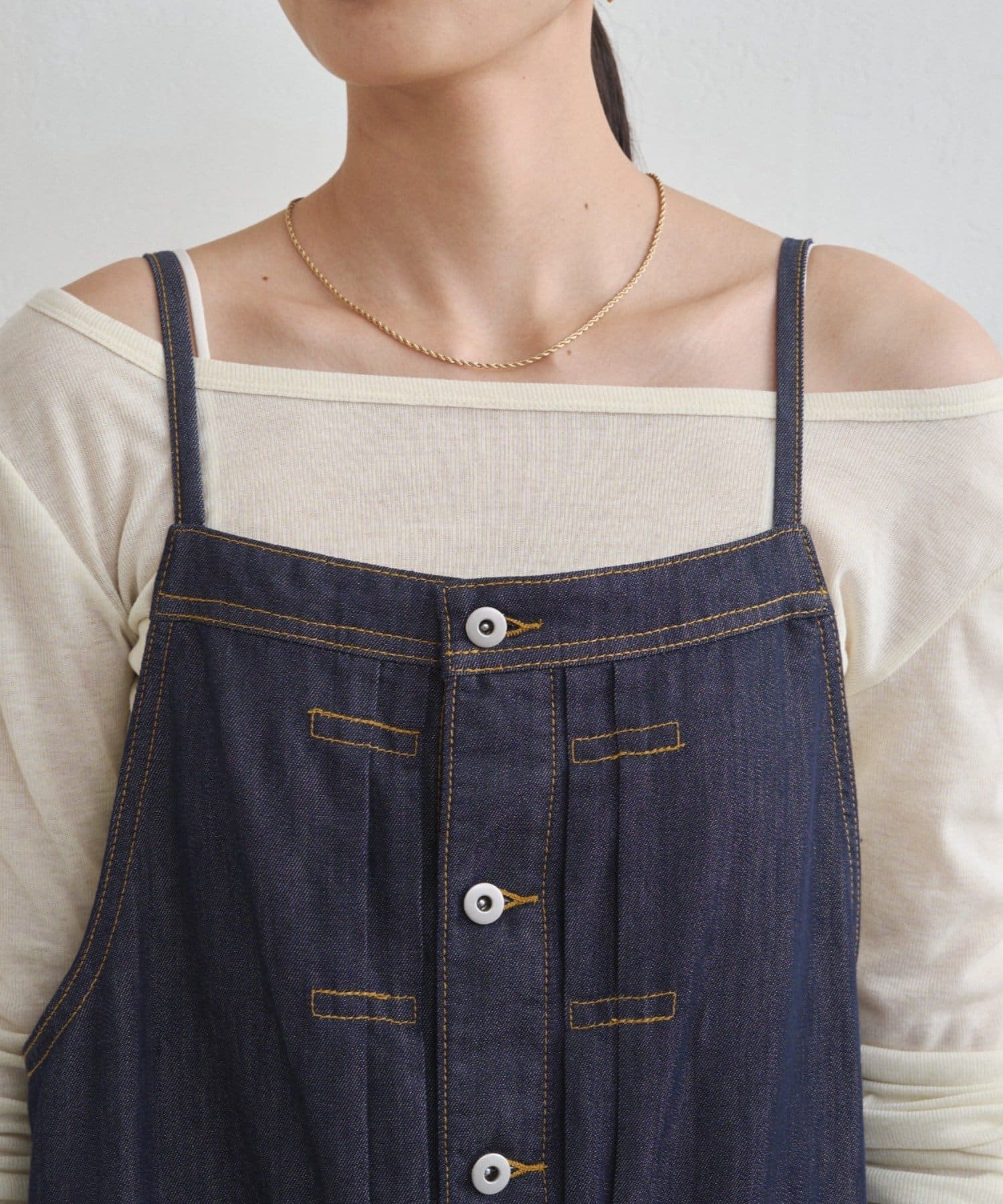 インナー次第で印象ががらりと変わるのが、サロペットの魅力。