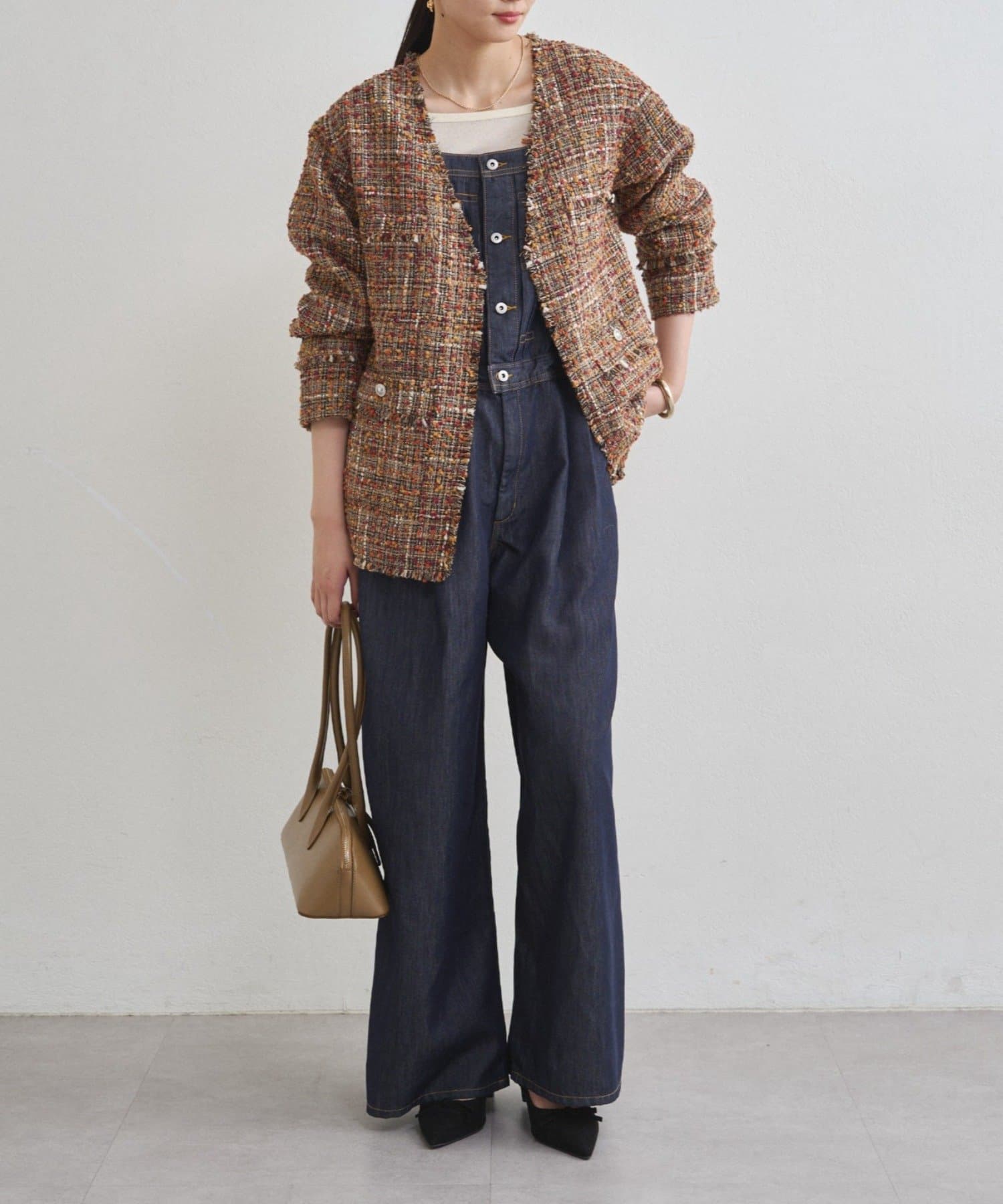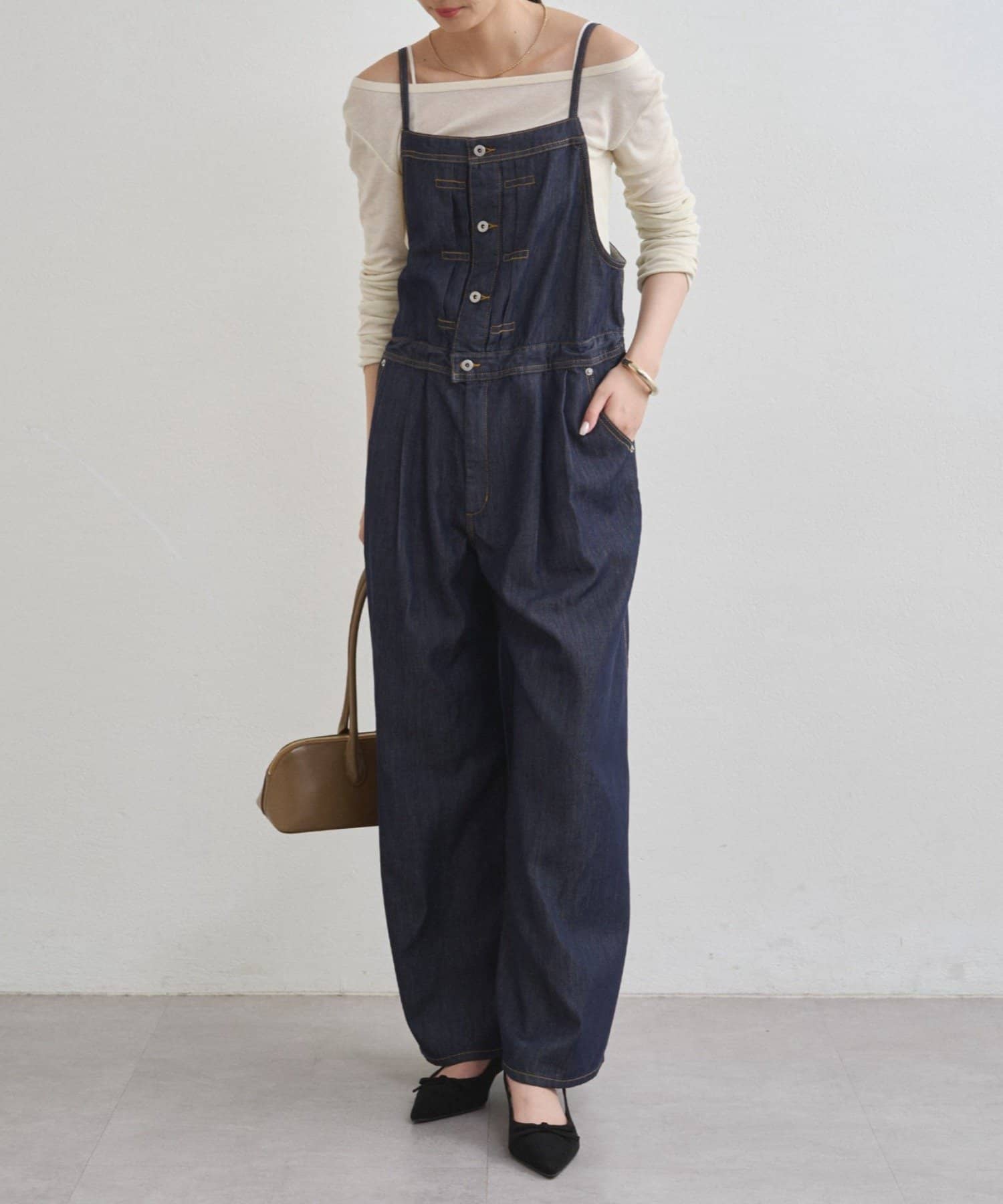 カジュアルながらも洗練された雰囲気を醸し出すデニムサロペット