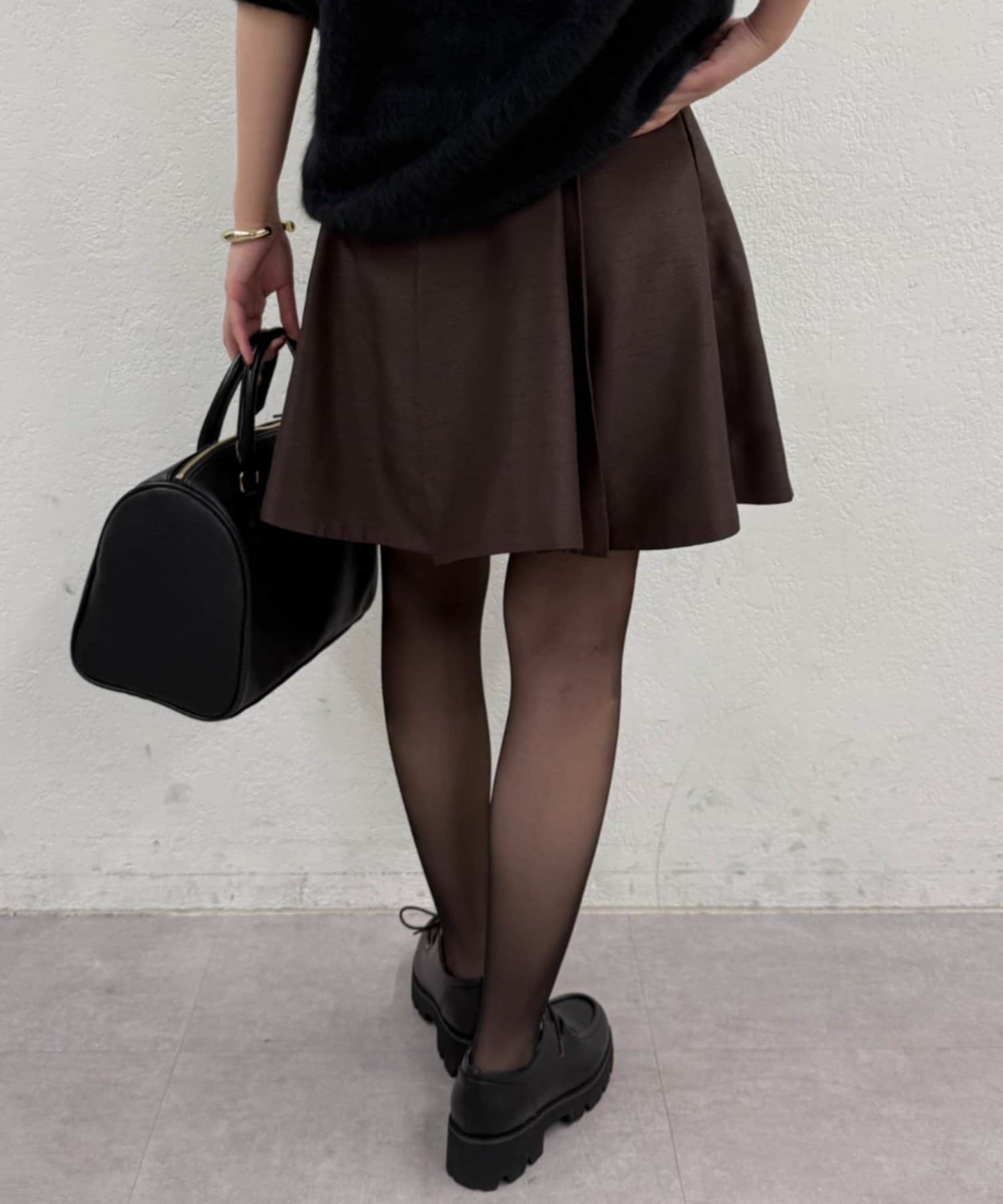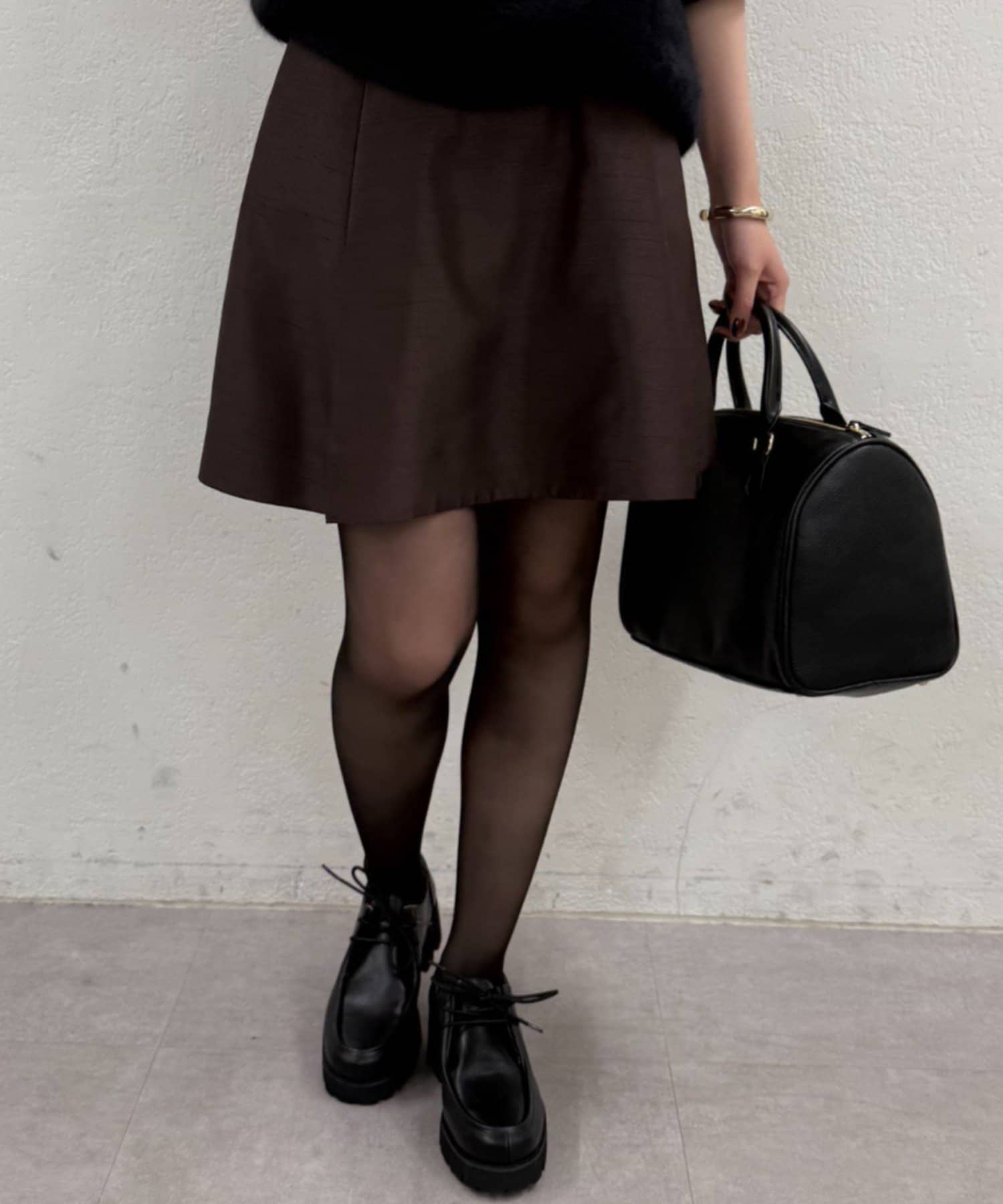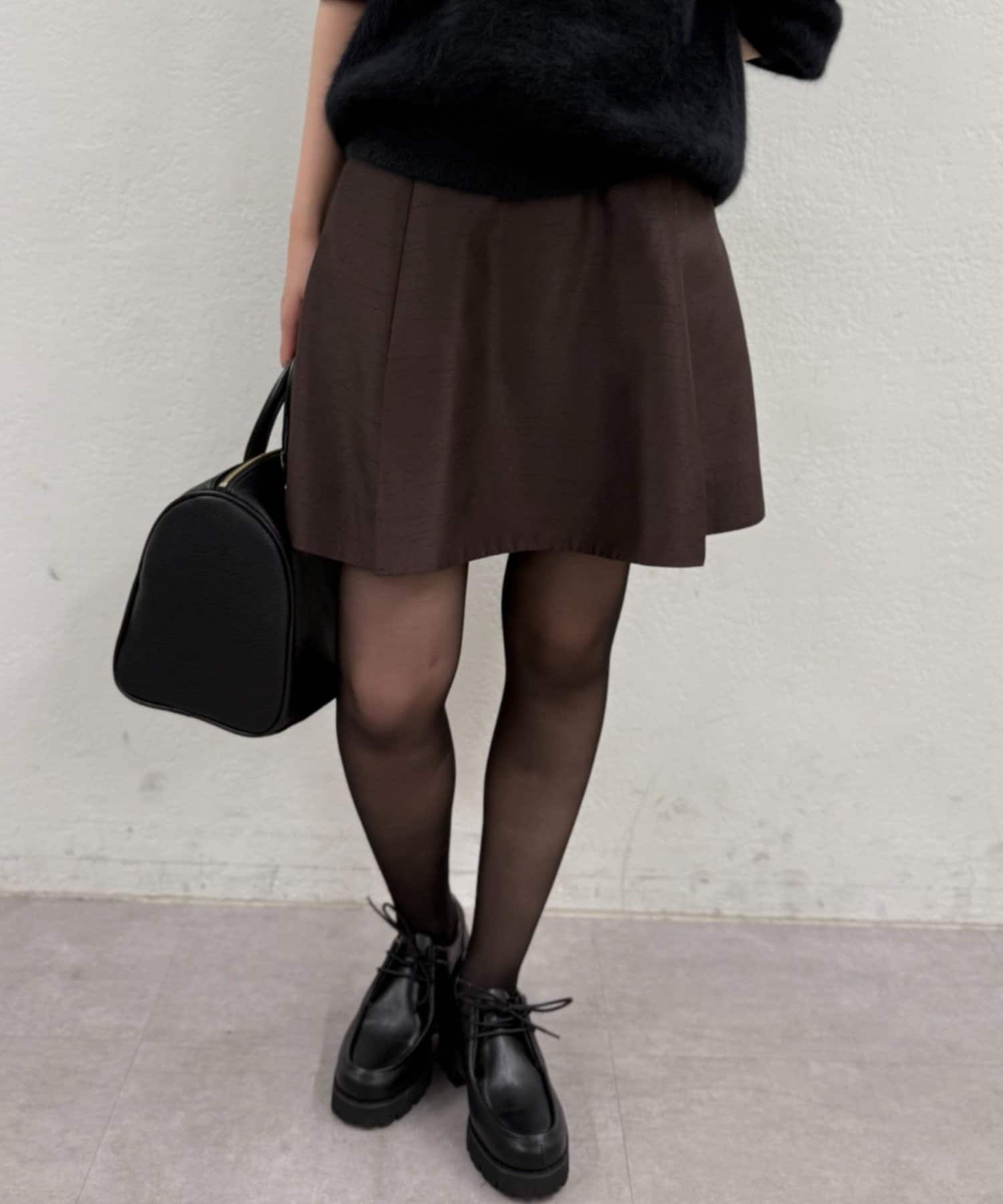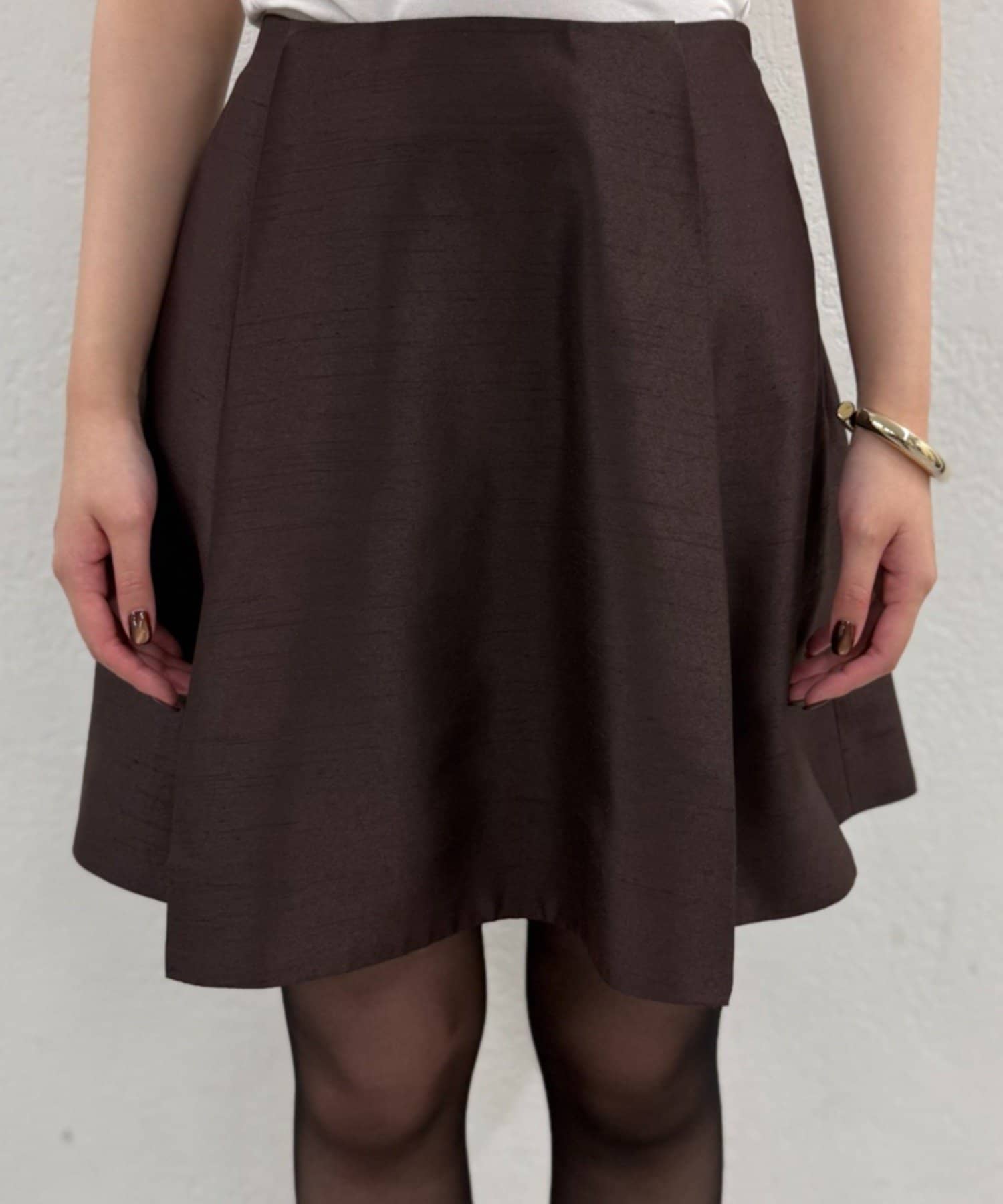 広がりすぎない絶妙なフレアが、動くたびに優雅な印象を与えるミニスカート。