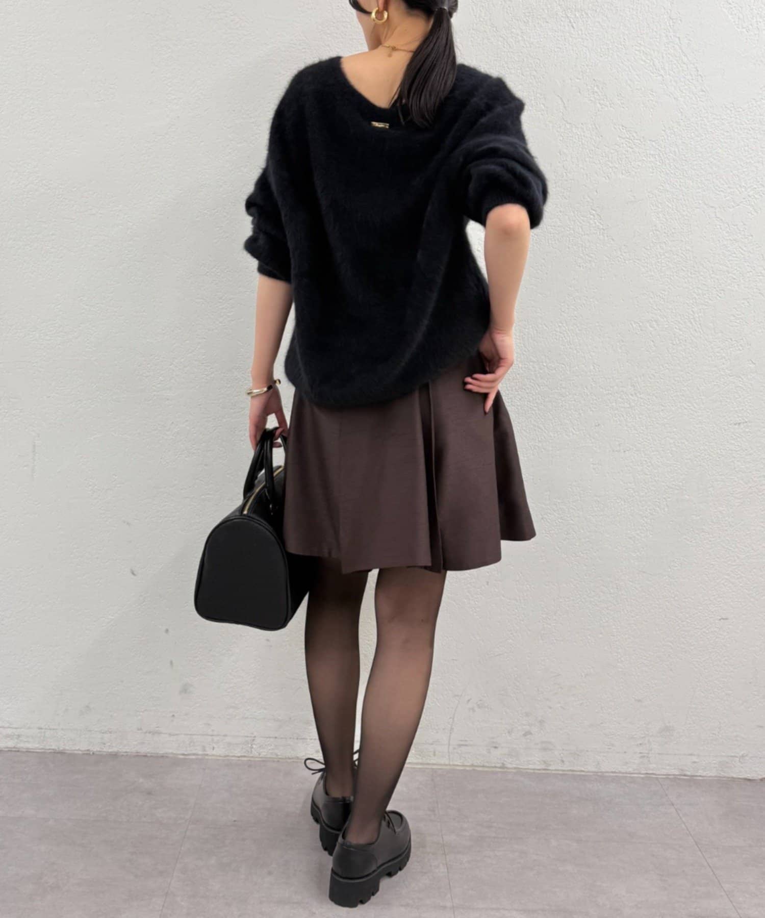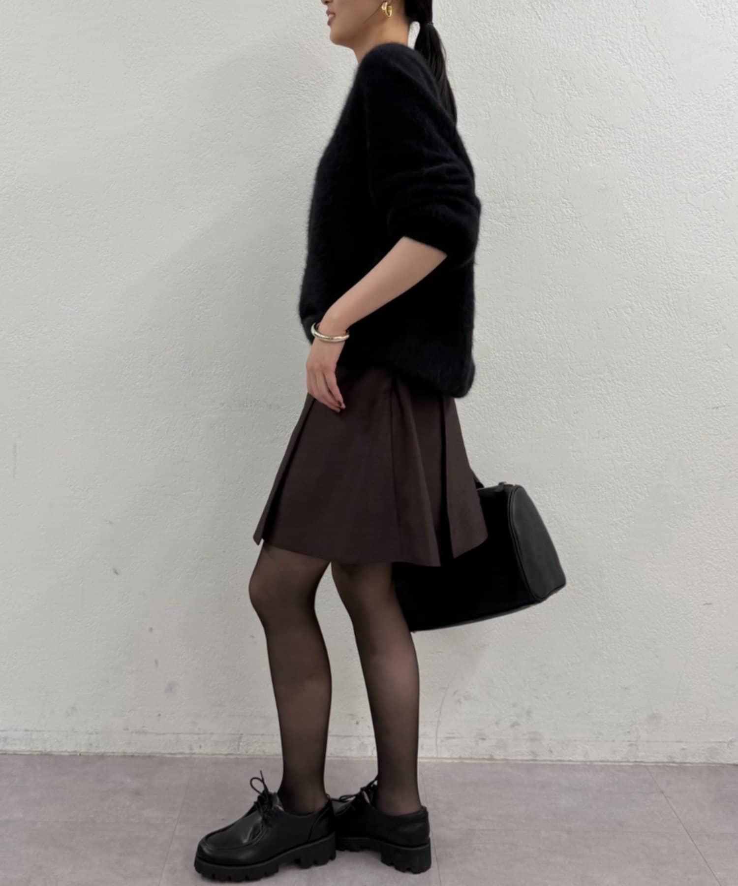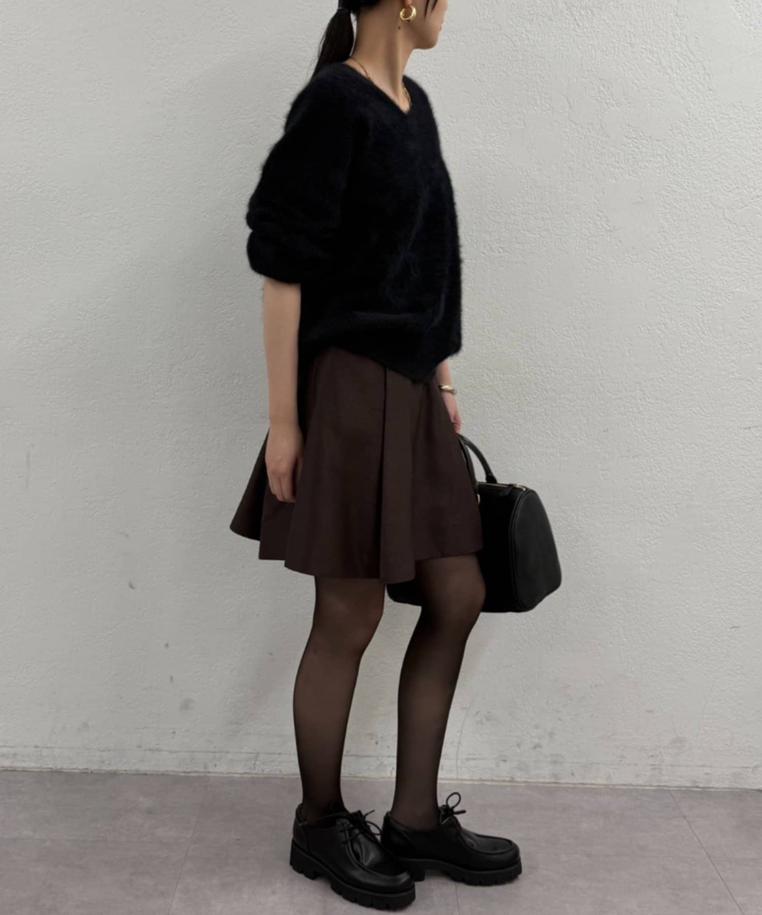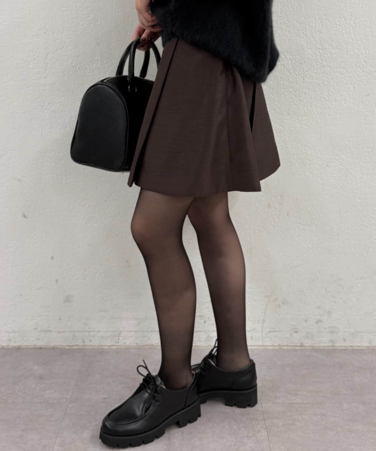 広がりすぎない絶妙なフレアが、動くたびに優雅な印象を与えるミニスカート。