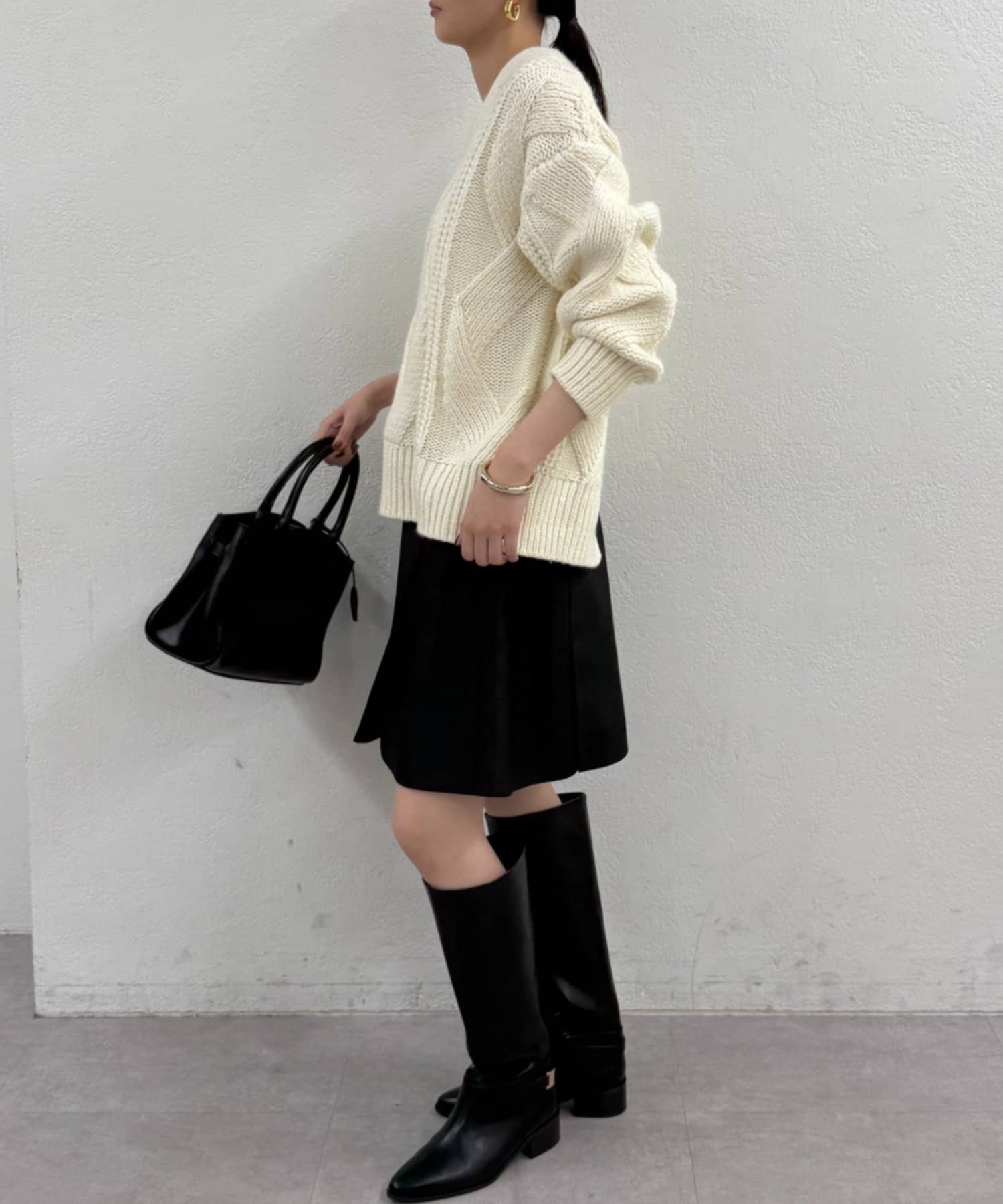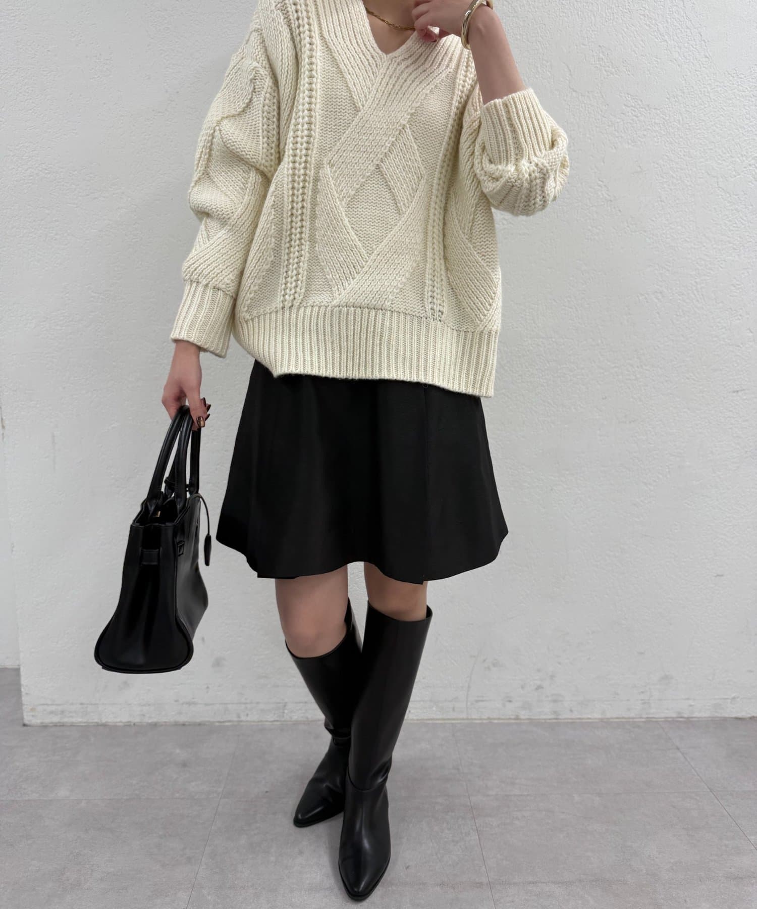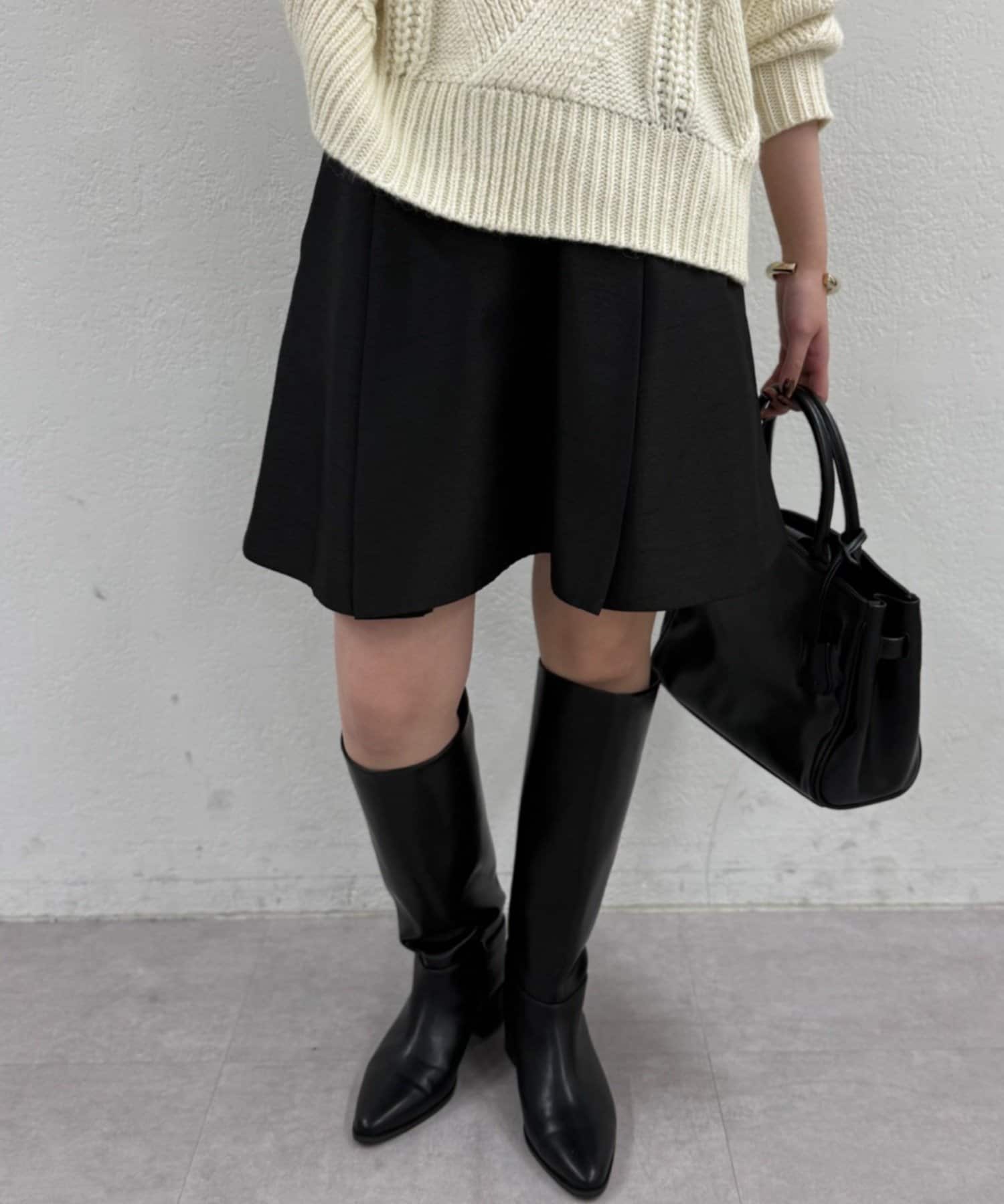 気になる太もも周りをさりげなくカバーし、スタイルアップ効果も。ブラウスやニットを合わせれば、上品で大人可愛いコーデに。