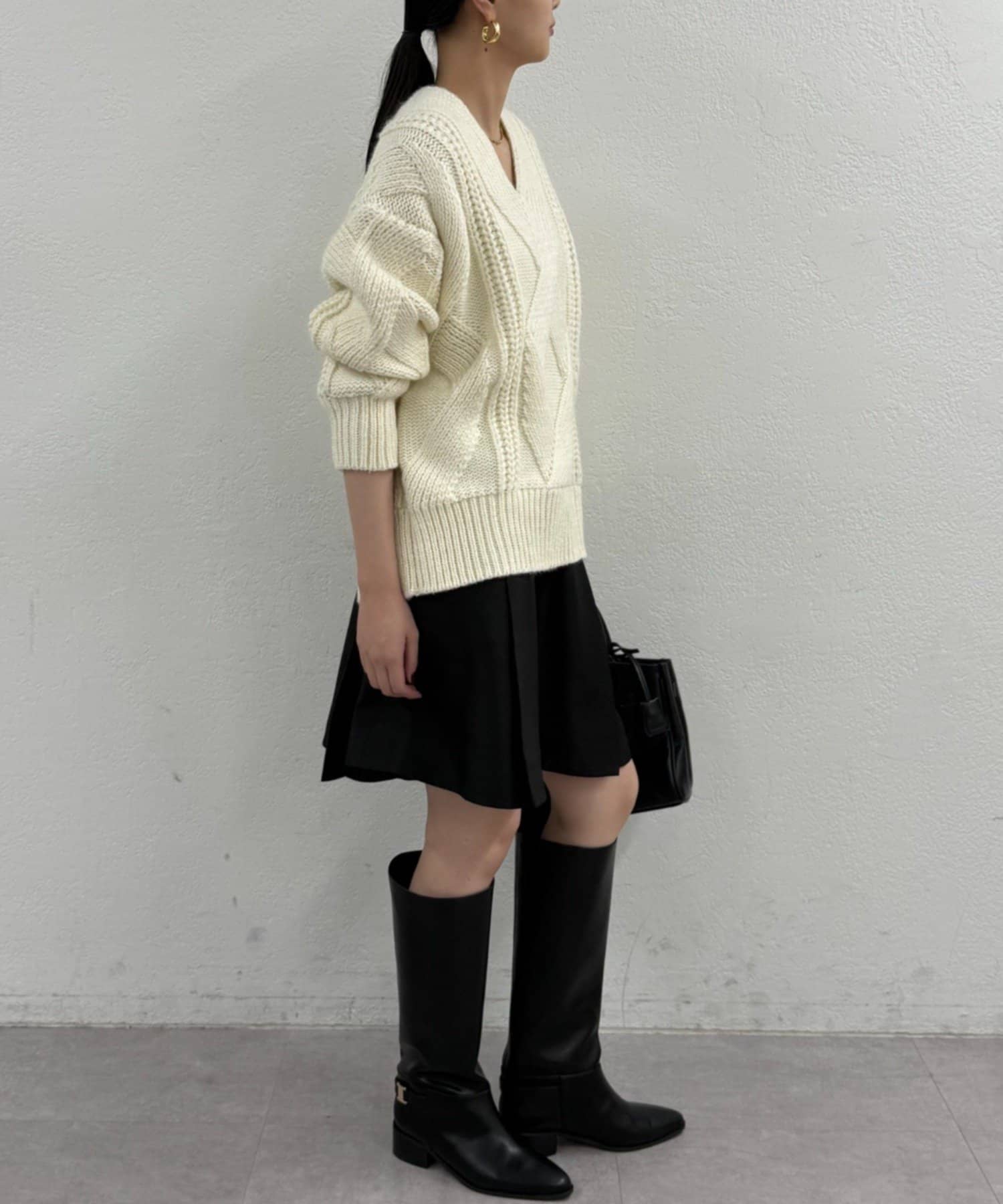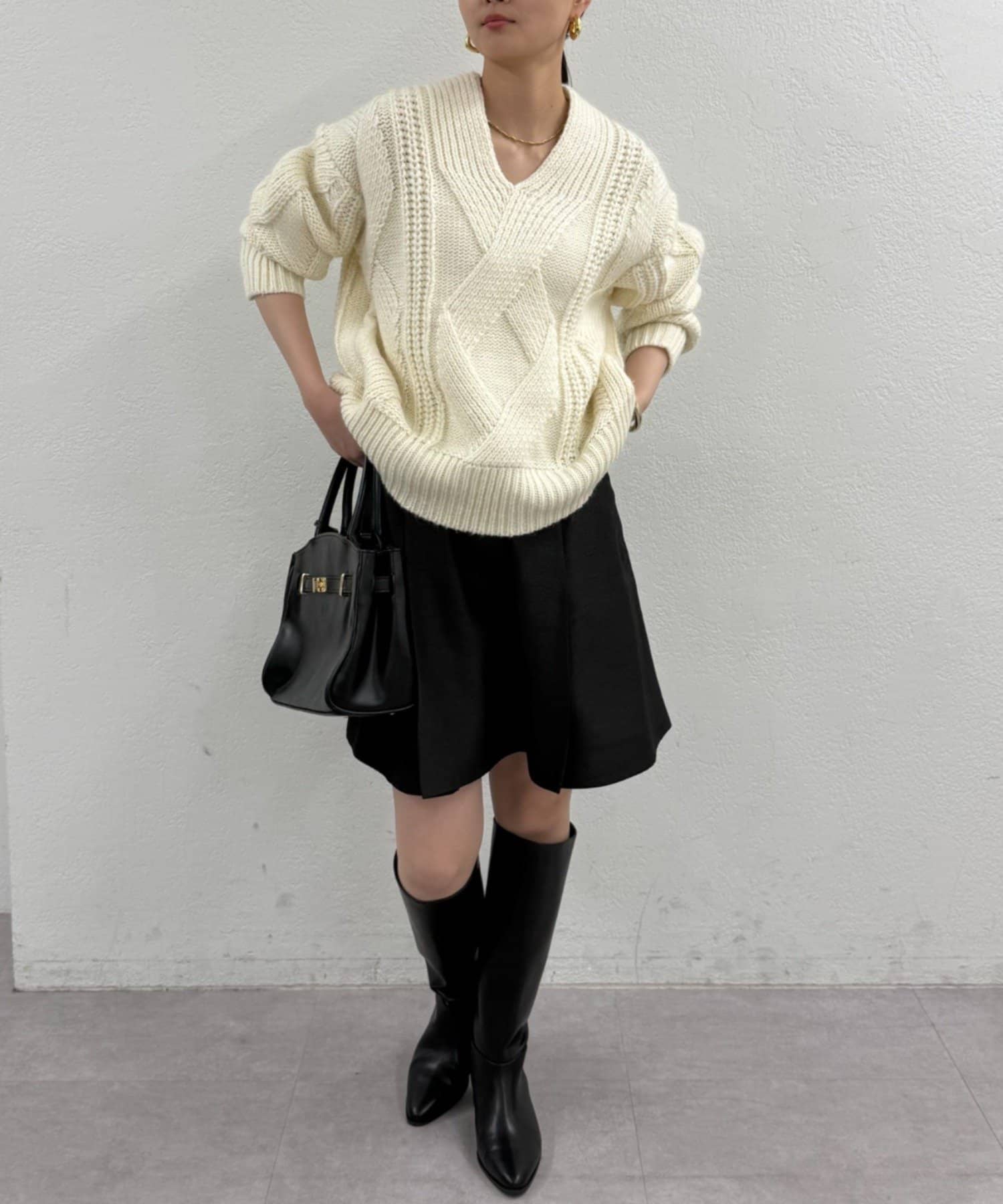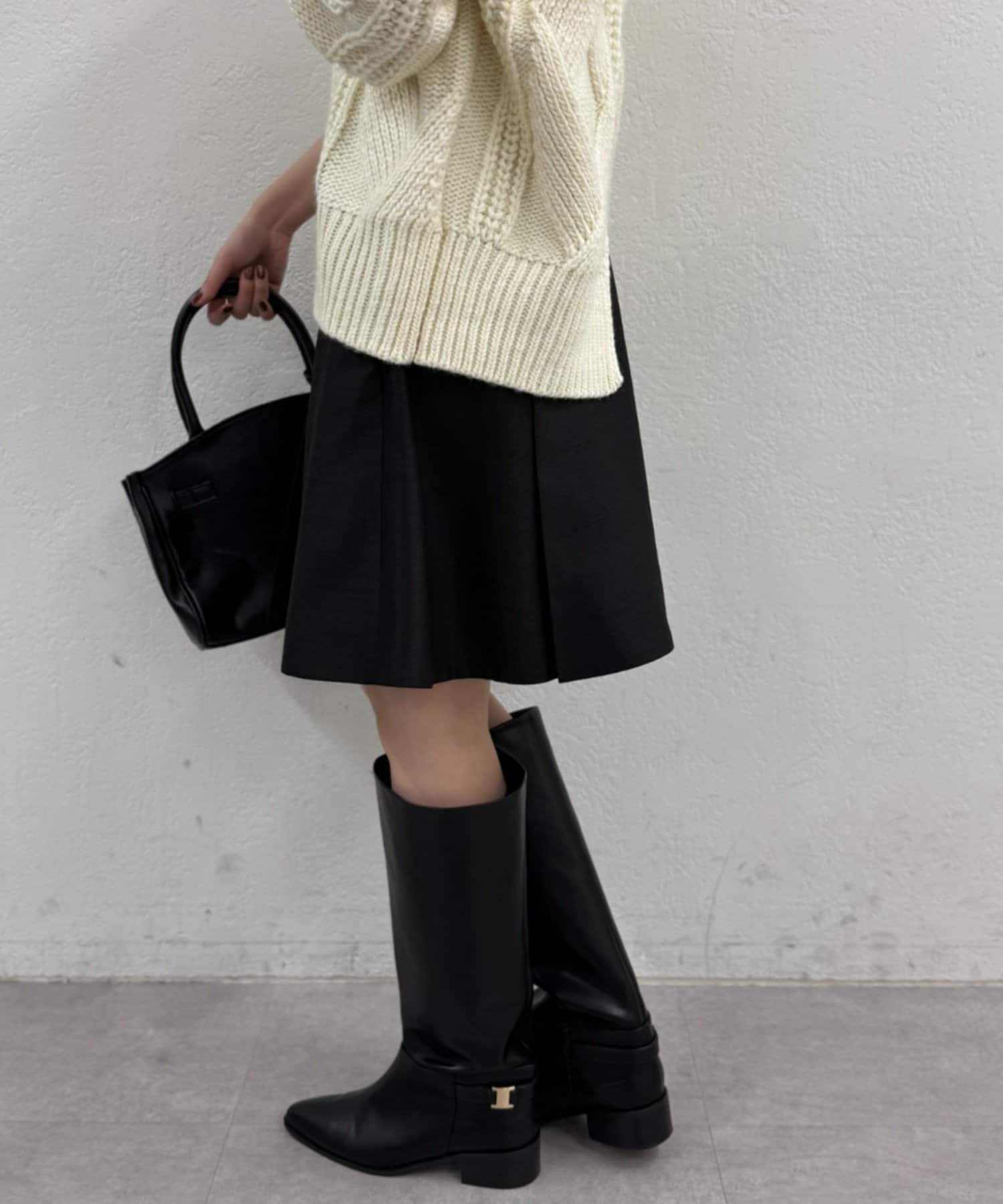 気になる太もも周りをさりげなくカバーし、スタイルアップ効果も。ブラウスやニットを合わせれば、上品で大人可愛いコーデに。