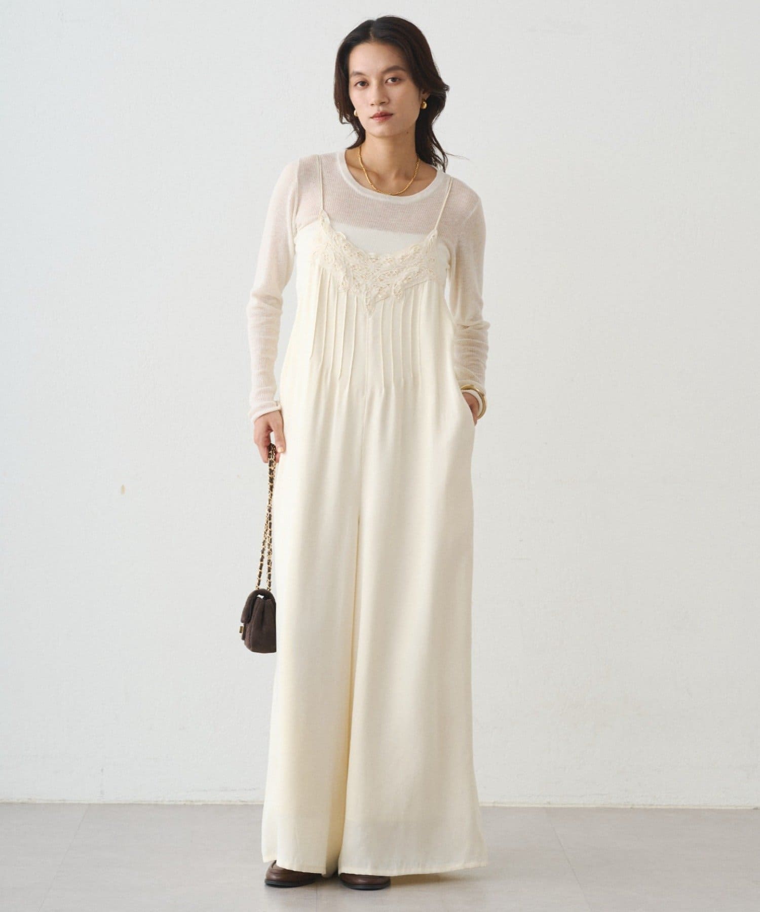 ワンピースやジャケットのインナーとして、オフィススタイルにも◎