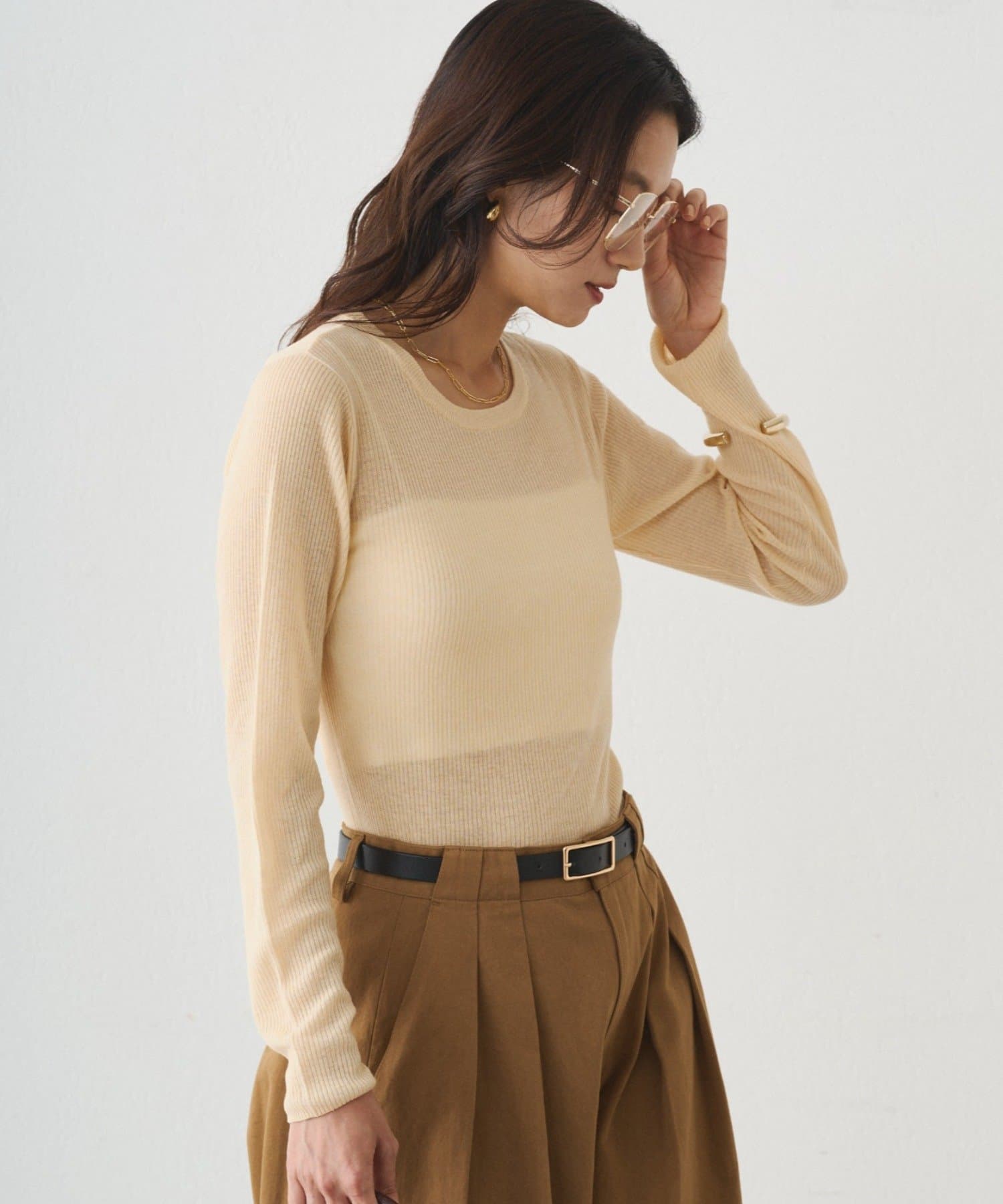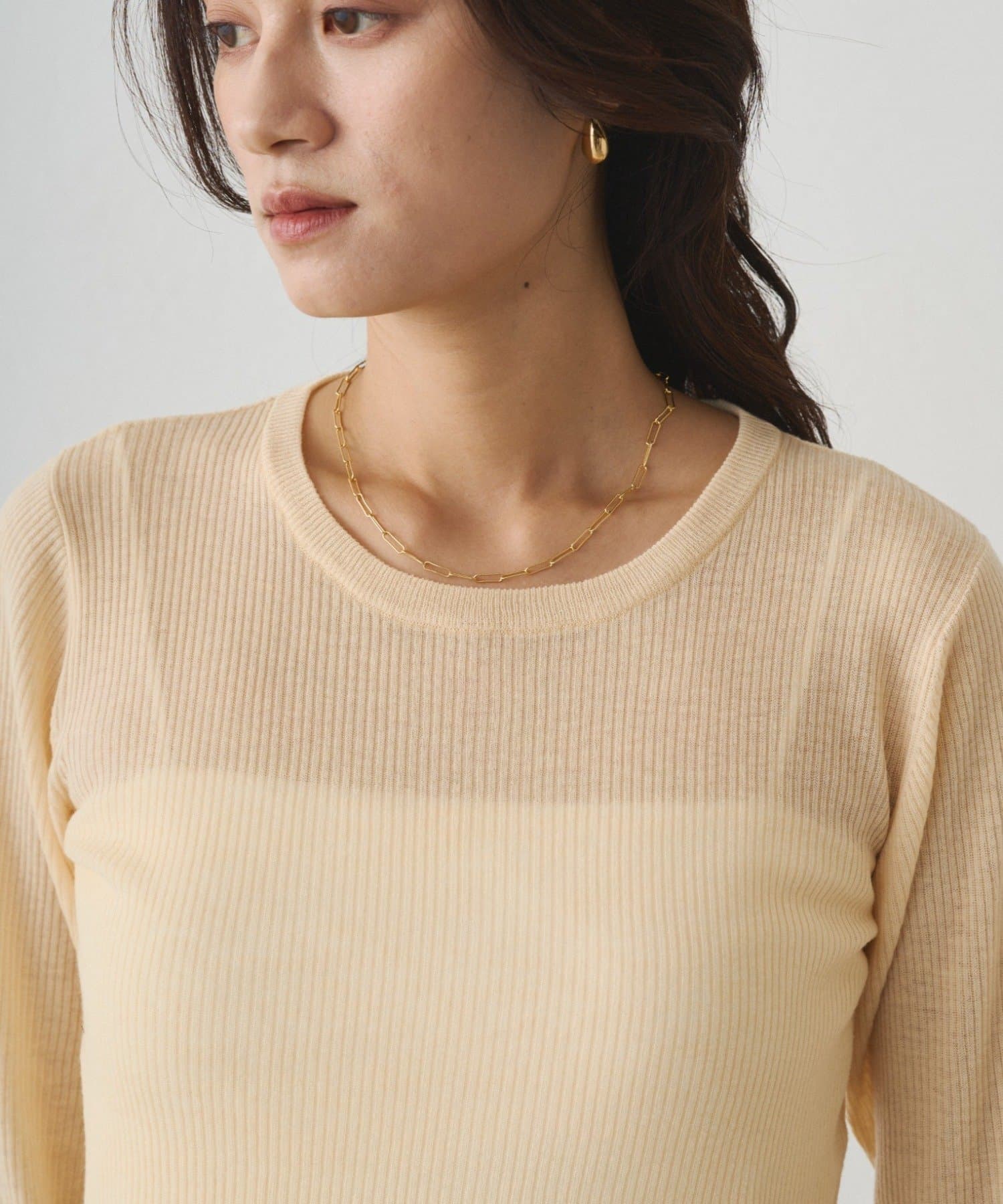 エアリーな透け感で魅せる、シアーニットプルオーバー。