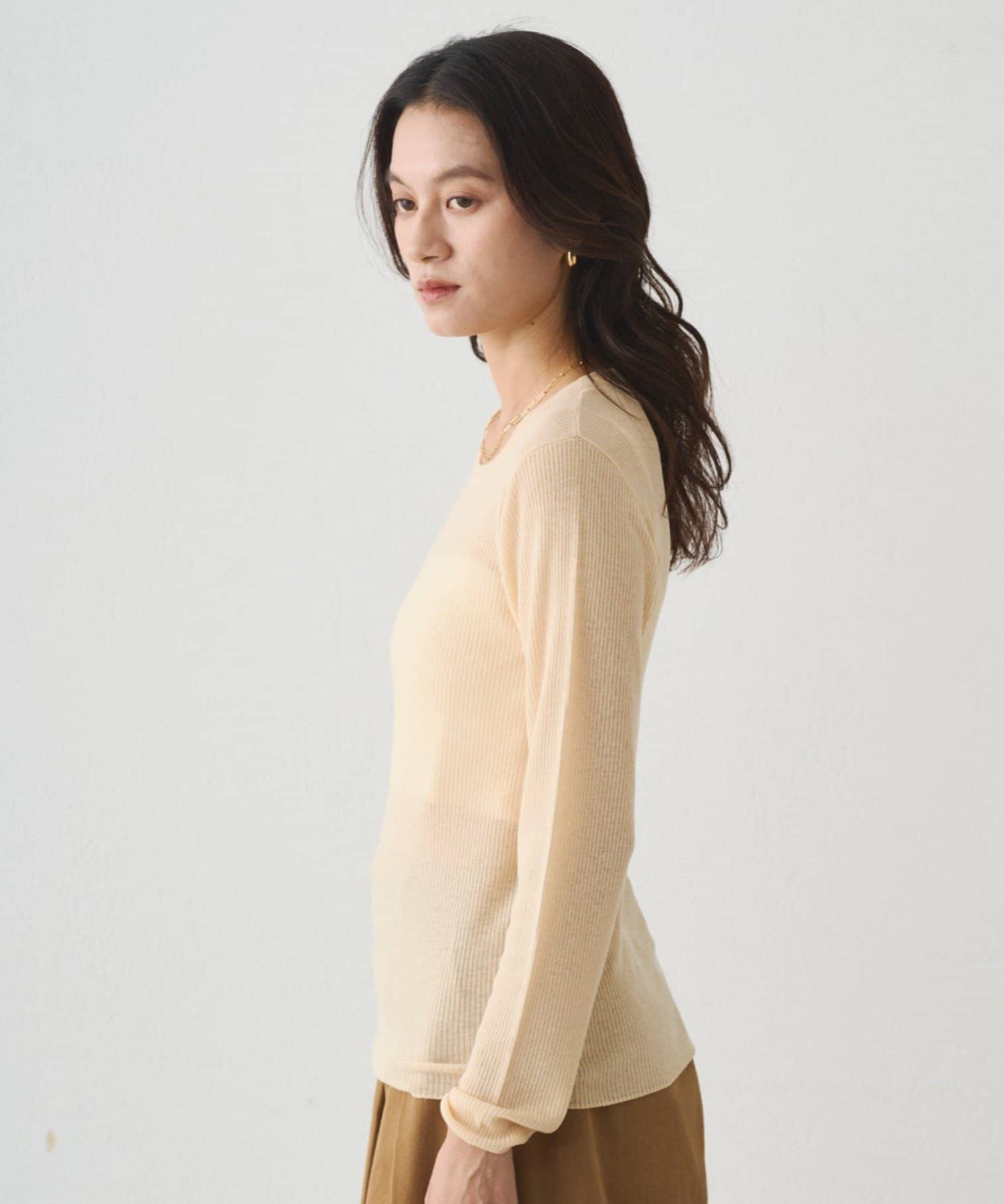 無駄のないシンプルなデザインで、どんなアイテムとも相性抜群。1枚で着るのはもちろん、インナーとのレイヤードも楽しめます。