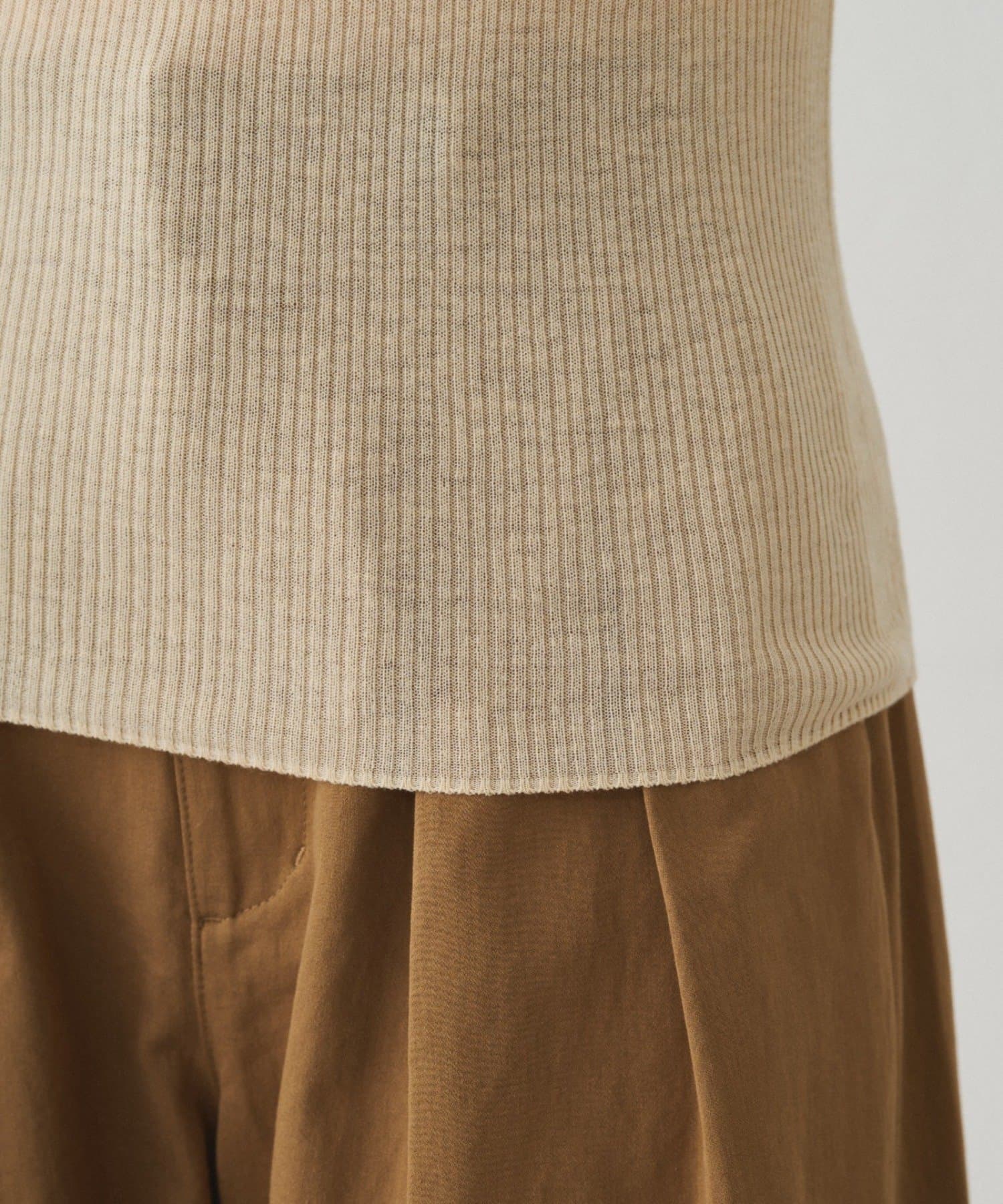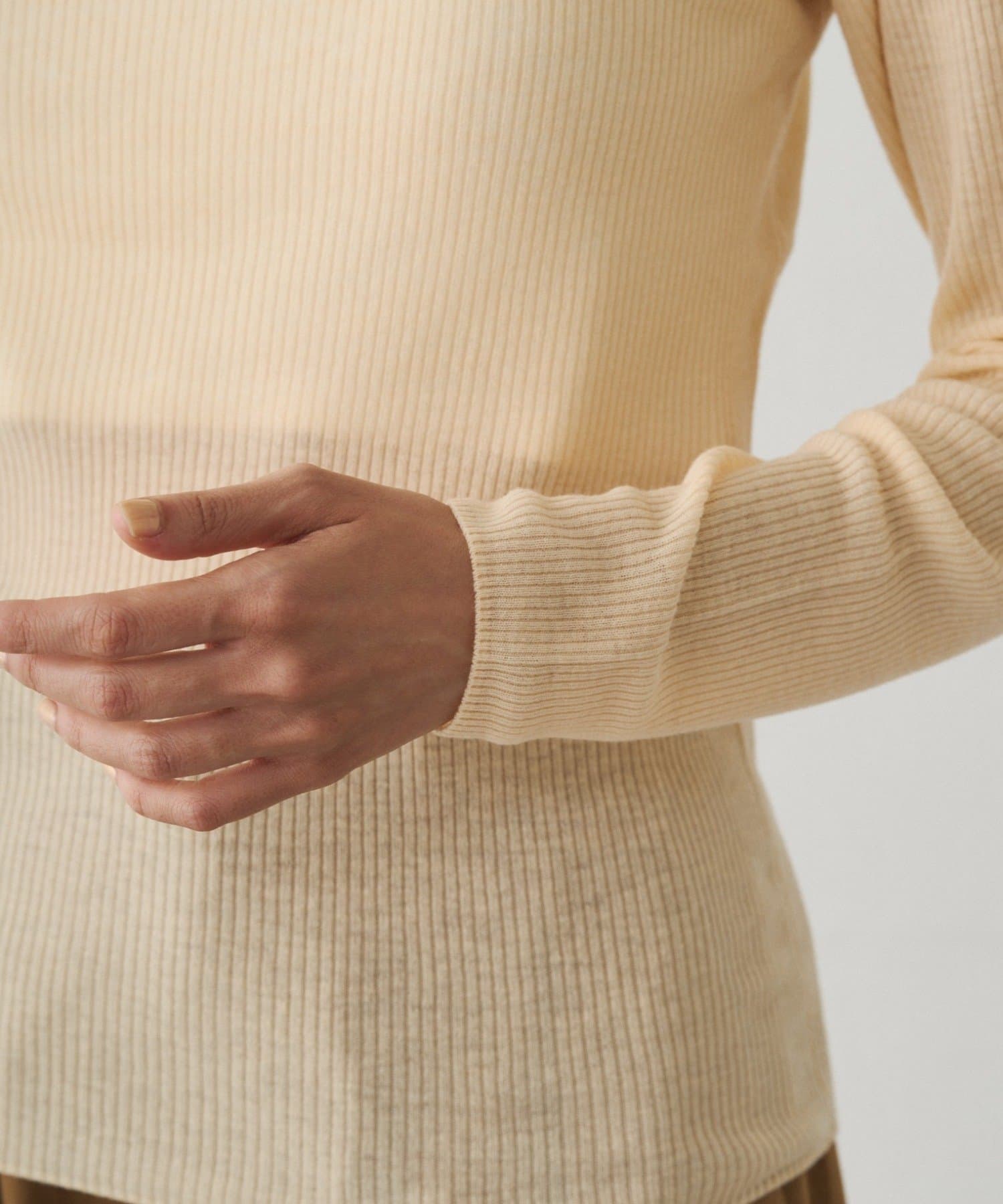 袖口と裾には、細幅のマルロン糸を使用。繊細な印象に仕立て、手首や裾を華奢に見せてくれます。