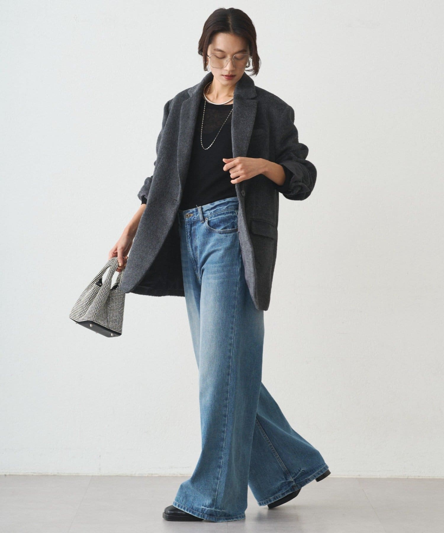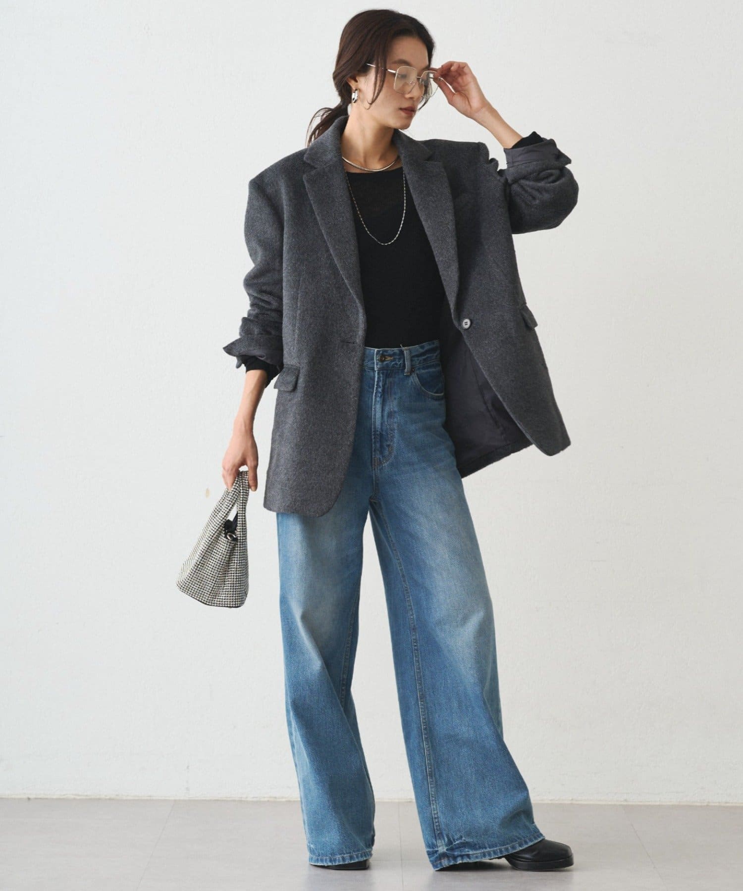 シンプルなコーディネートに羽織るだけで、トレンド感のあるスタイルが完成します。