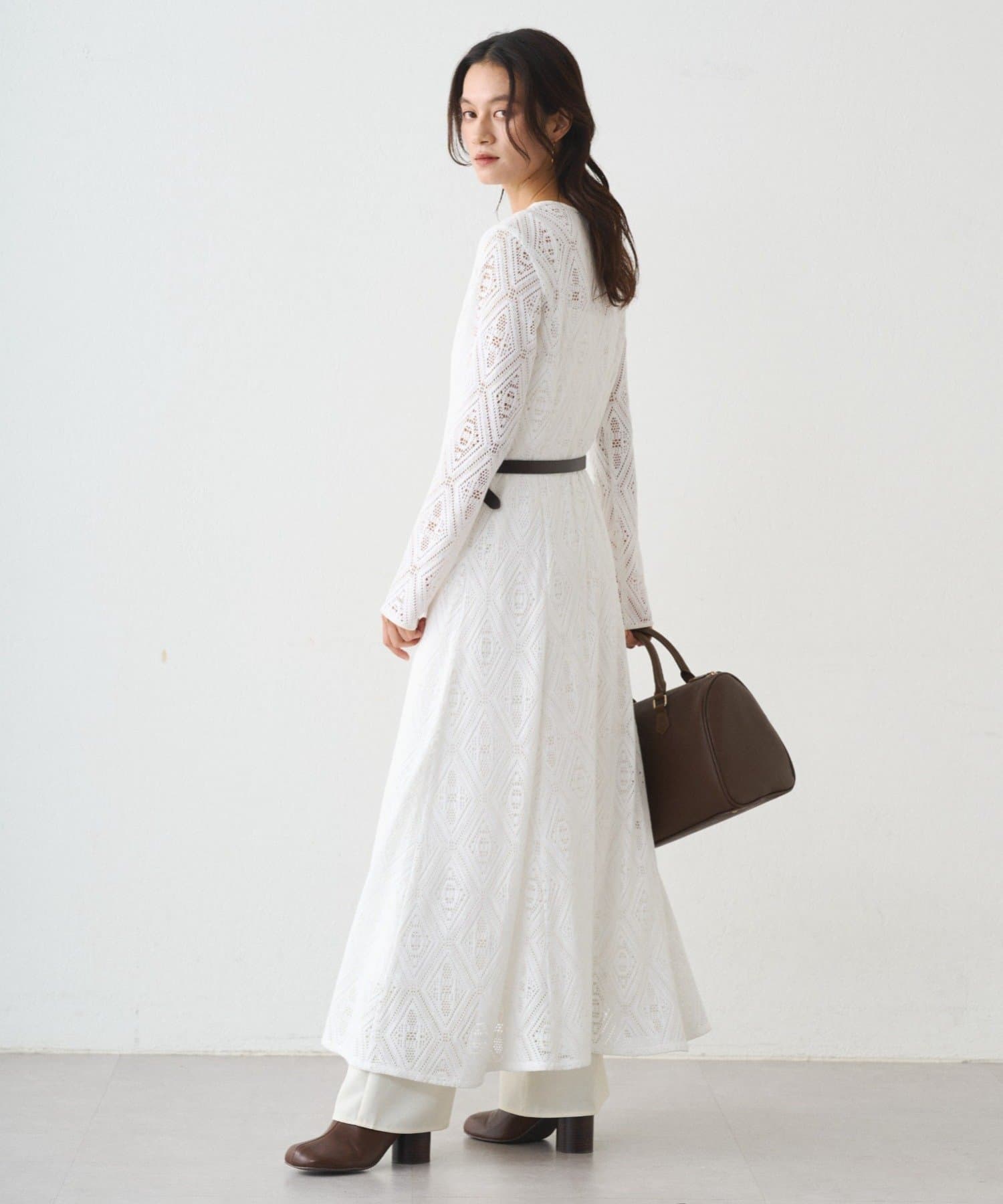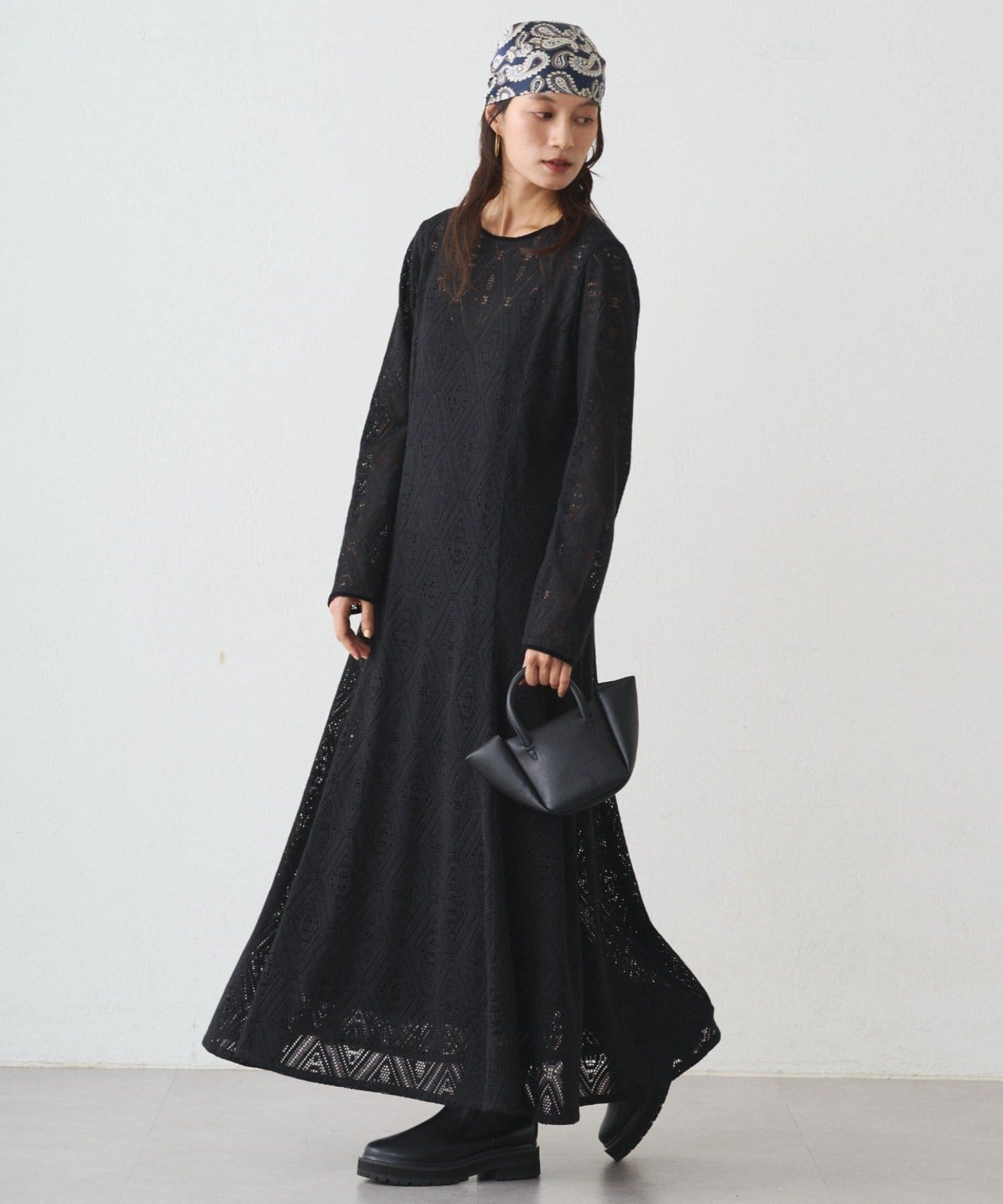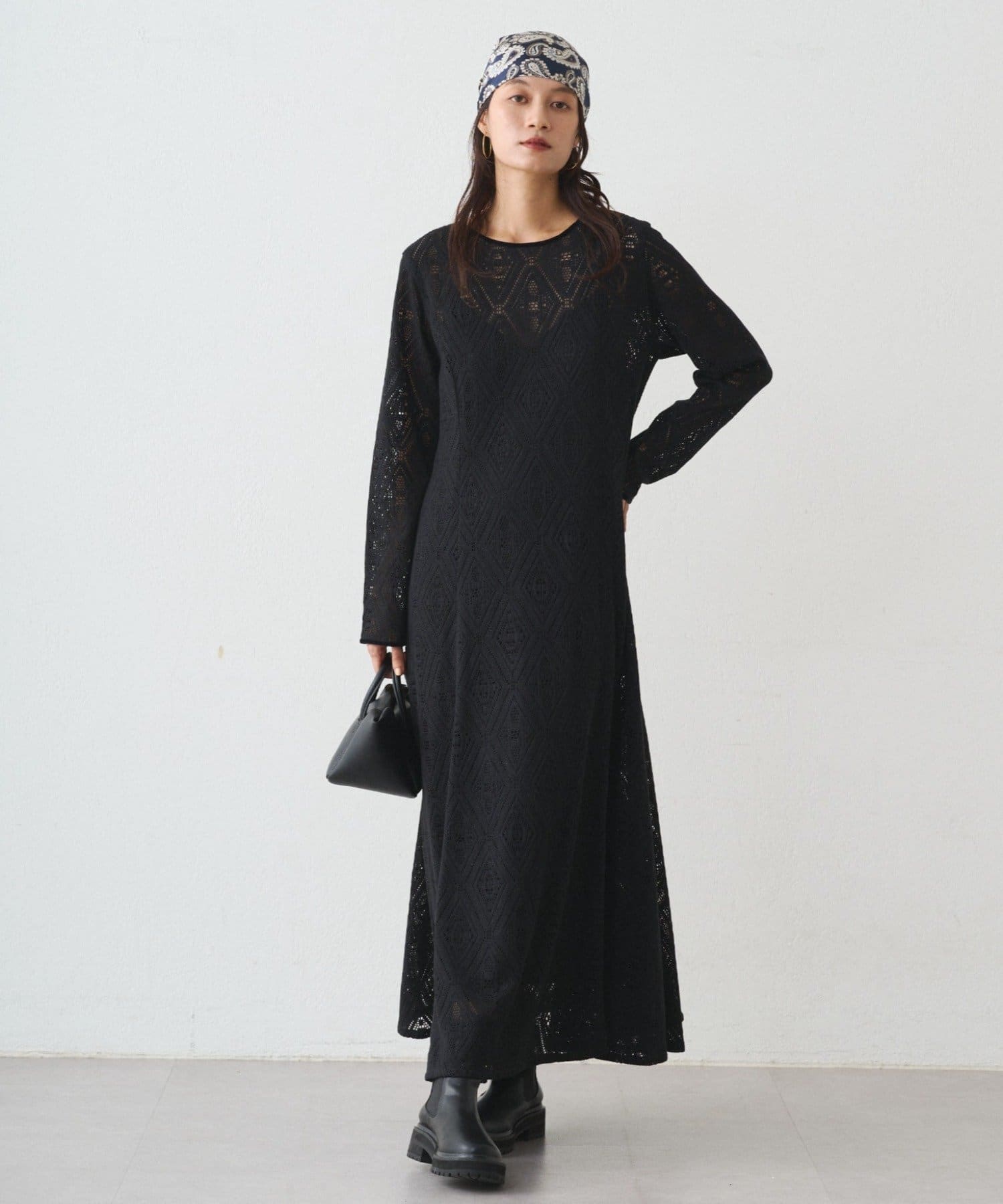 重みがあり、落ち感のあるシルエット、ダイヤ柄のレースが縦に細く、間延びせずスタイルをよく見せてくれます。