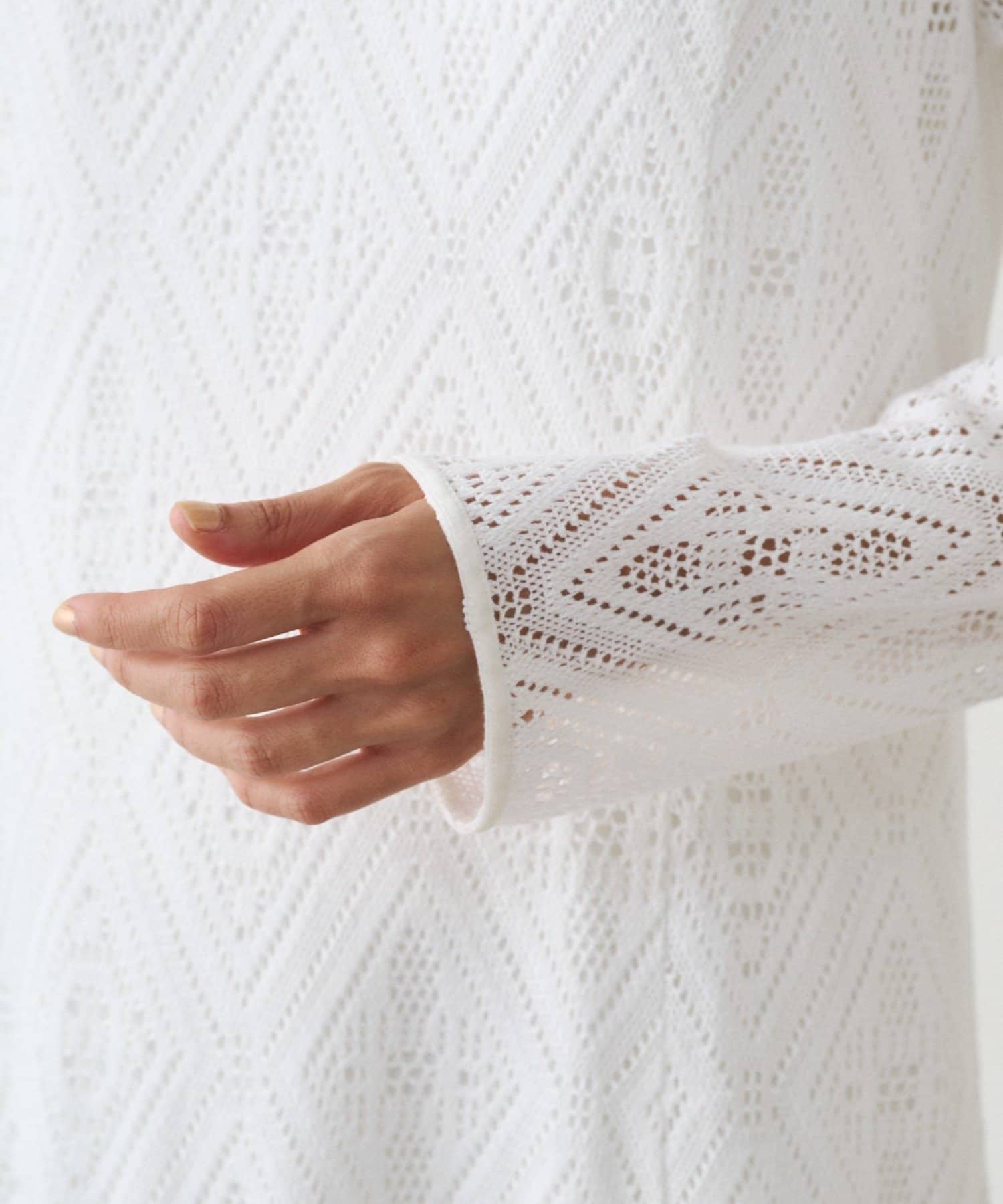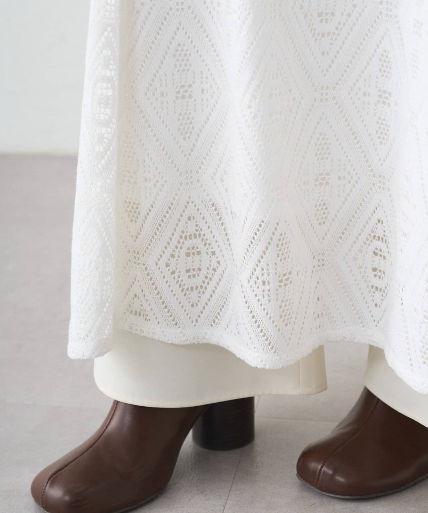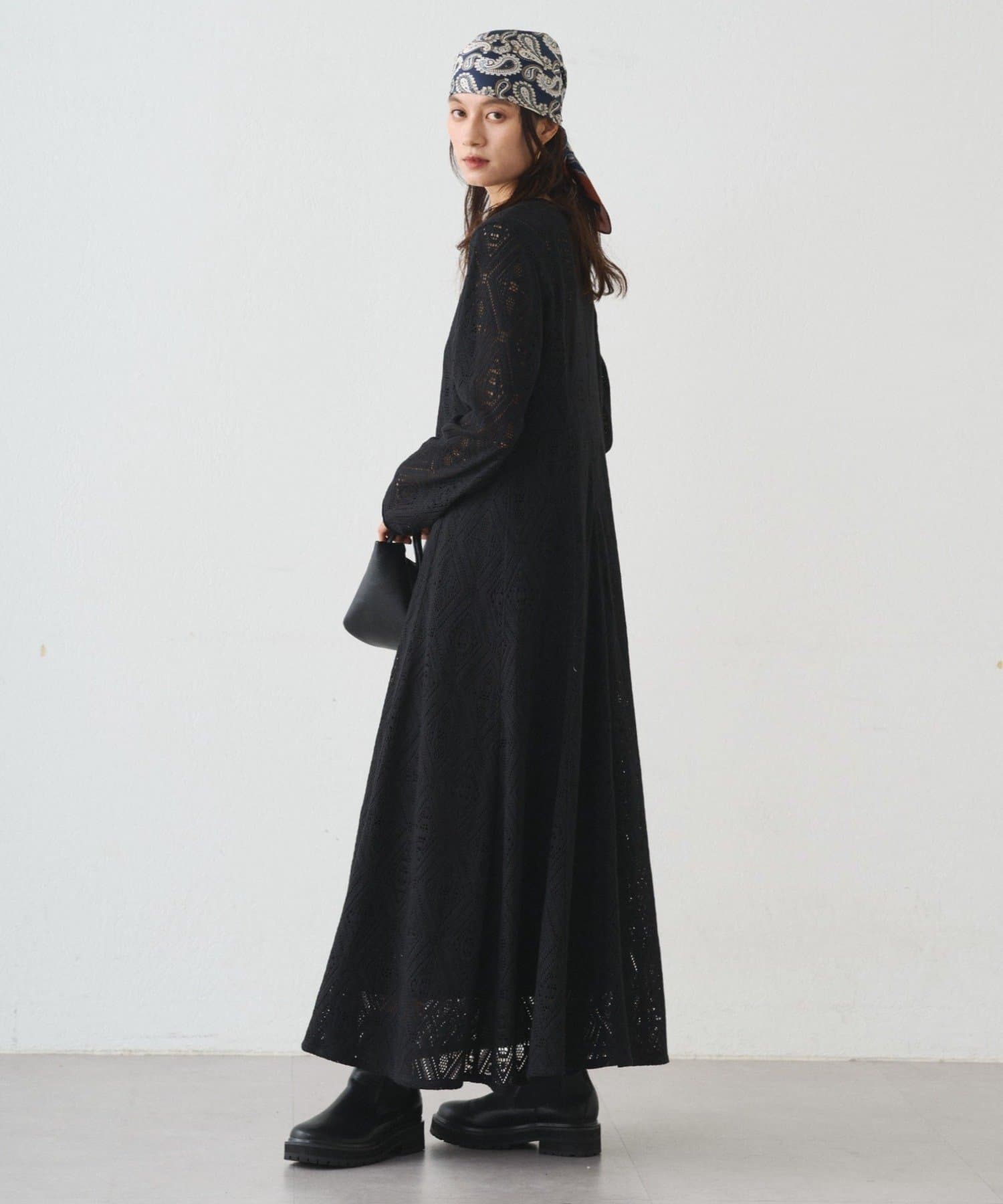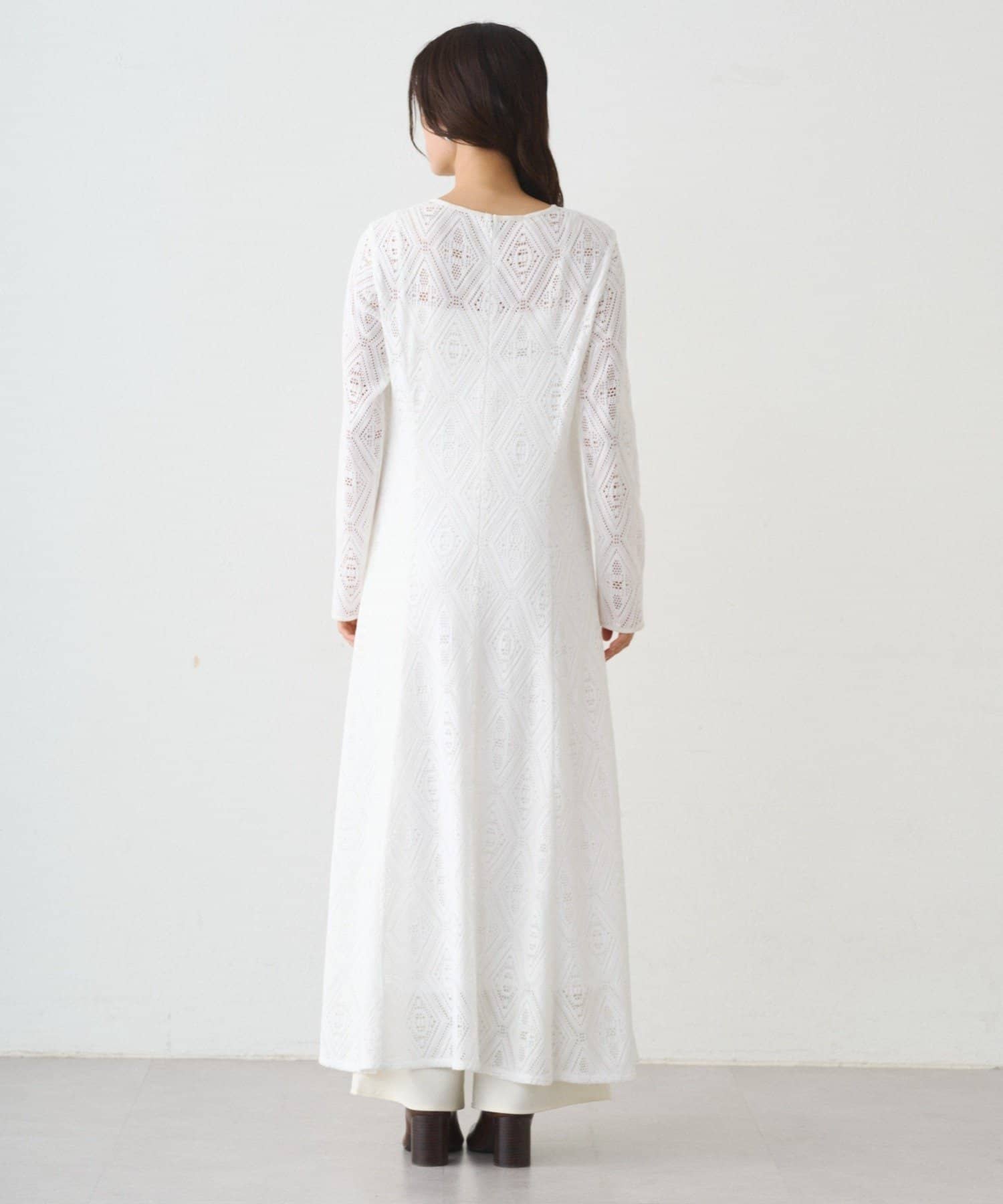 重みがあり、落ち感のあるシルエット、ダイヤ柄のレースが縦に細く、間延びせずスタイルをよく見せてくれます。