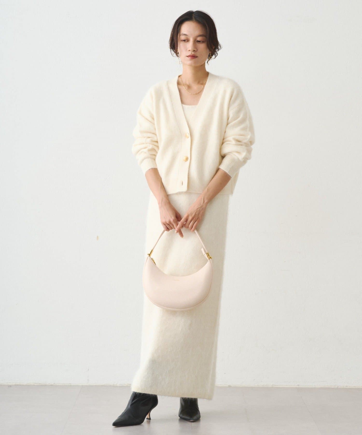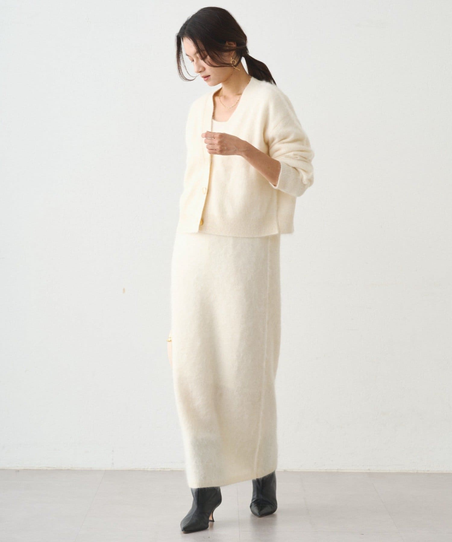 同素材のシャギーショートニットカーディガンとアンサンブルとして着用可能。
