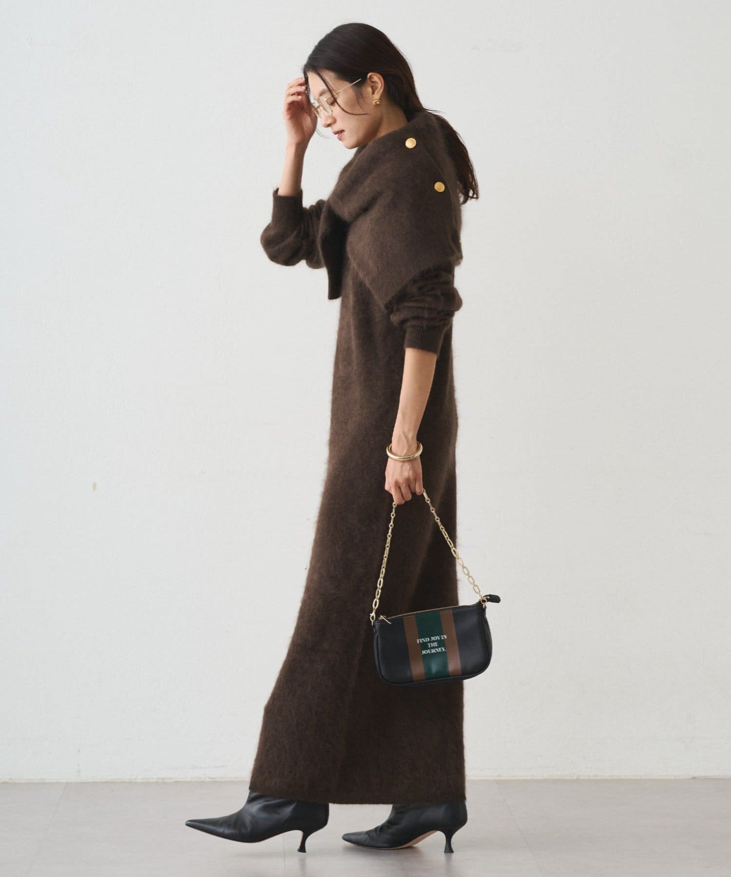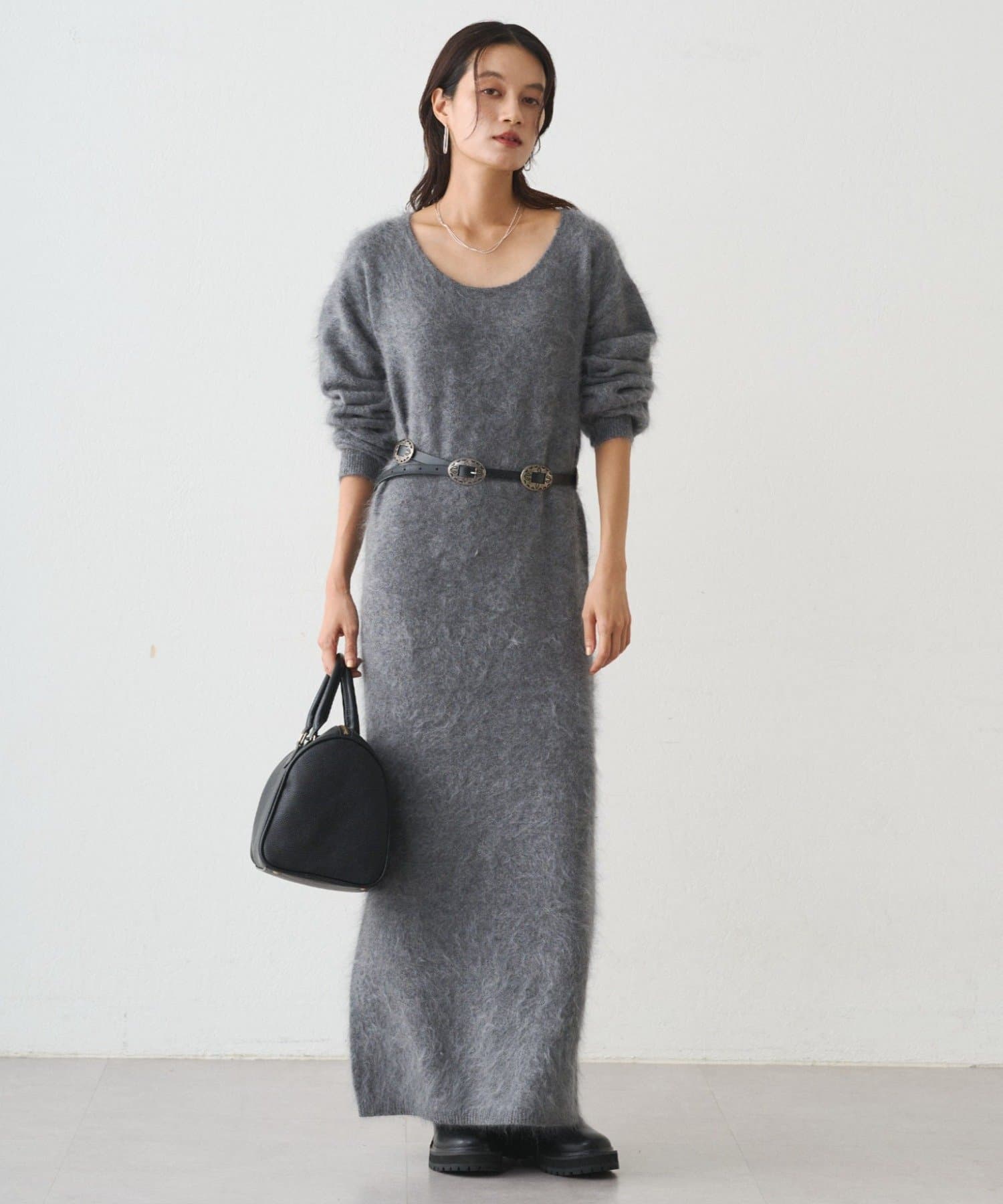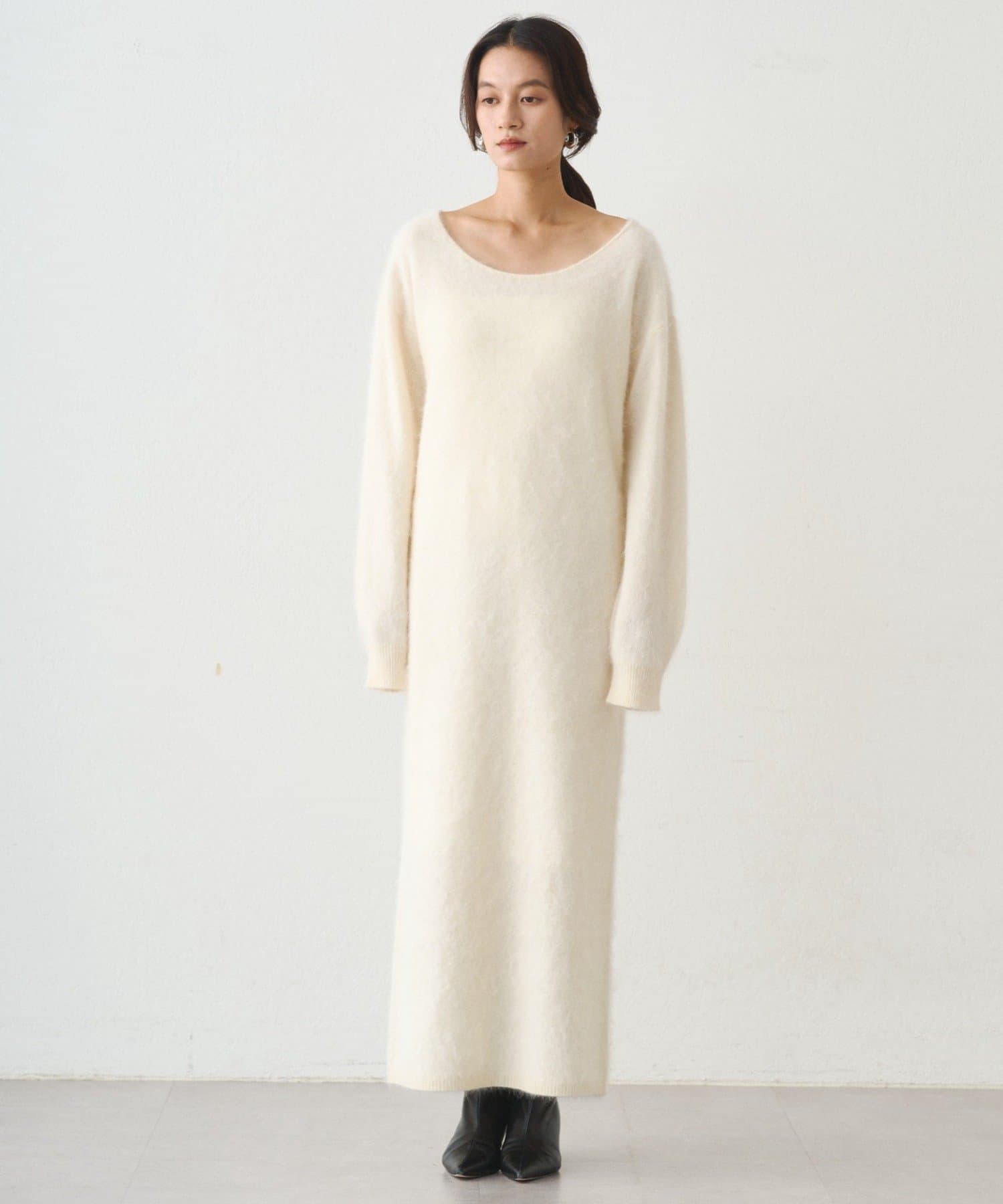 まるで空気を含んだような、ふんわりとしたシャギーニットワンピース。