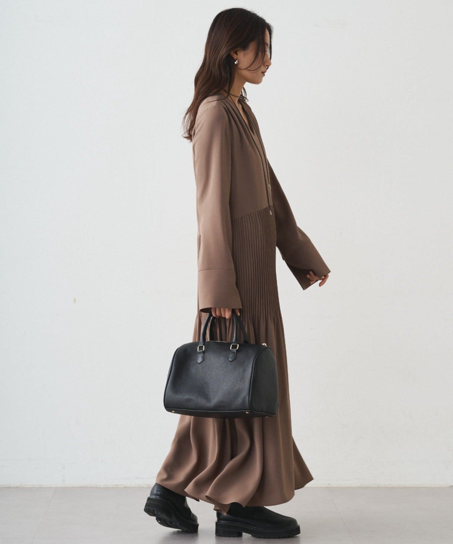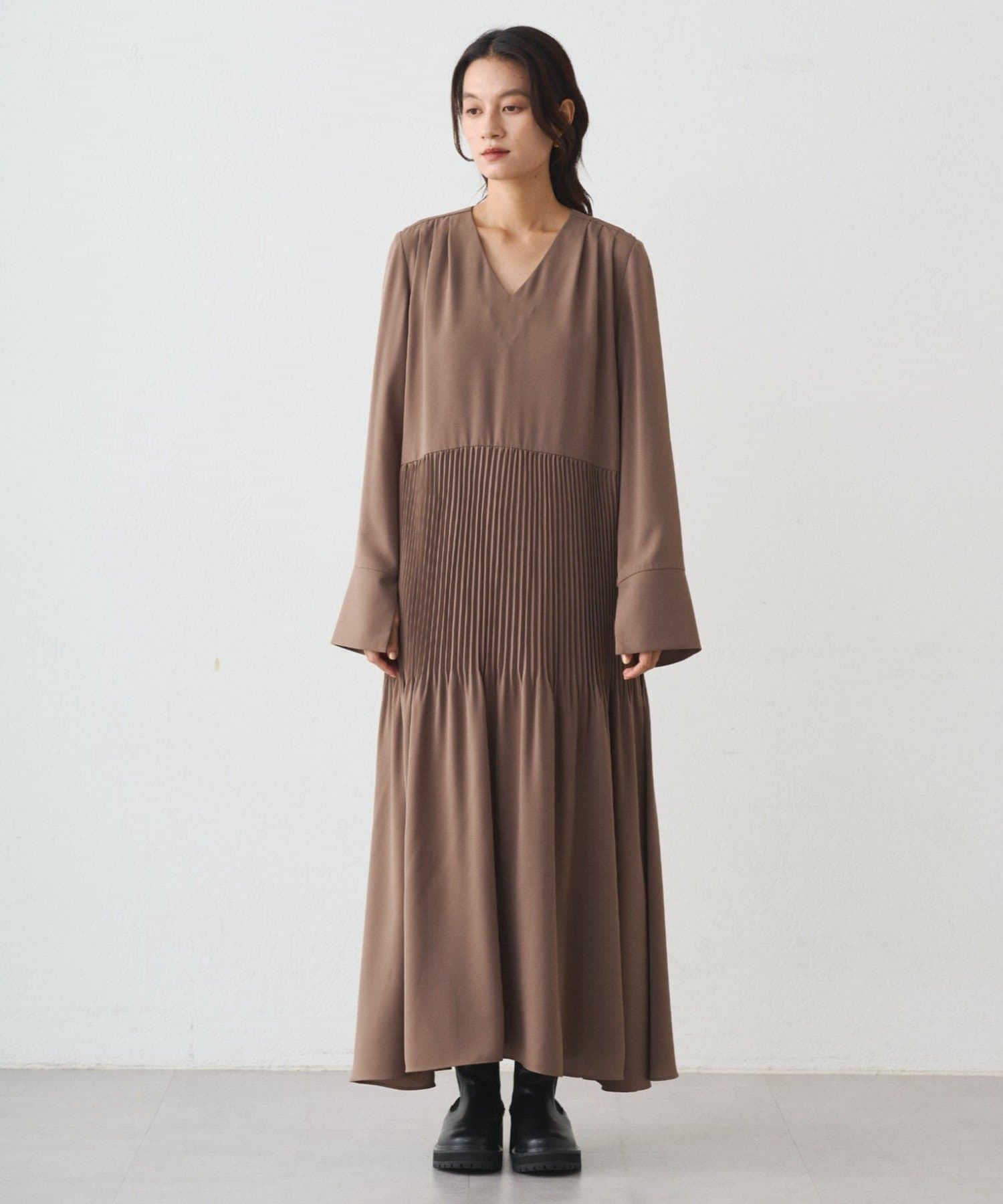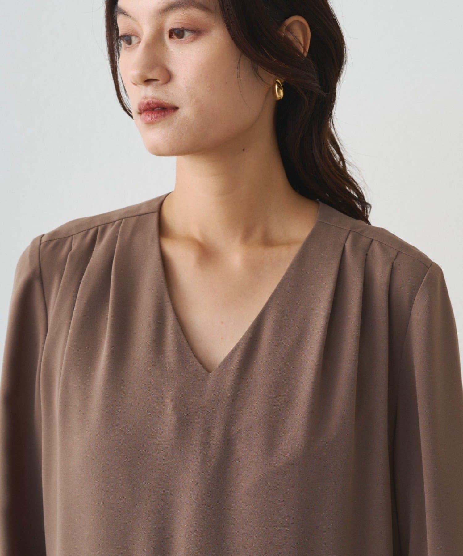 デザインのポイントは、肩のタックとウエスト下のプリーツ。