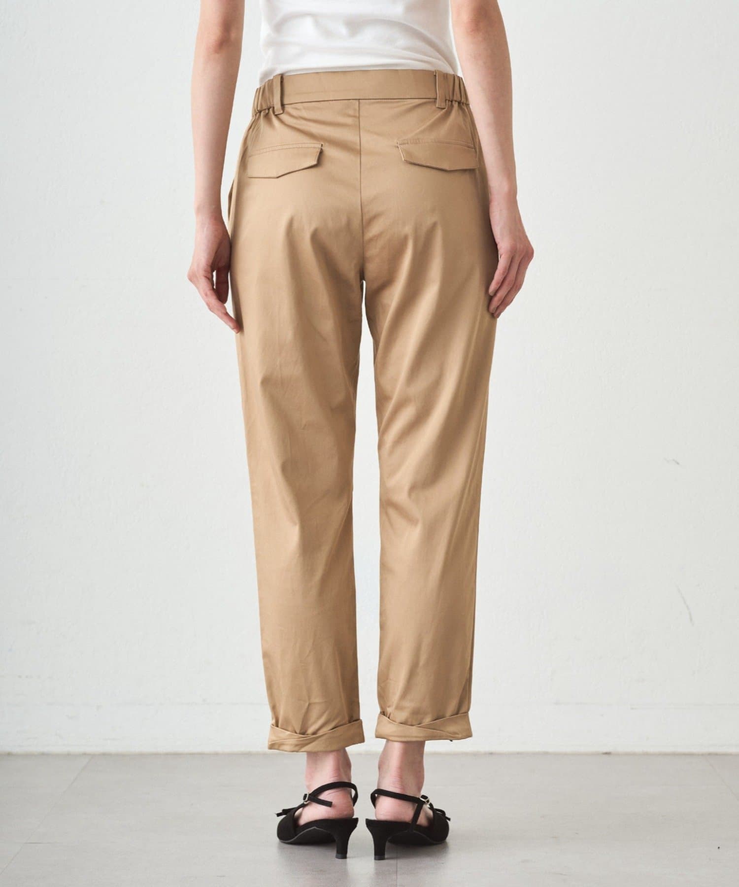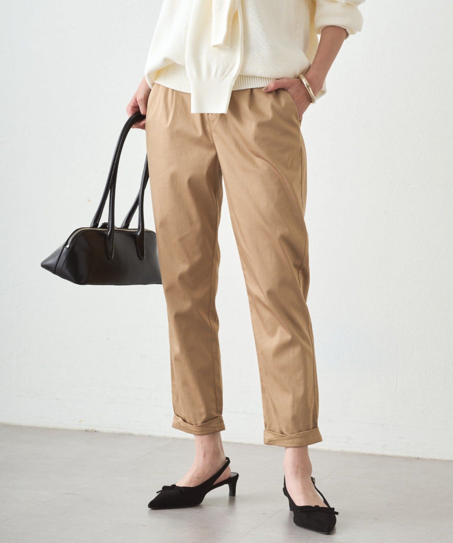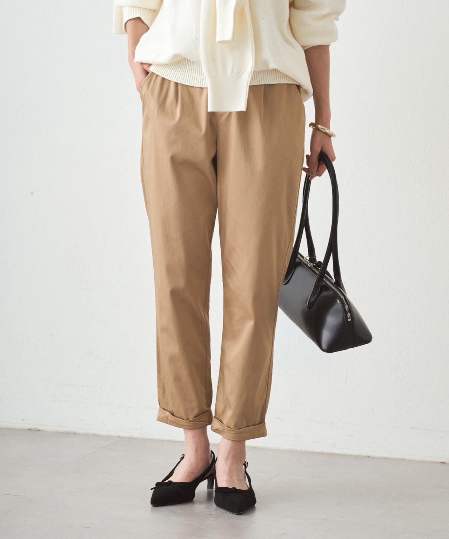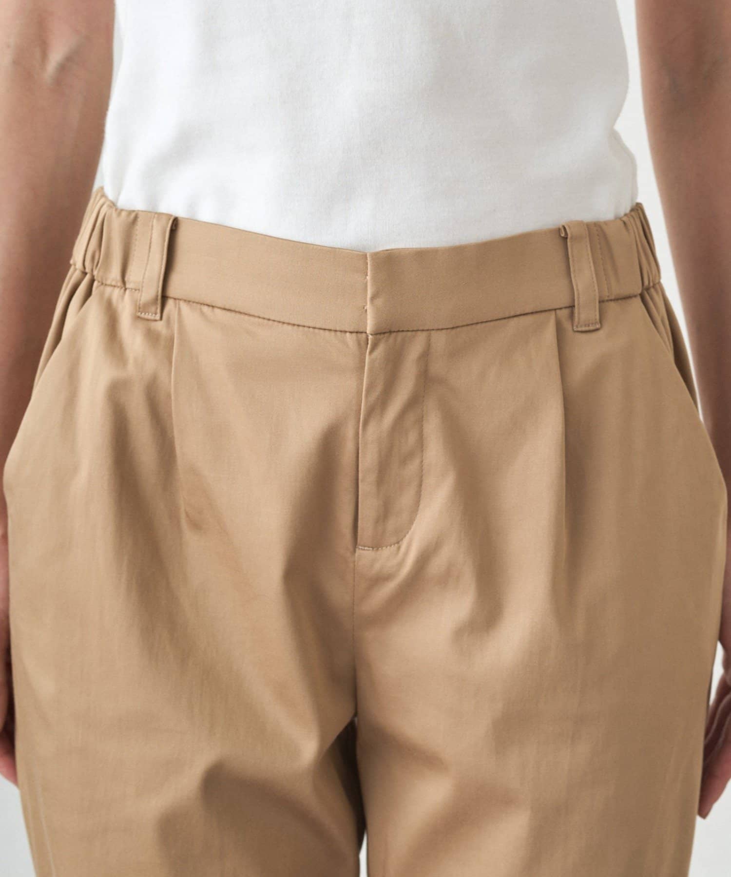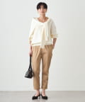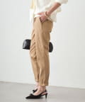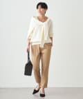 ウエストゴム入りで裾のねじりディティールがポイント。
