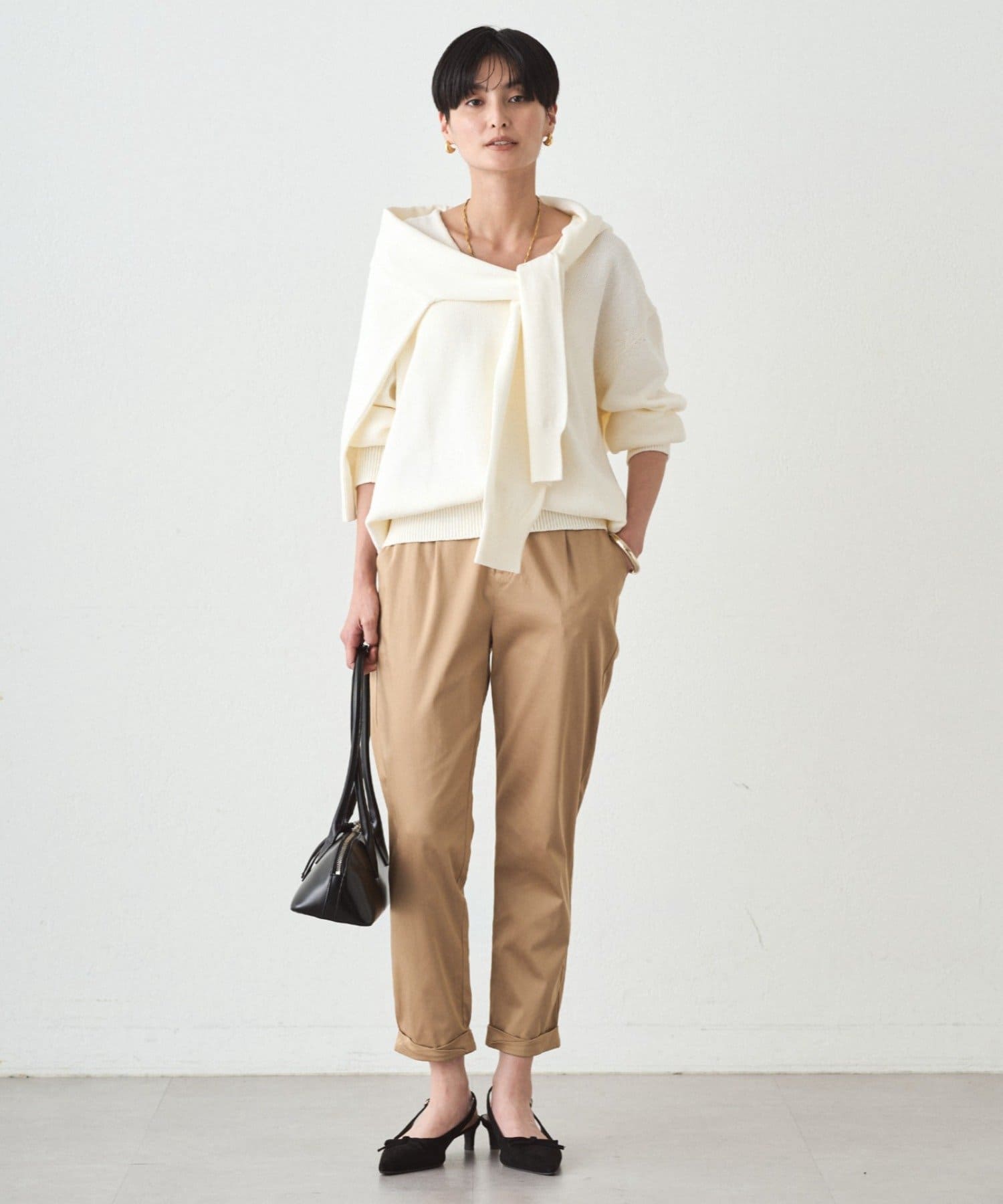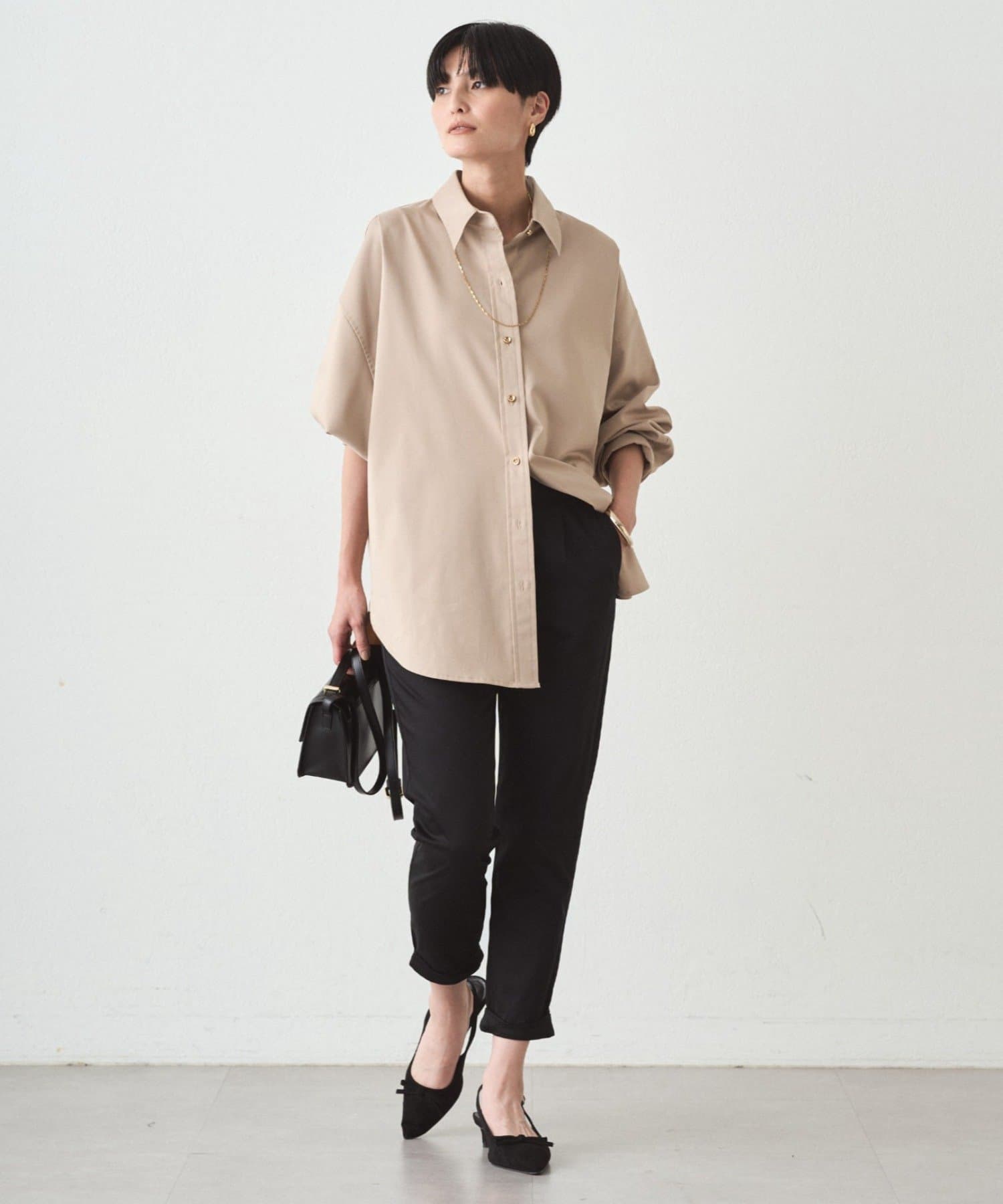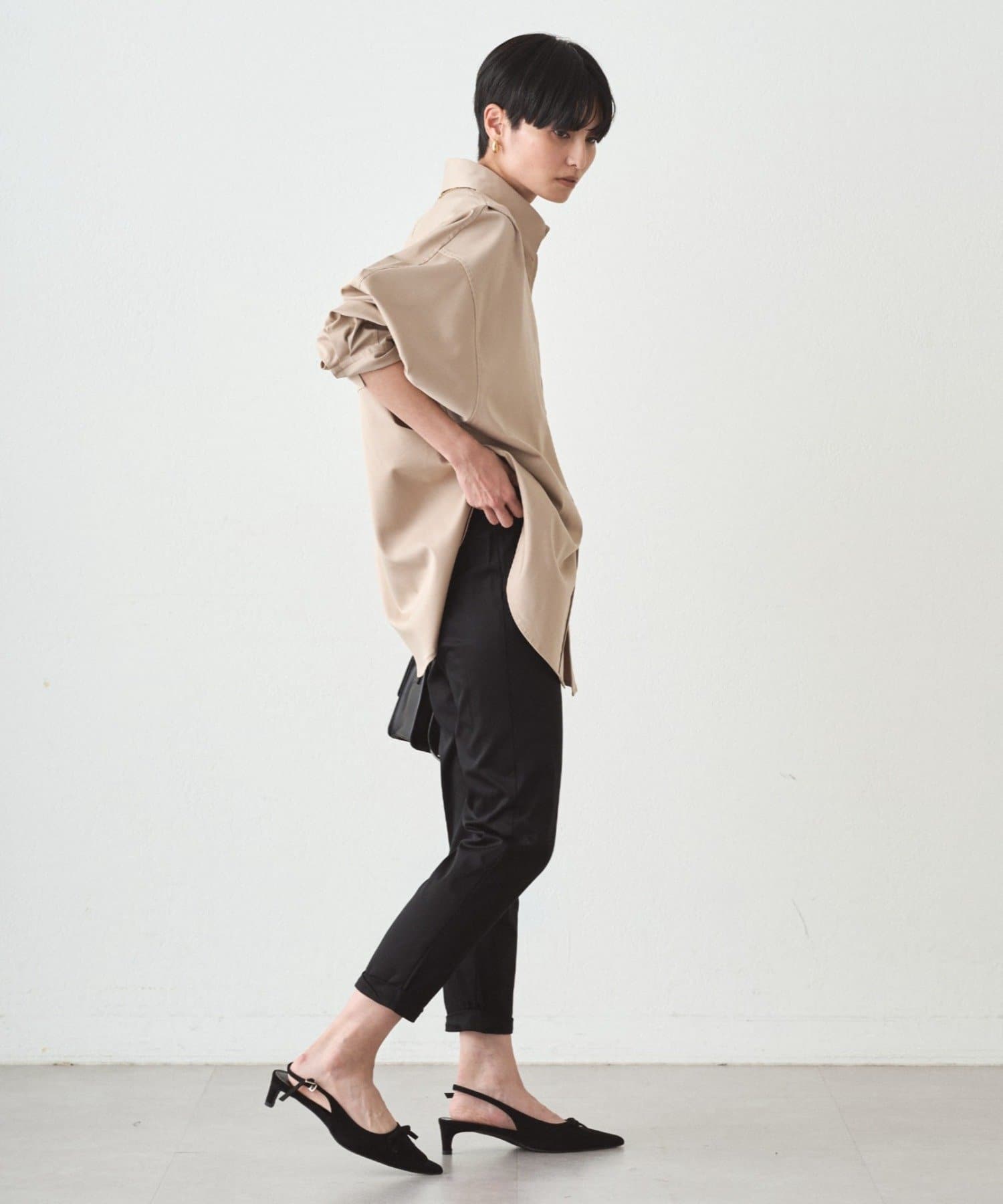 ブラウスやシャツと合わせて、きちんと感のあるオフィススタイルに。ジャケットを羽織れば、よりフォーマルな印象になります。