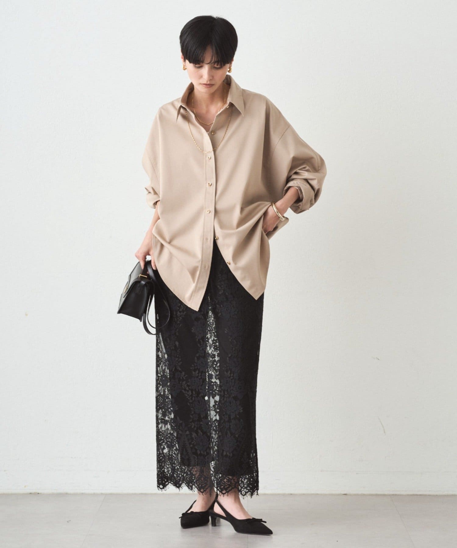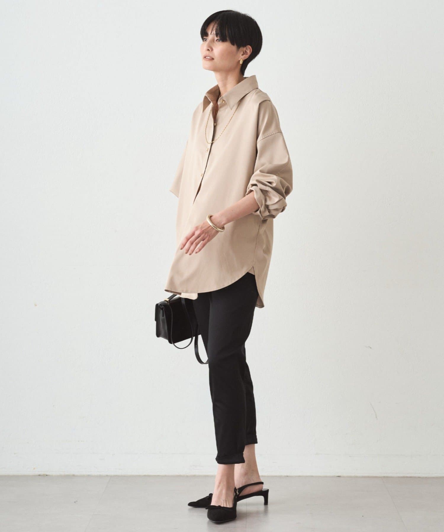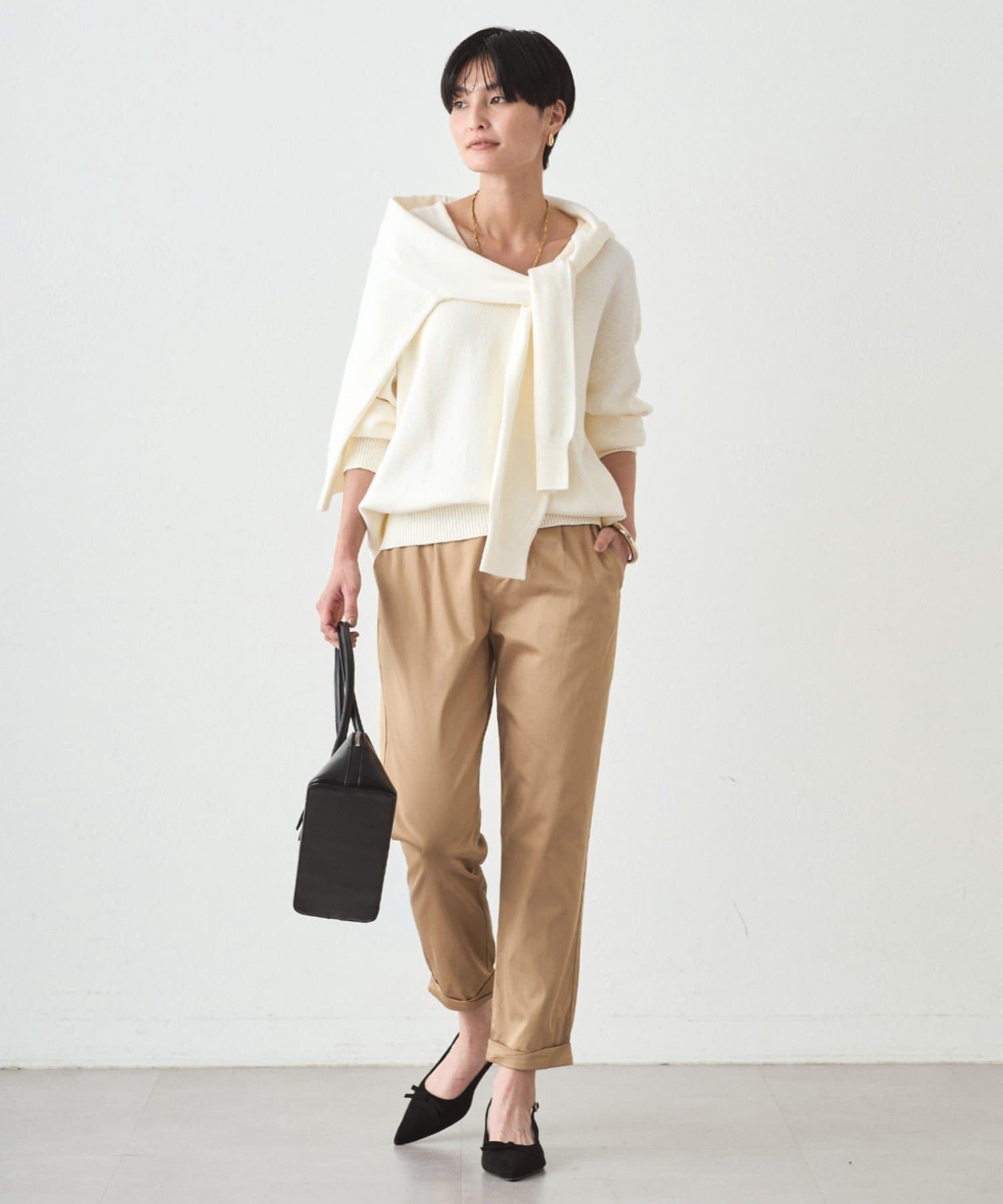 ブラウスやシャツと合わせて、きちんと感のあるオフィススタイルに。ジャケットを羽織れば、よりフォーマルな印象になります。