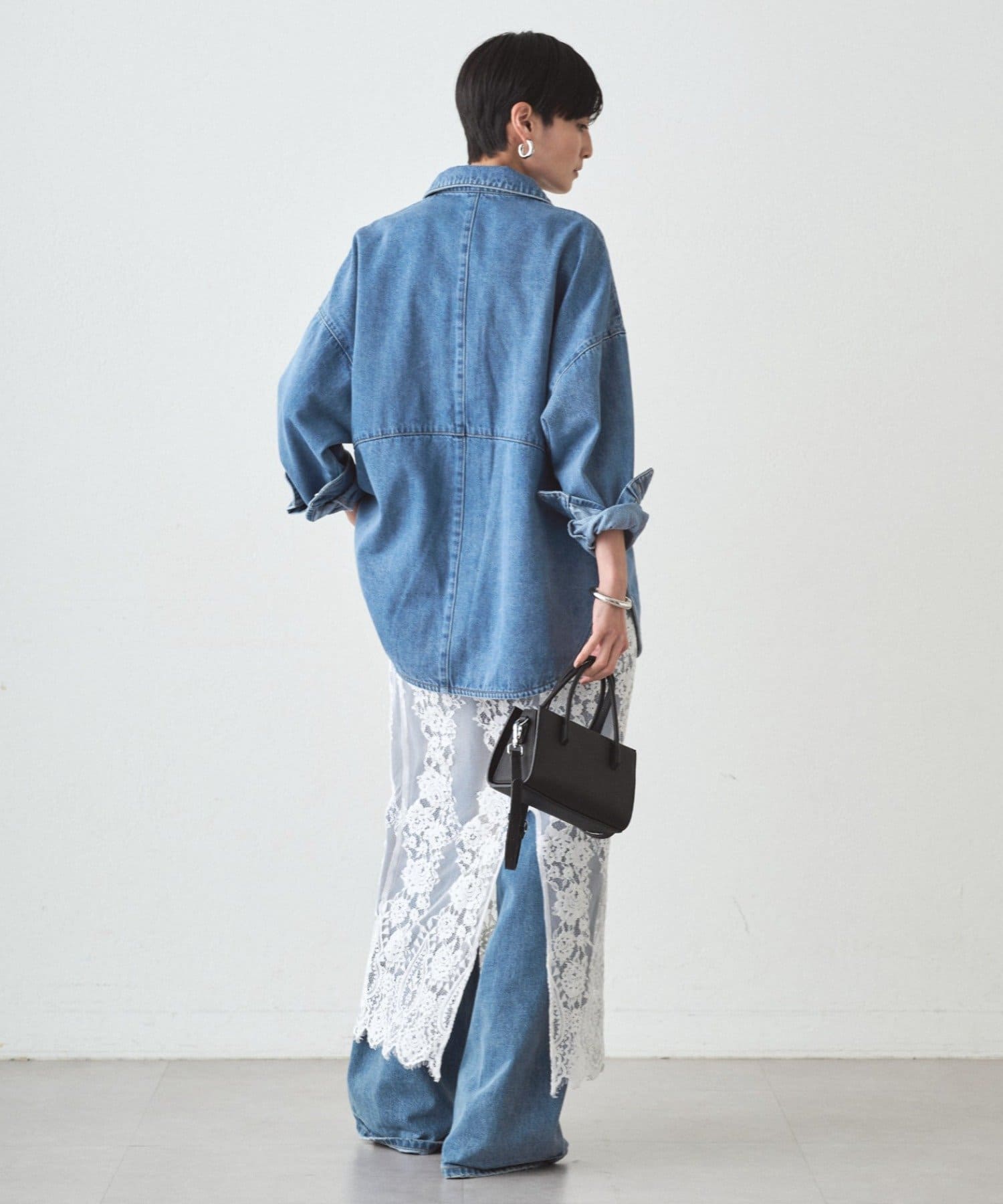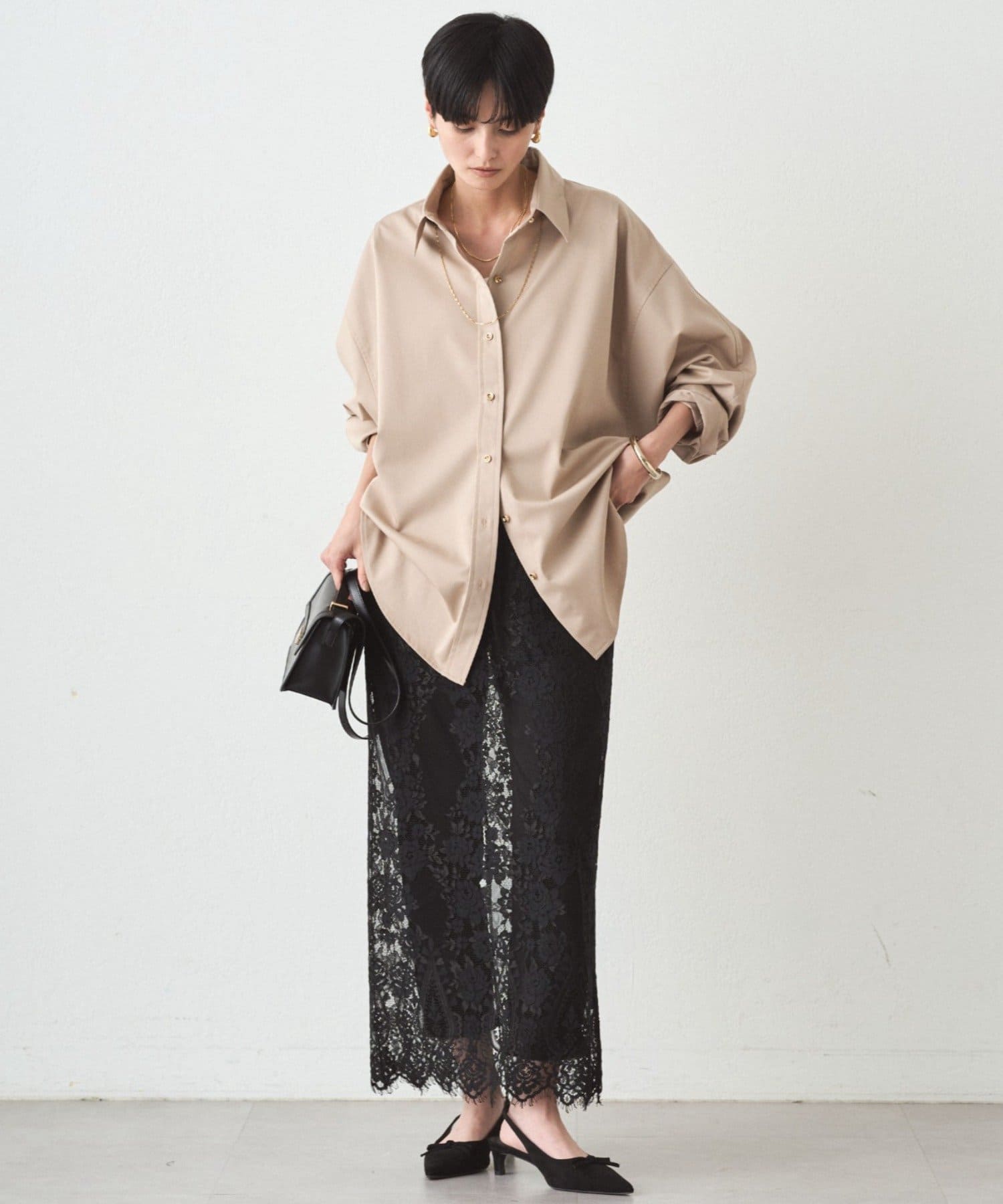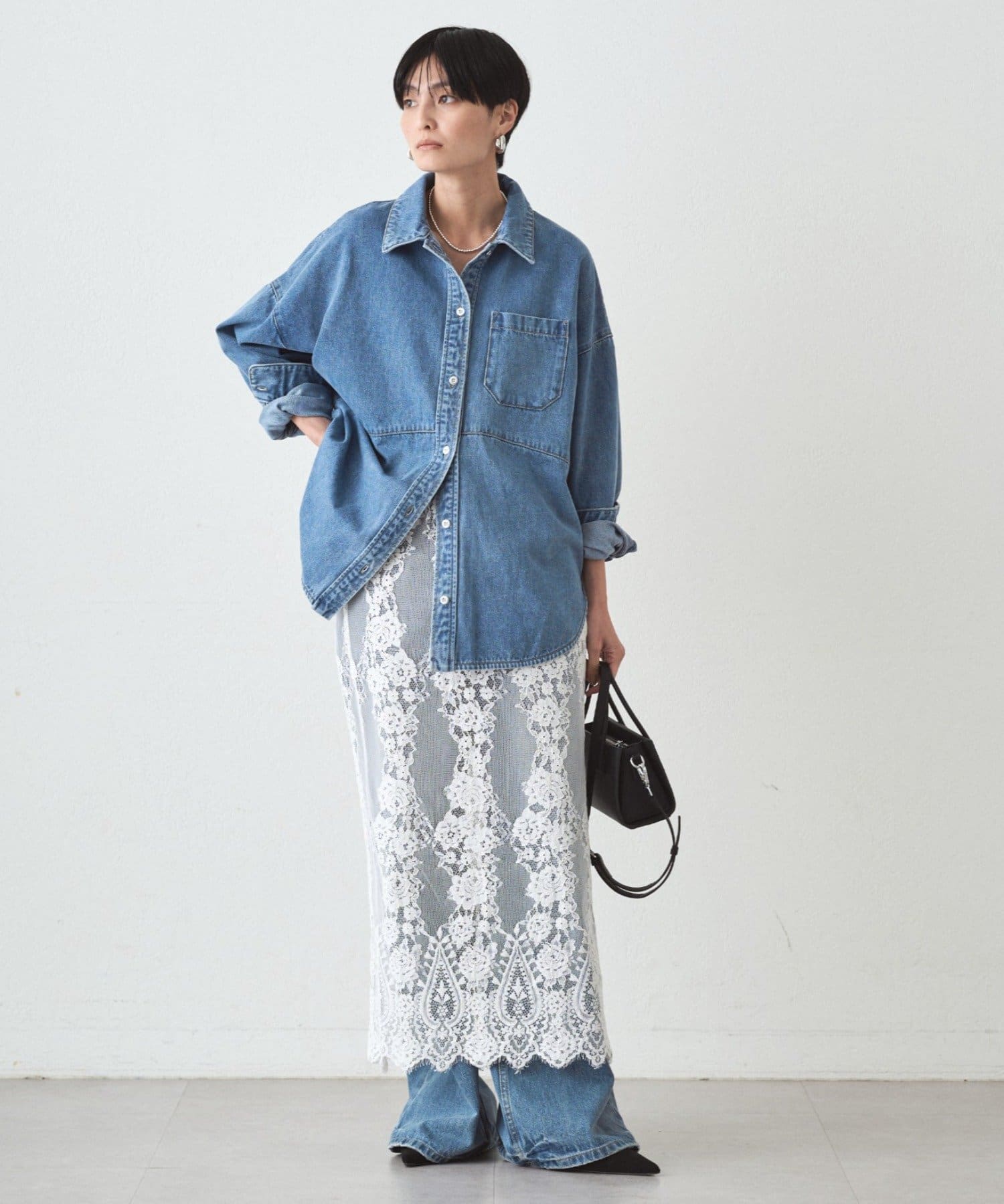 シンプルなワンピースやパンツに重ねて、レースの透け感を楽しむのもおすすめです。