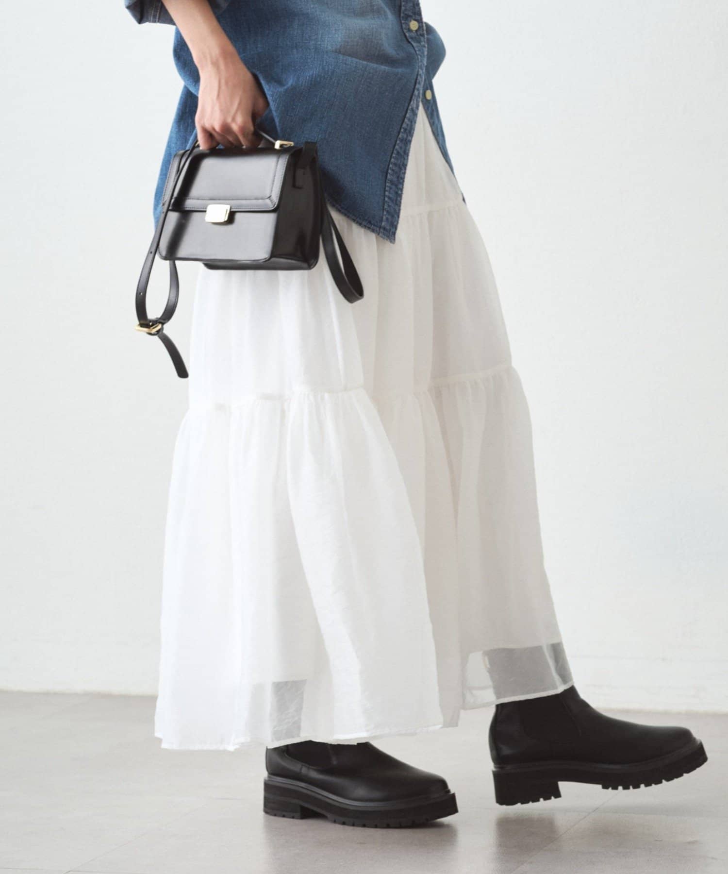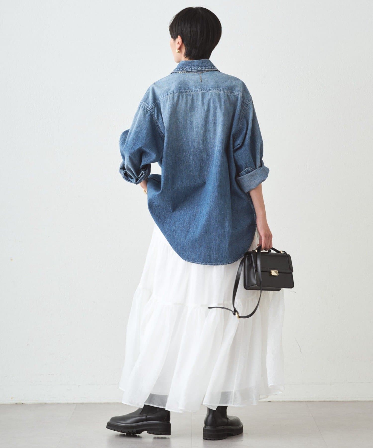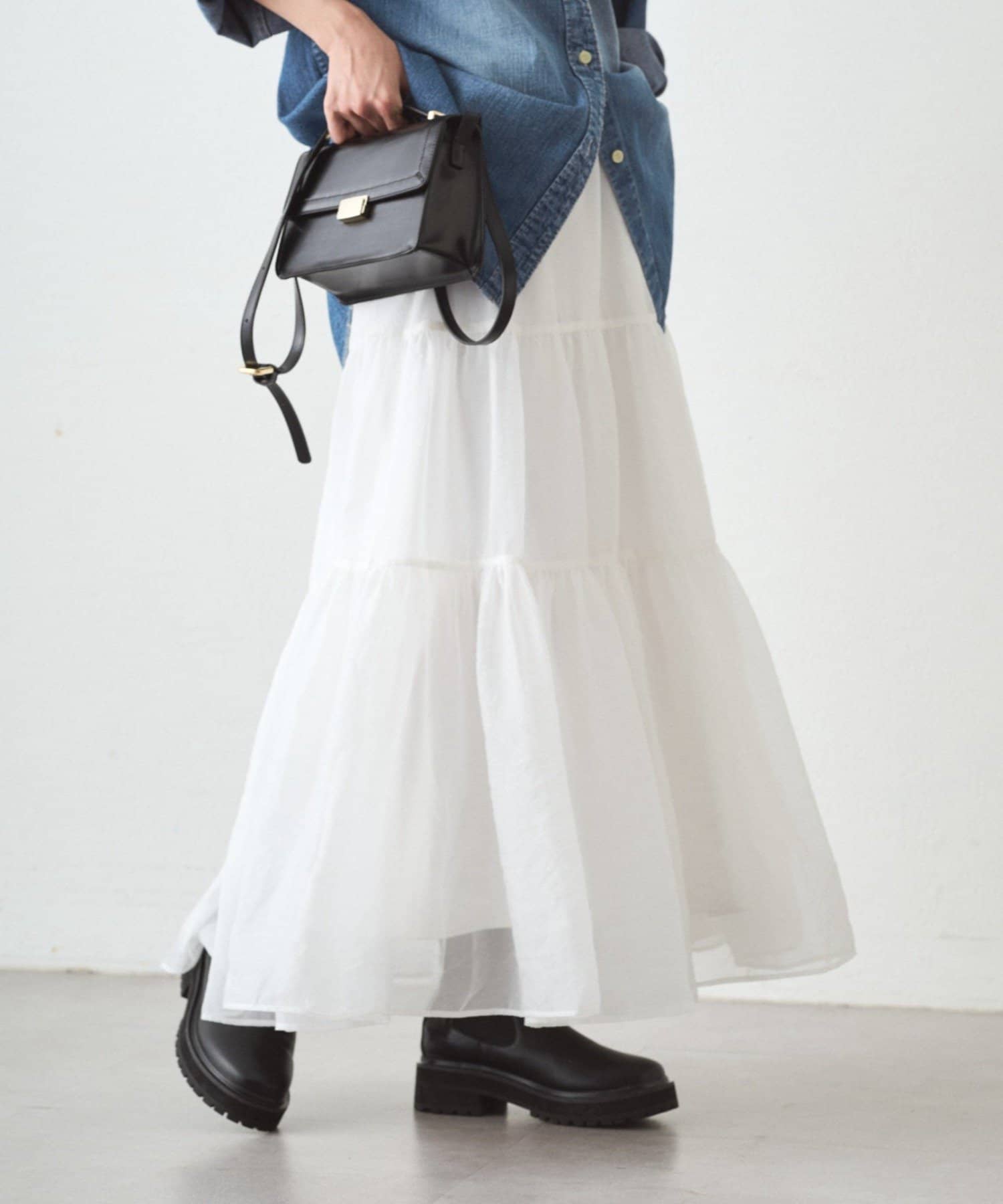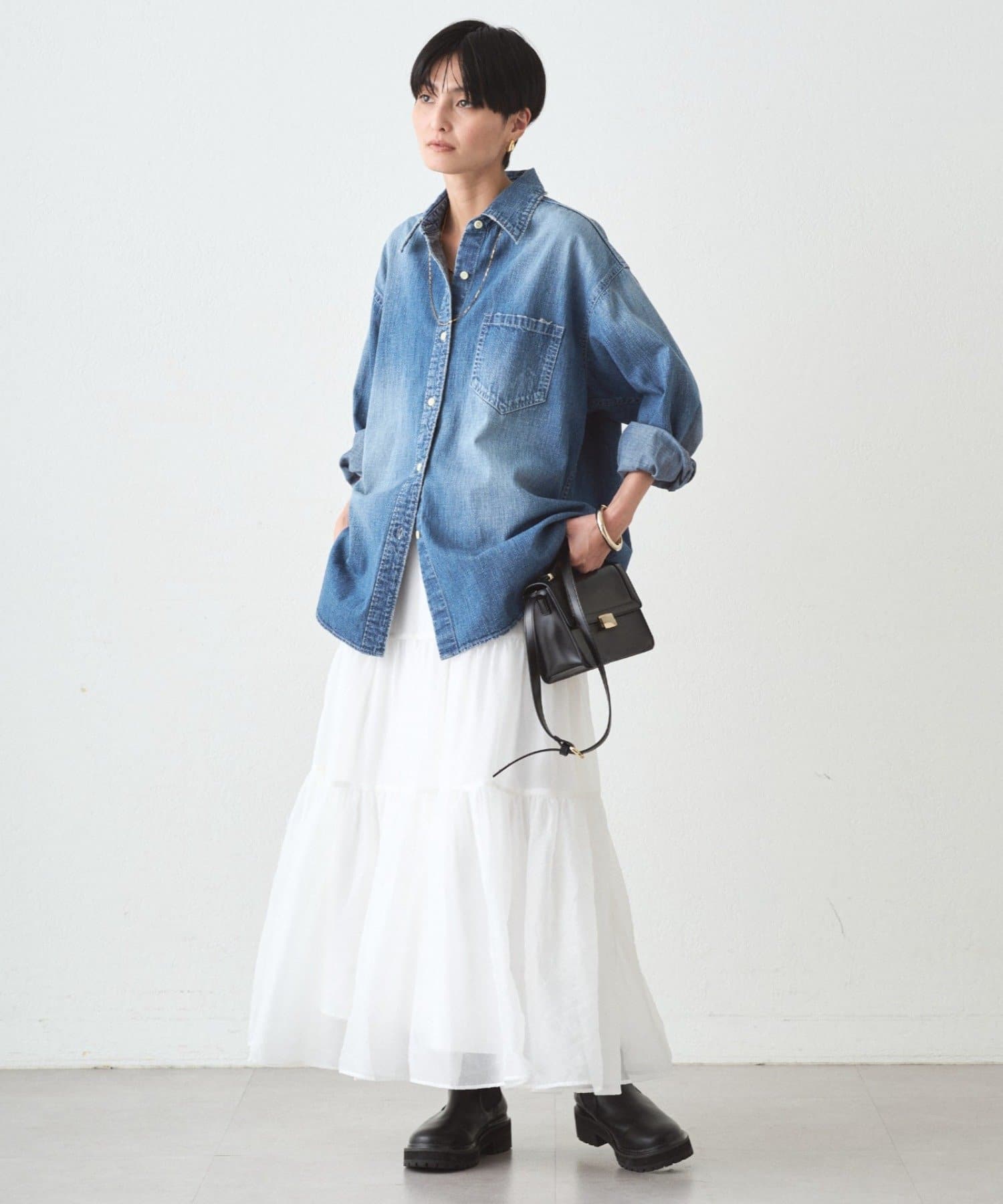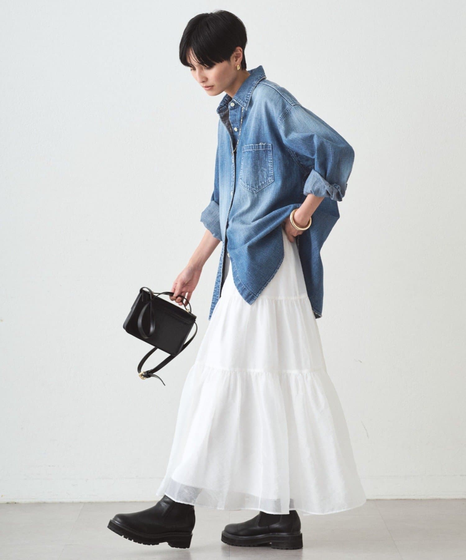 Tシャツやブラウス、ニットなど、どんなトップスとも相性がよく、季節を問わず一年中活躍します。