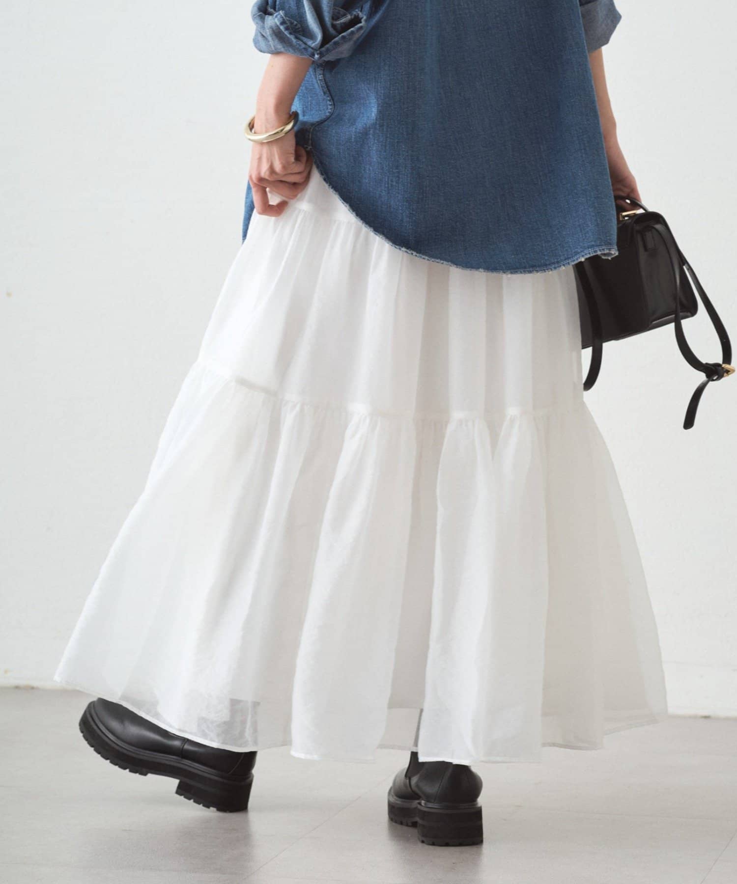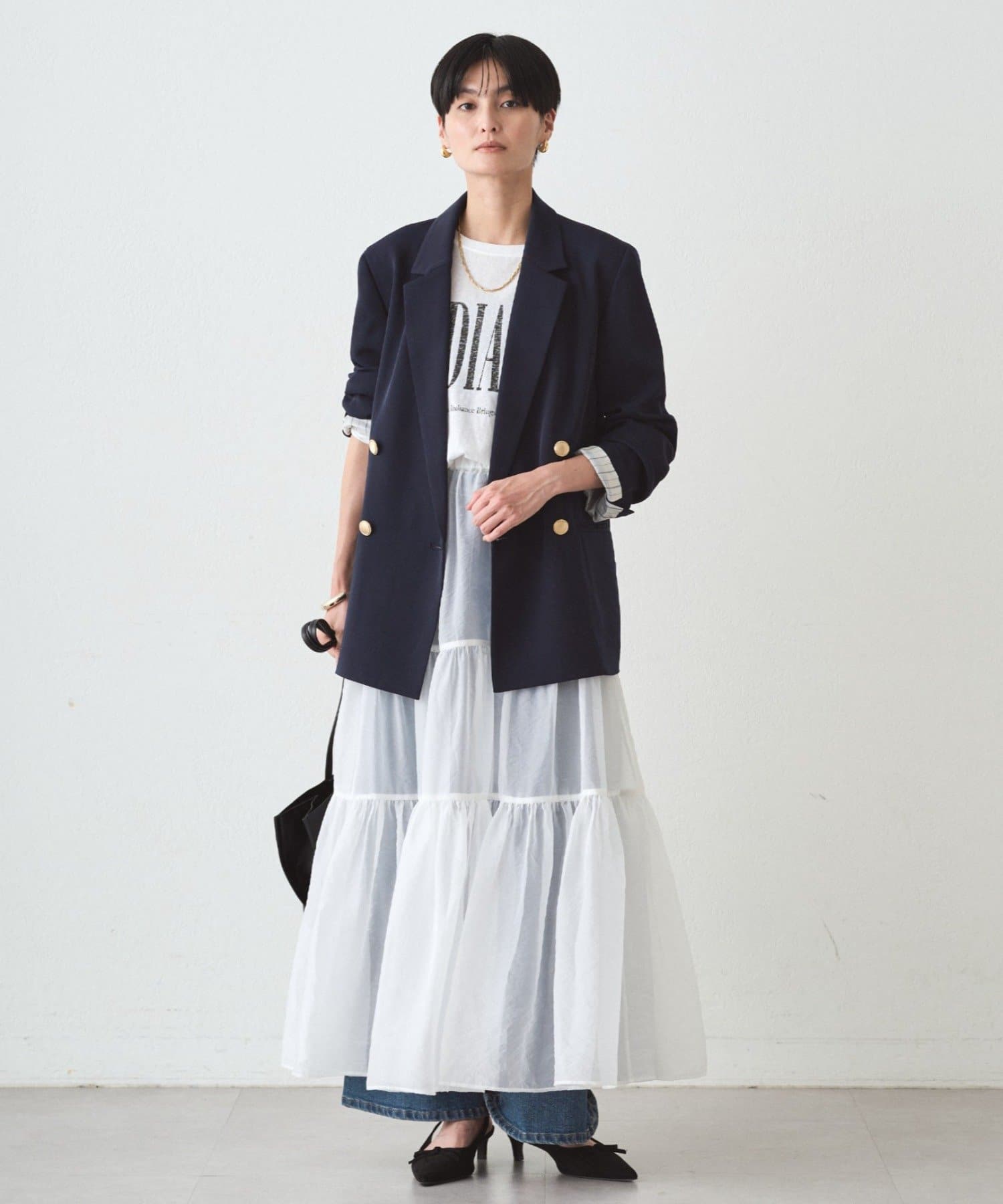 Tシャツとスニーカーを合わせればほどよくカジュアルに、ブラウスとパンプスを合わせれば上品でフェミニンな雰囲気に。