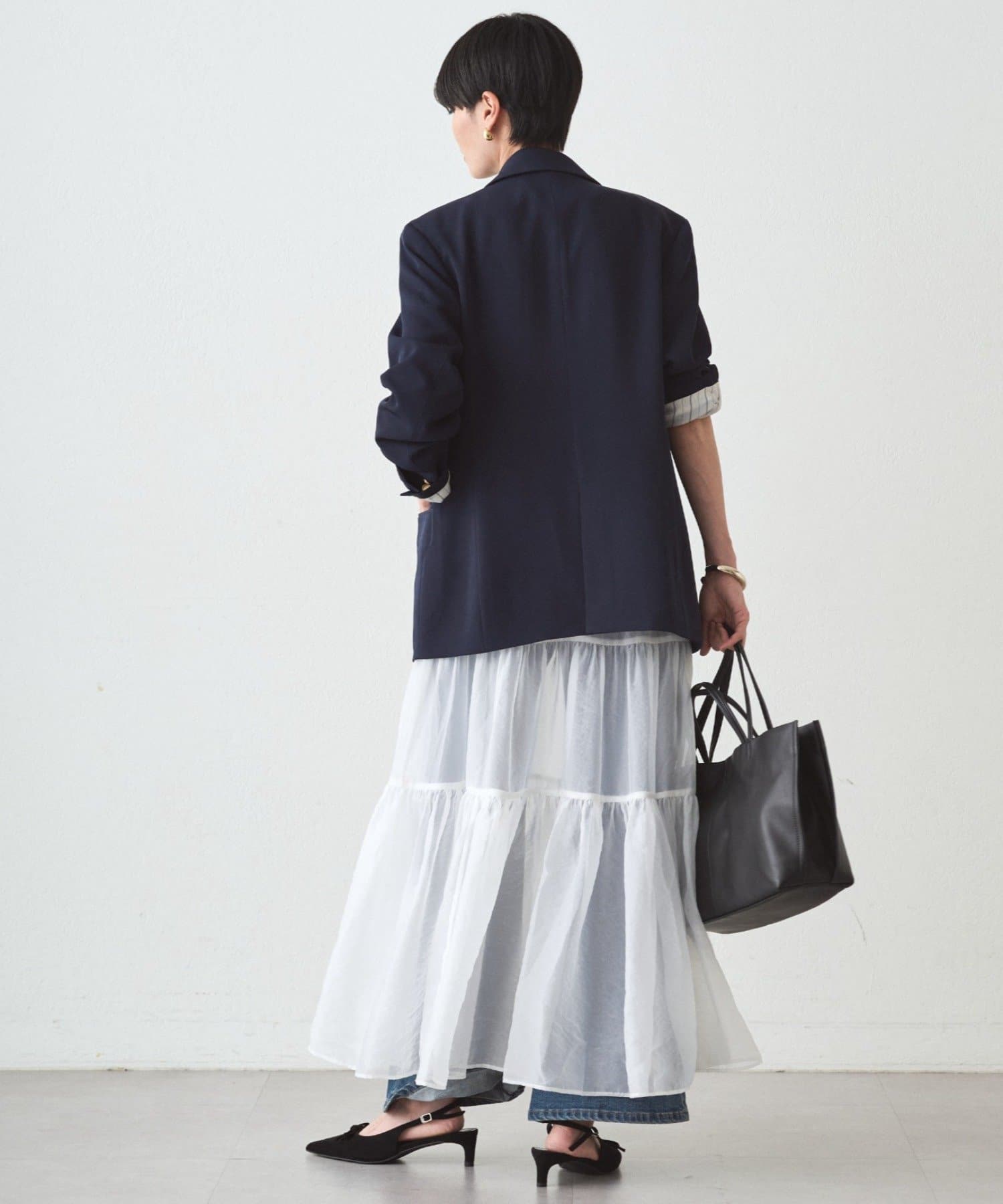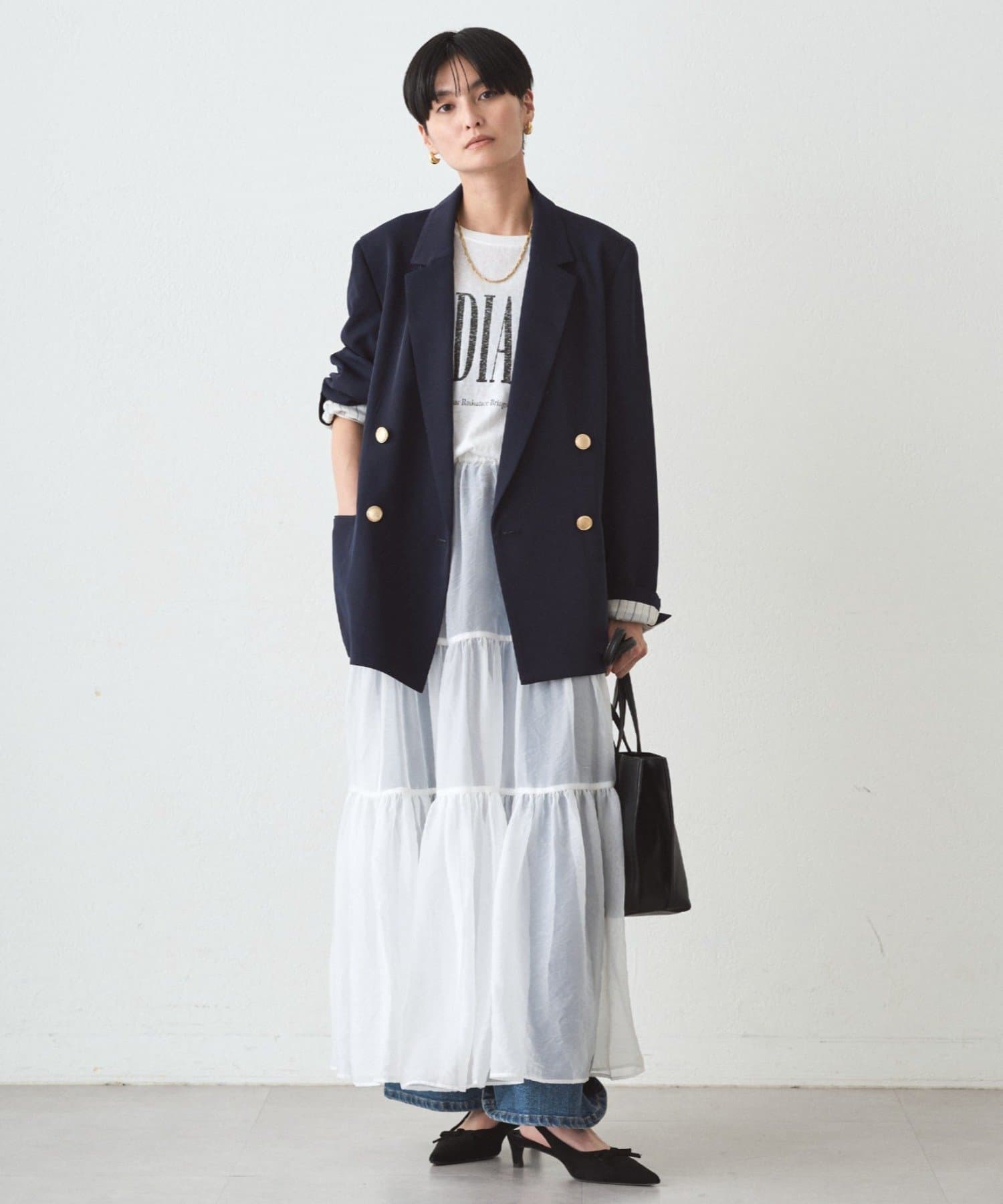 ロング丈の上品なバランスで、大人の女性にも取り入れやすい落ち着いた印象に仕上げています。