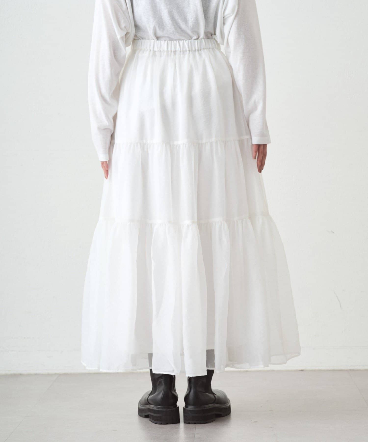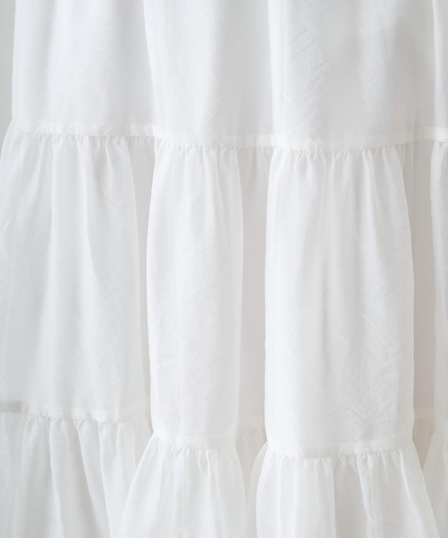 異なる幅のティアードを重ねることで、単調にならず動きのある表情を実現しました。