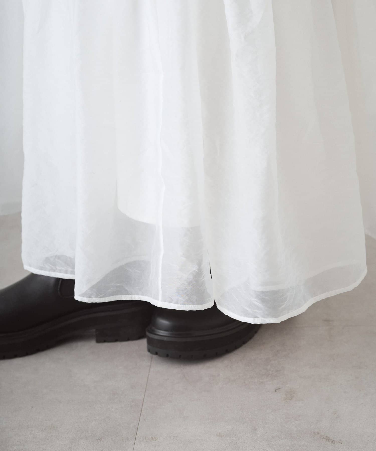 繊細な生地を贅沢に使用し、歩くたびに優雅なシルエットを描きます。