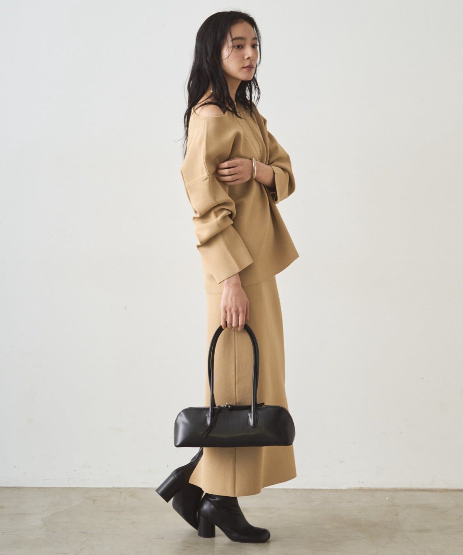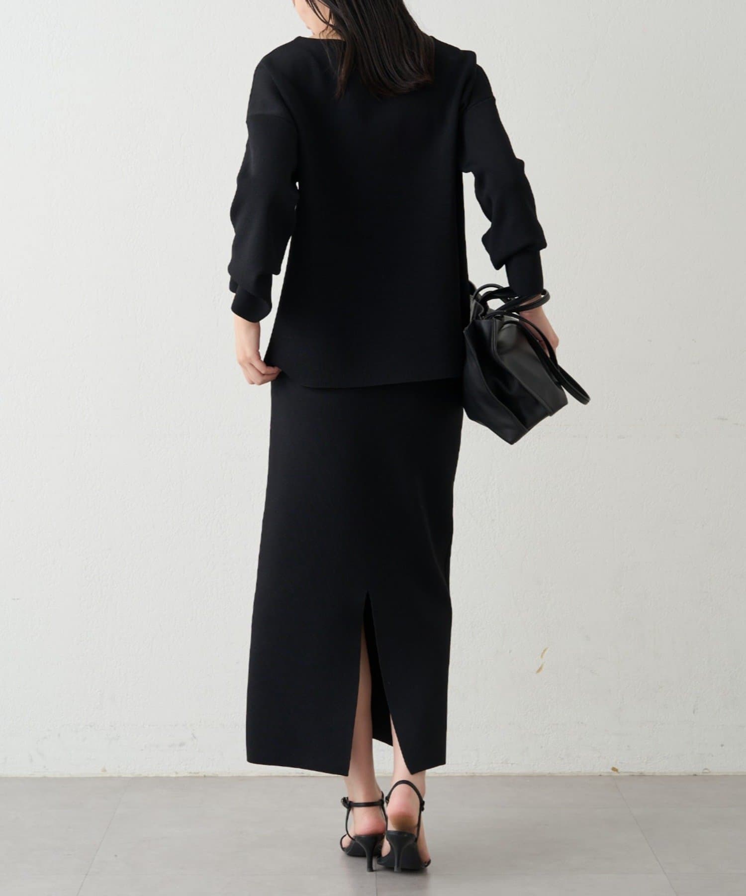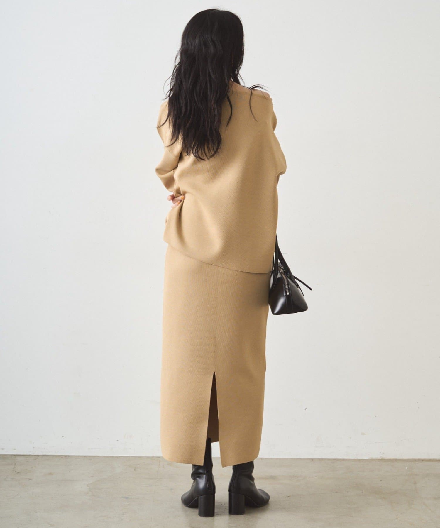 総シリーズのスムースボートネックニットとのセットアップもおすすめです。