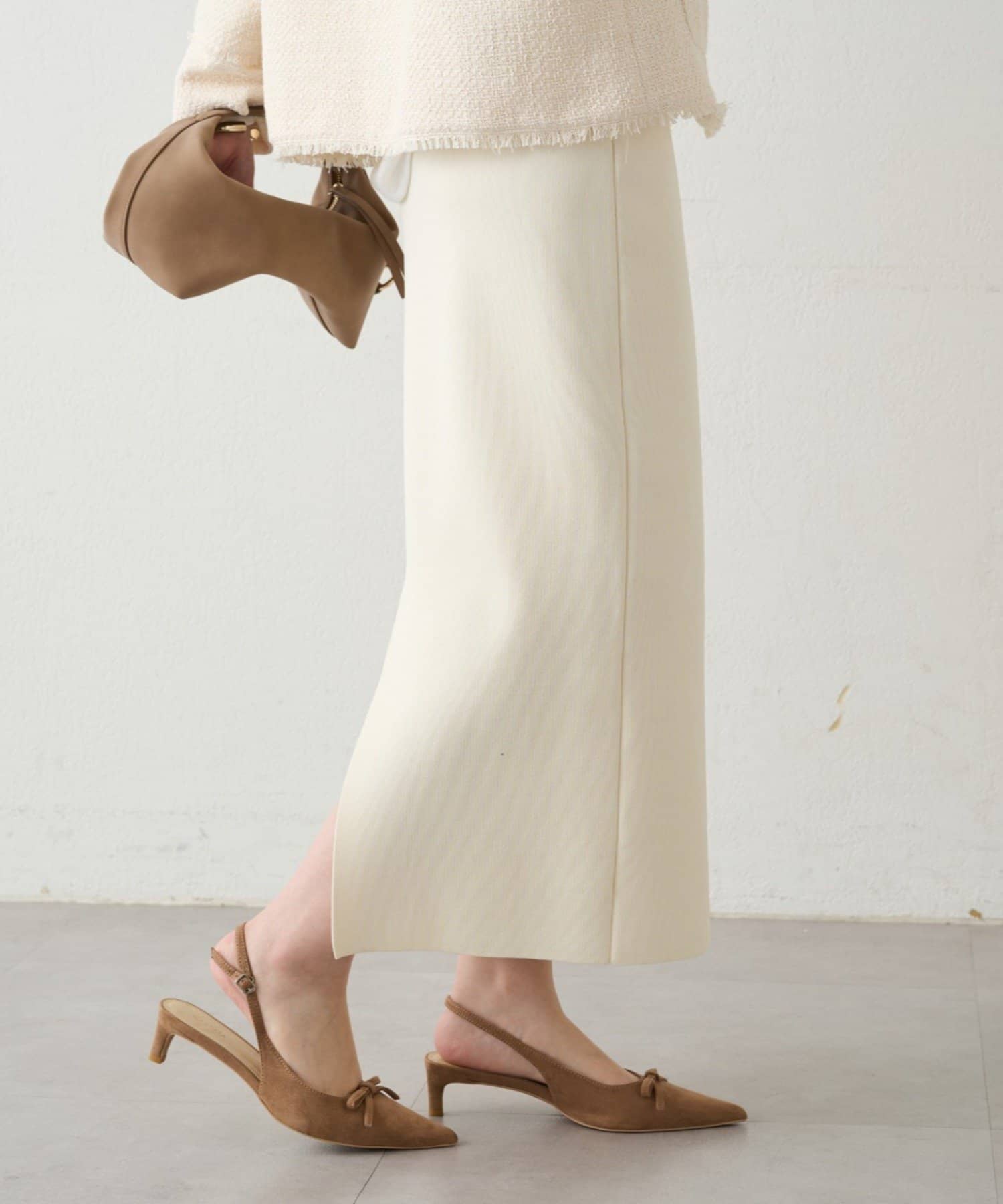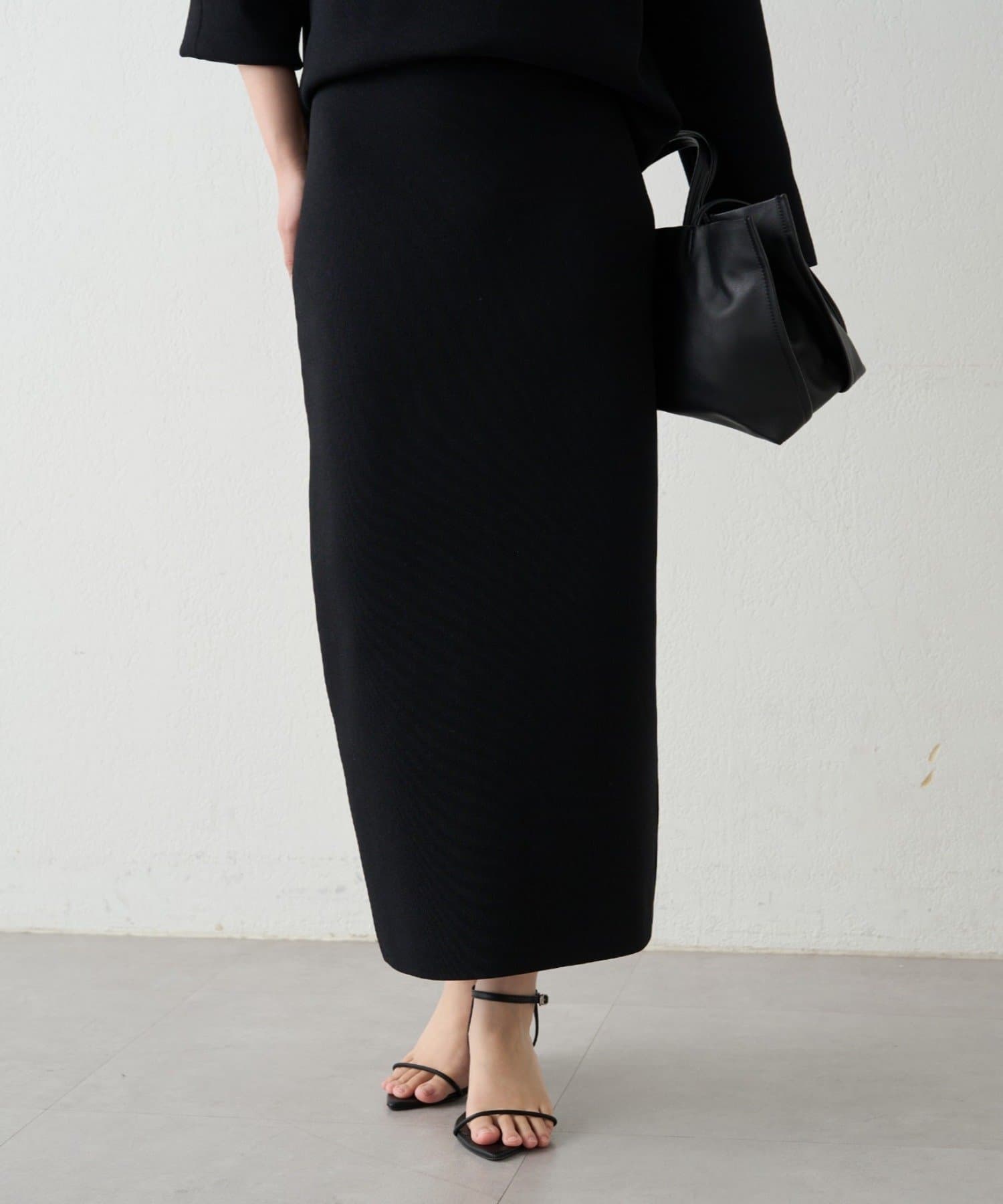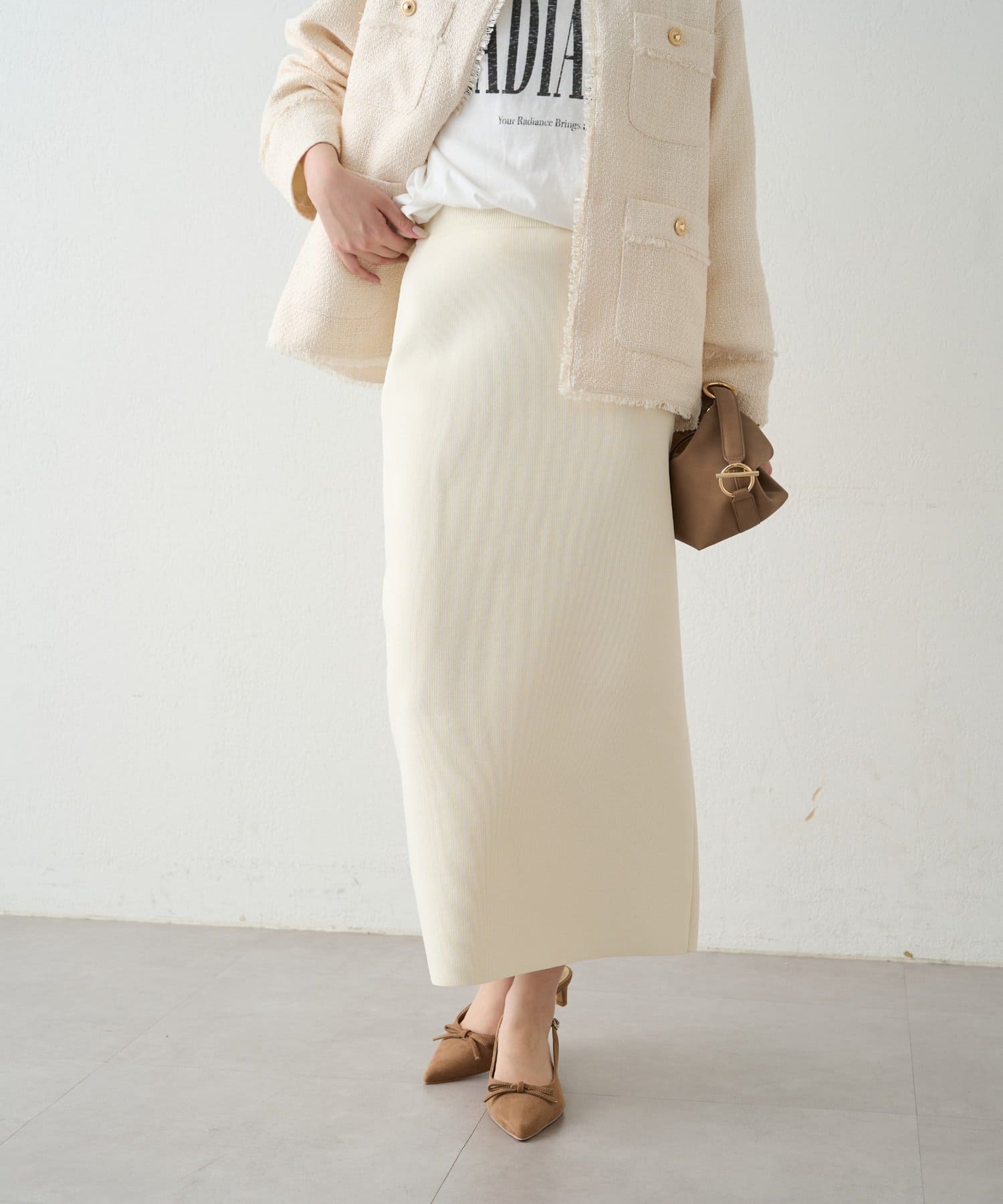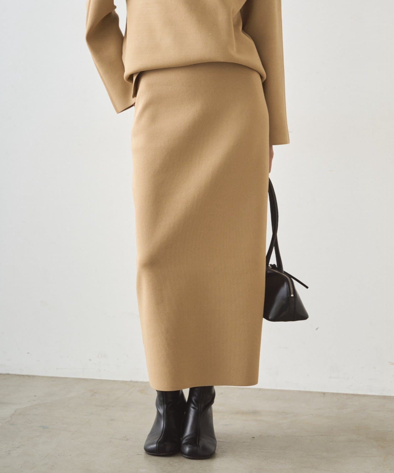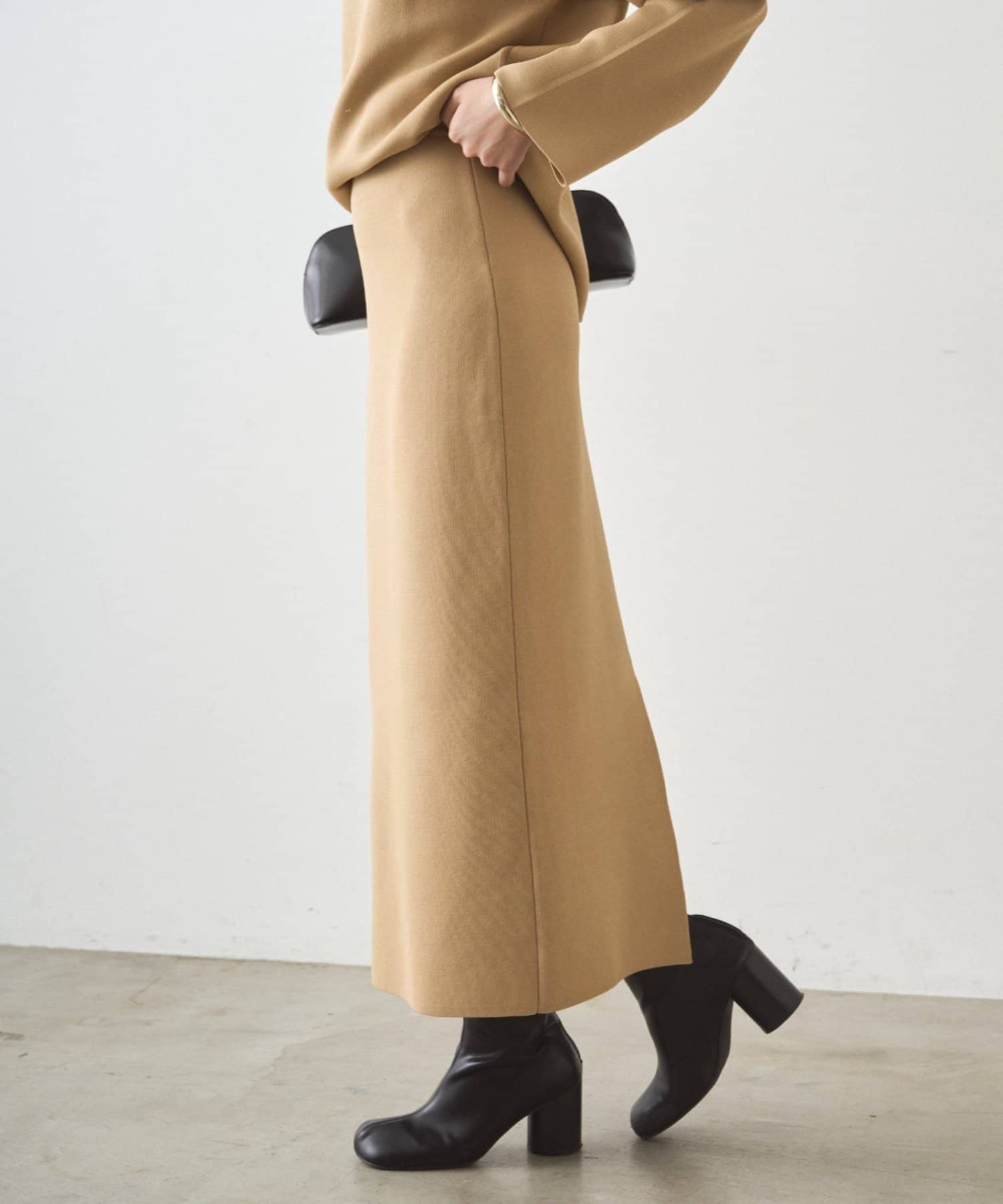 目が詰まってるので凹凸がすくなく、綺麗目な印象のニットスカート。
