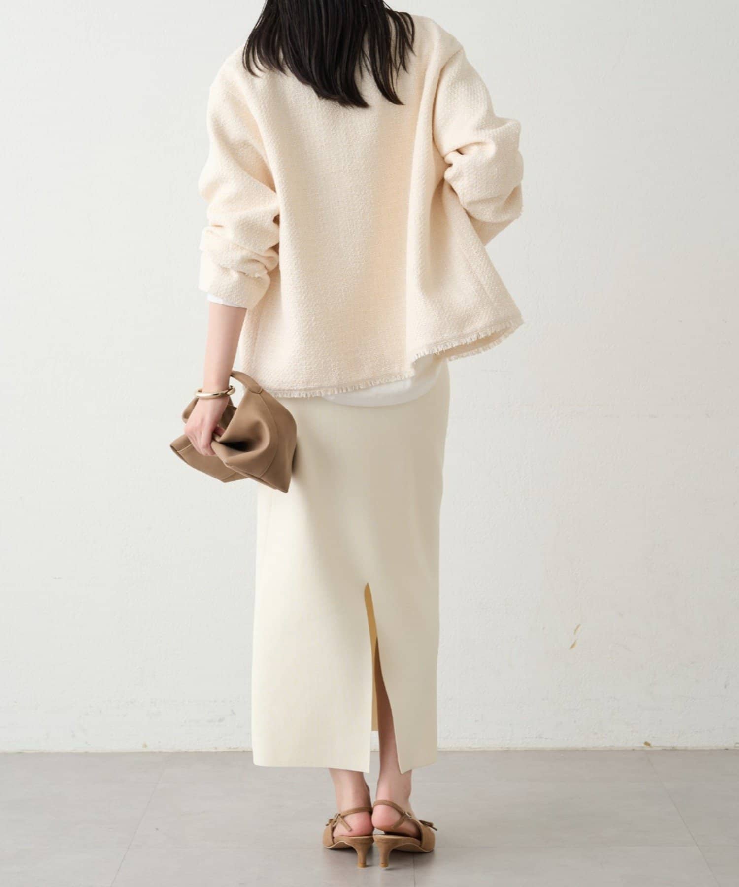 ブラウスと合わせてオフィススタイルに、ニットと合わせてカジュアルスタイルに、ジャケットを羽織ればフォーマルな装いにも。