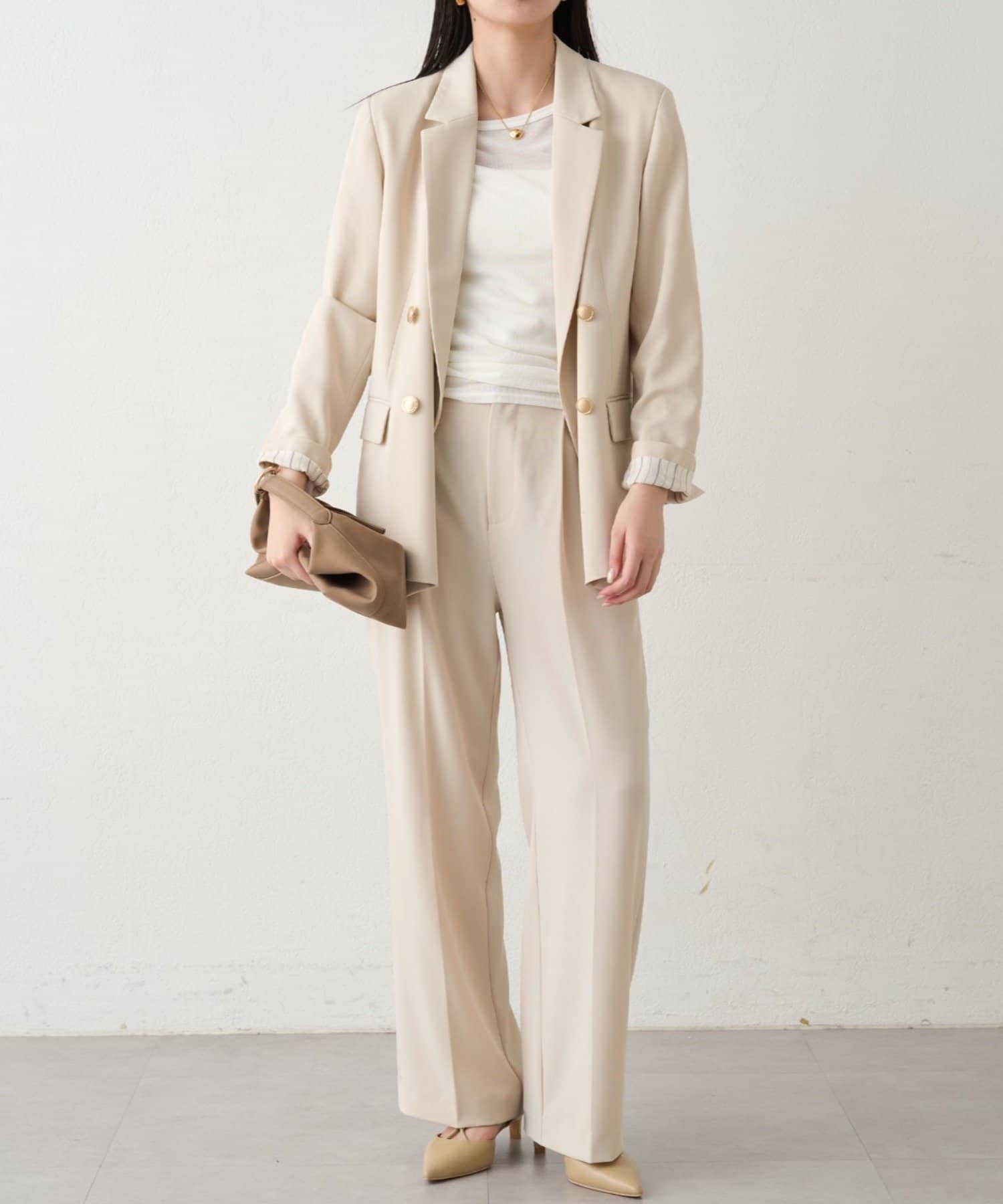 縦落ちシルエットがスッキリした女性らしい腰回りを演出してくれます♪