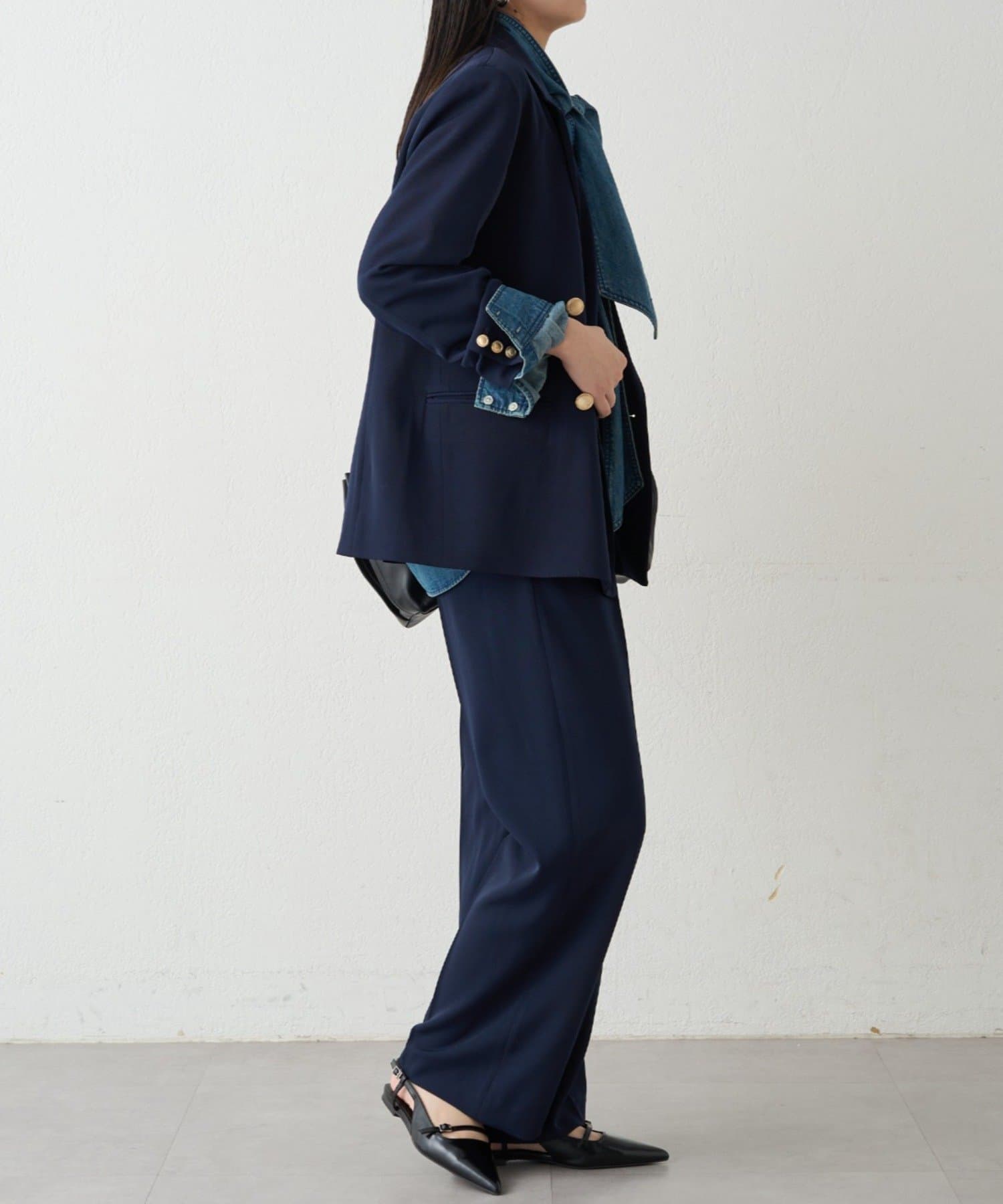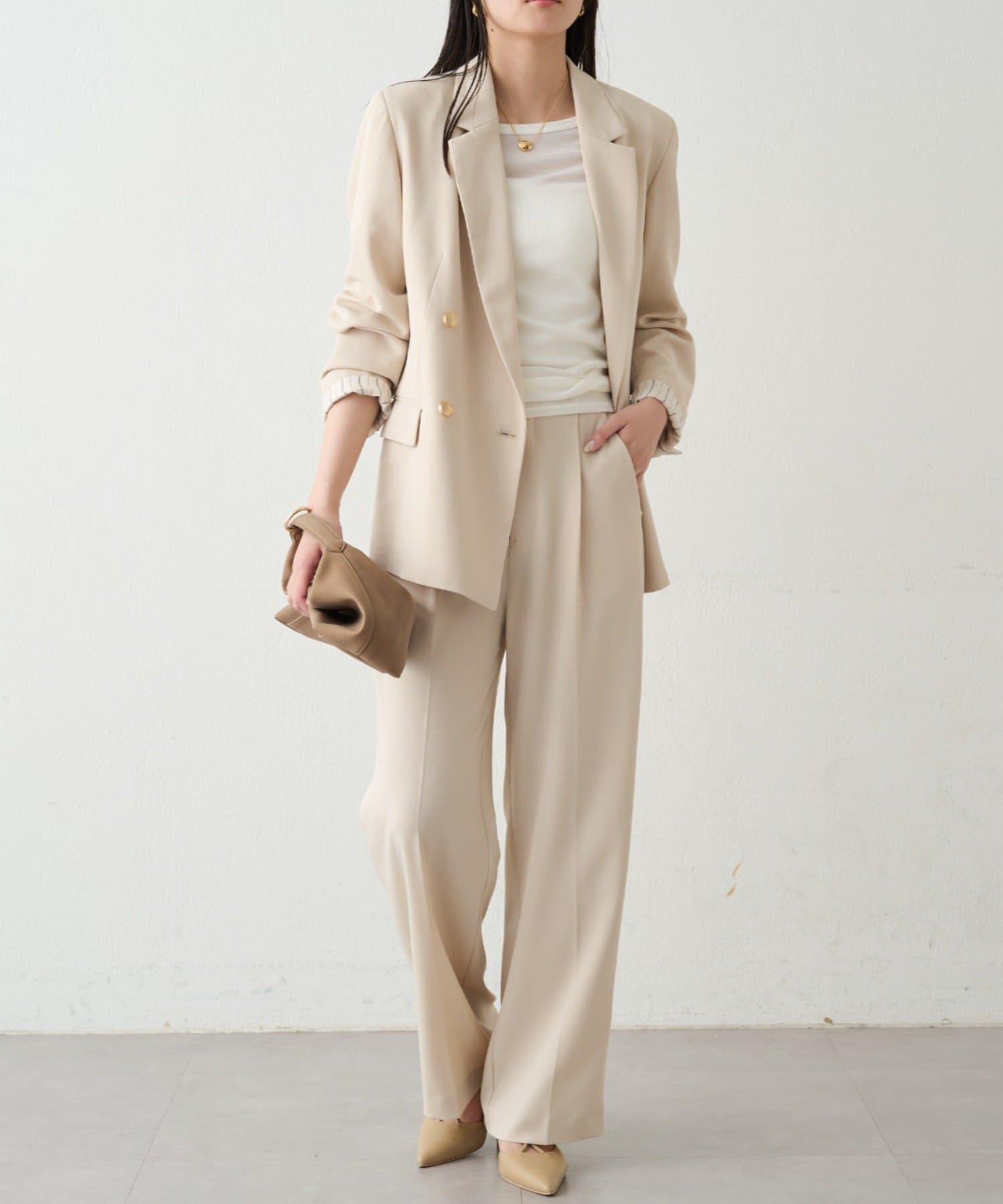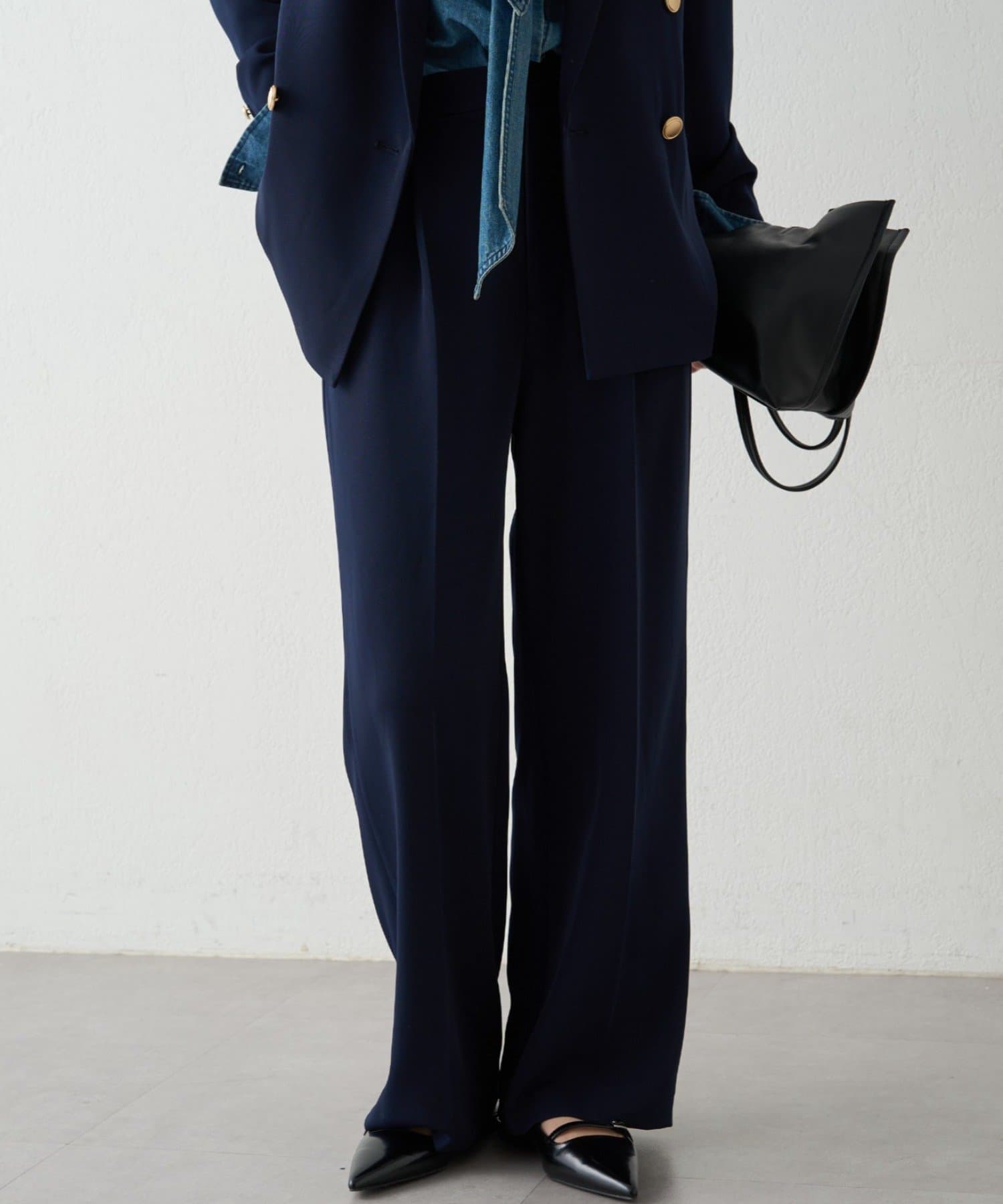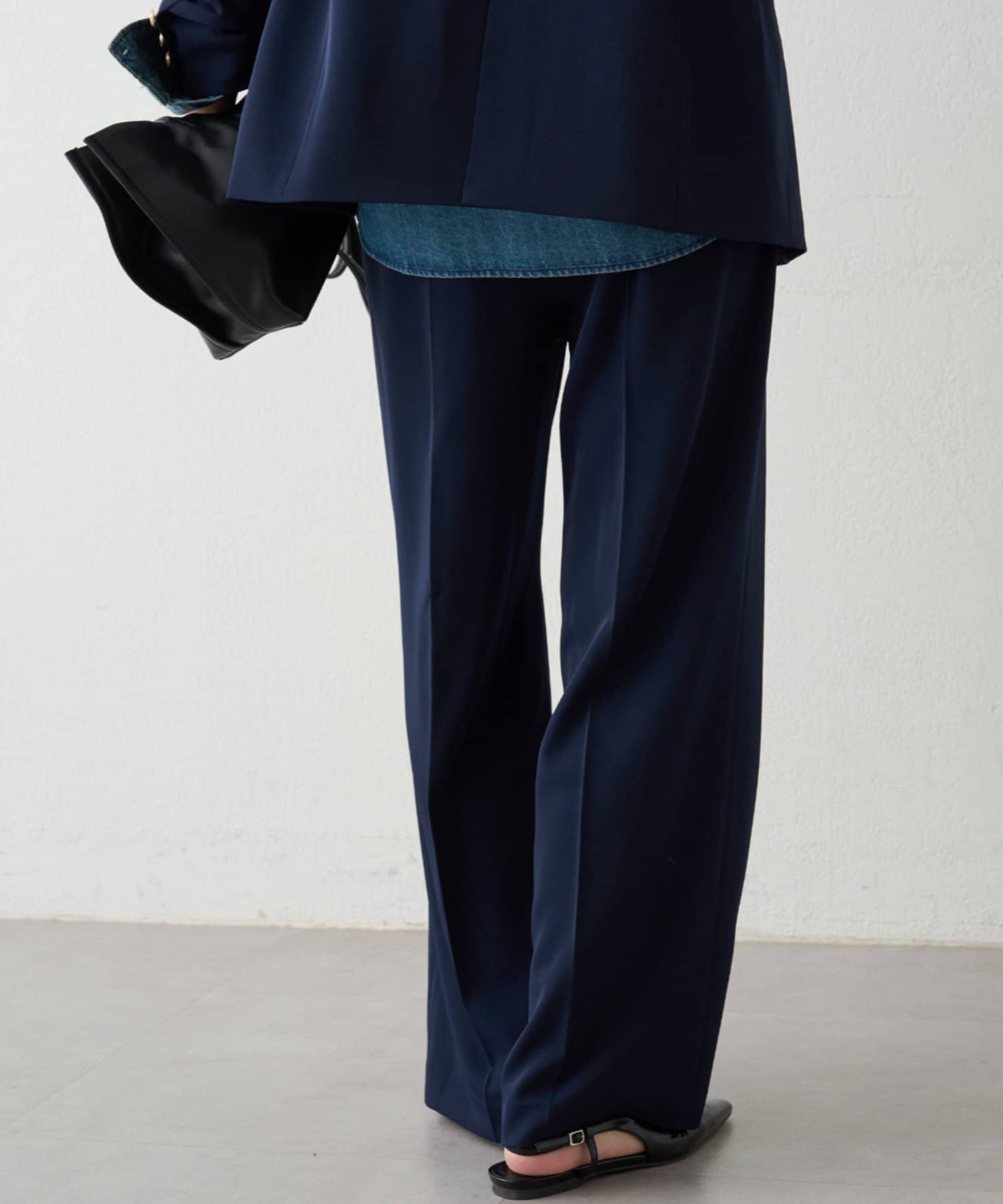 センタープレスデザインで脚をすらっと長く魅せ、美脚シルエット。