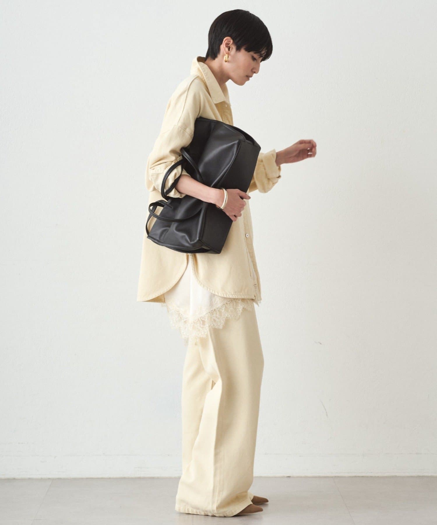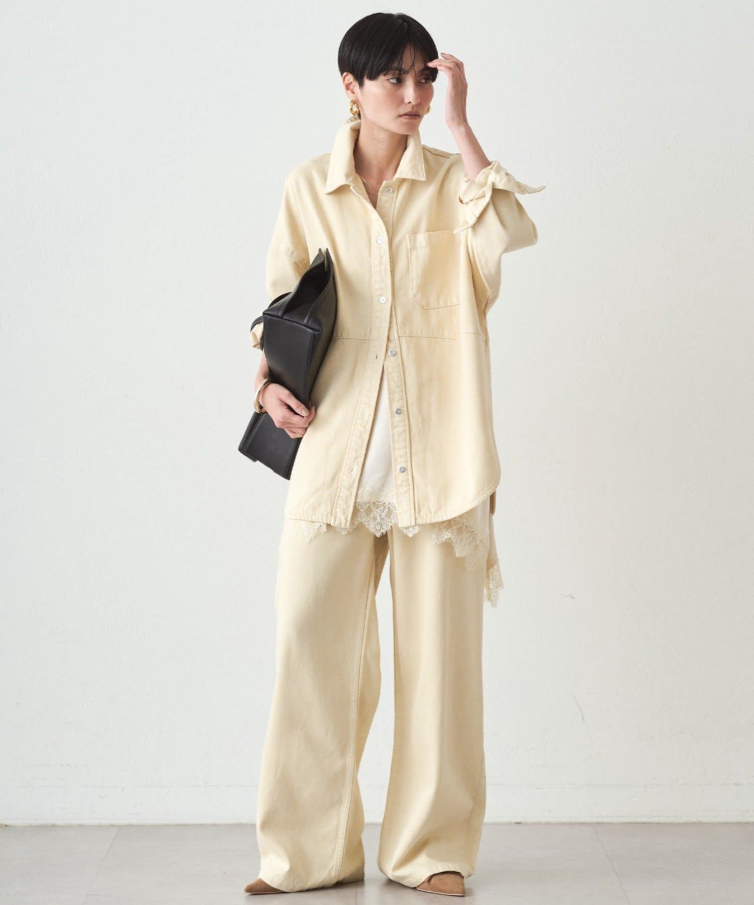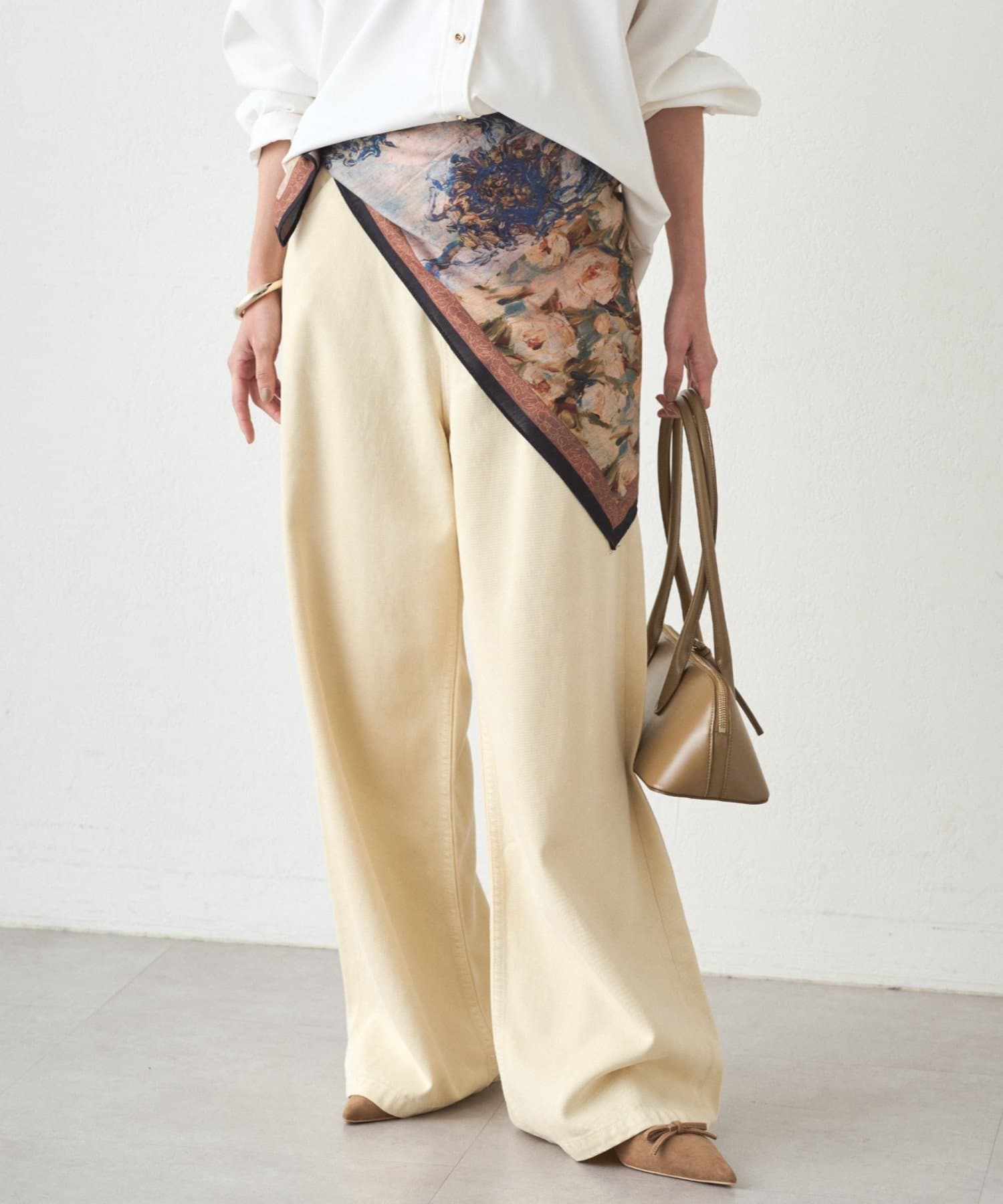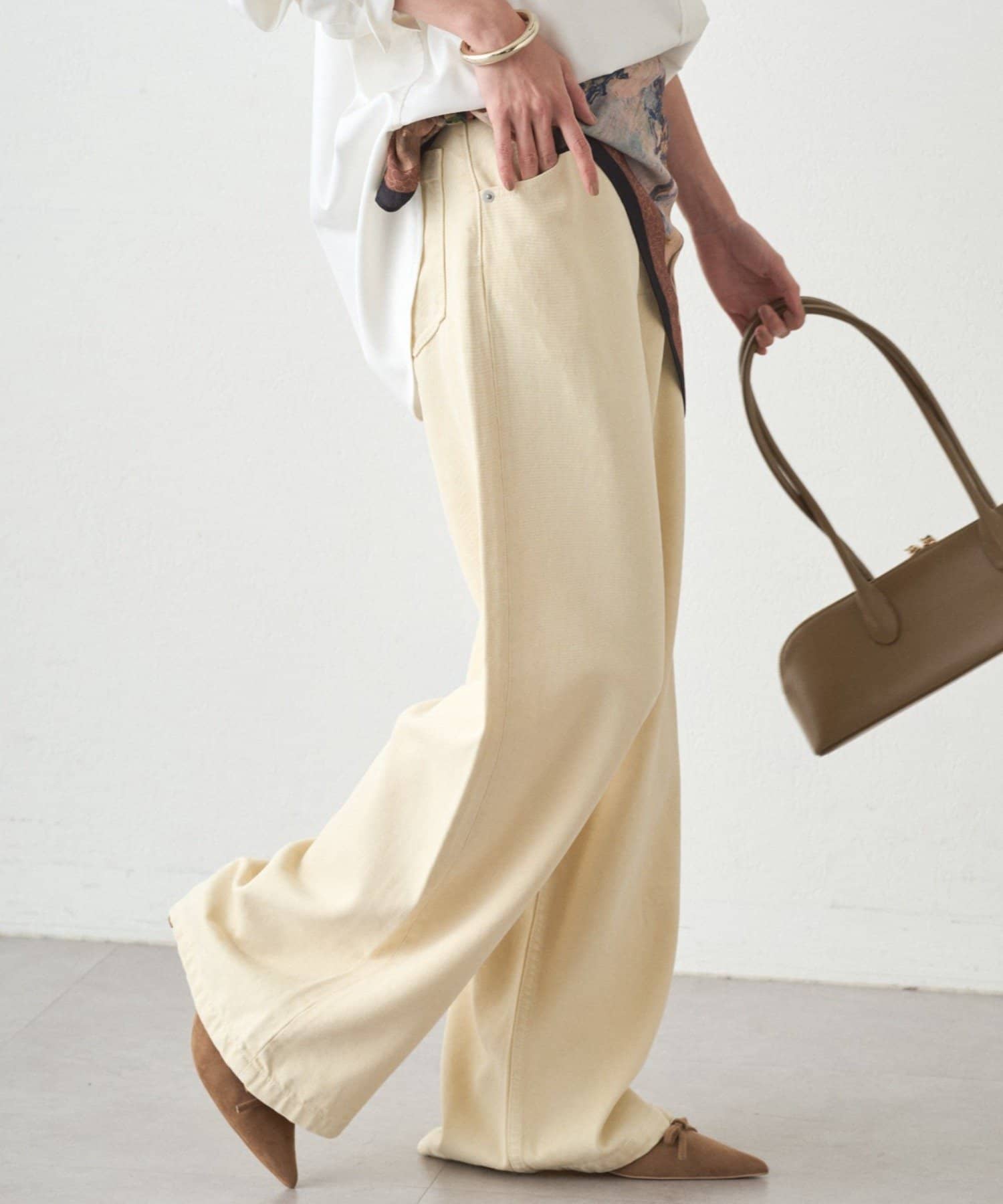 オリジナルで染めたバターイエローは、主張しすぎず、どんなトップスとも相性抜群。