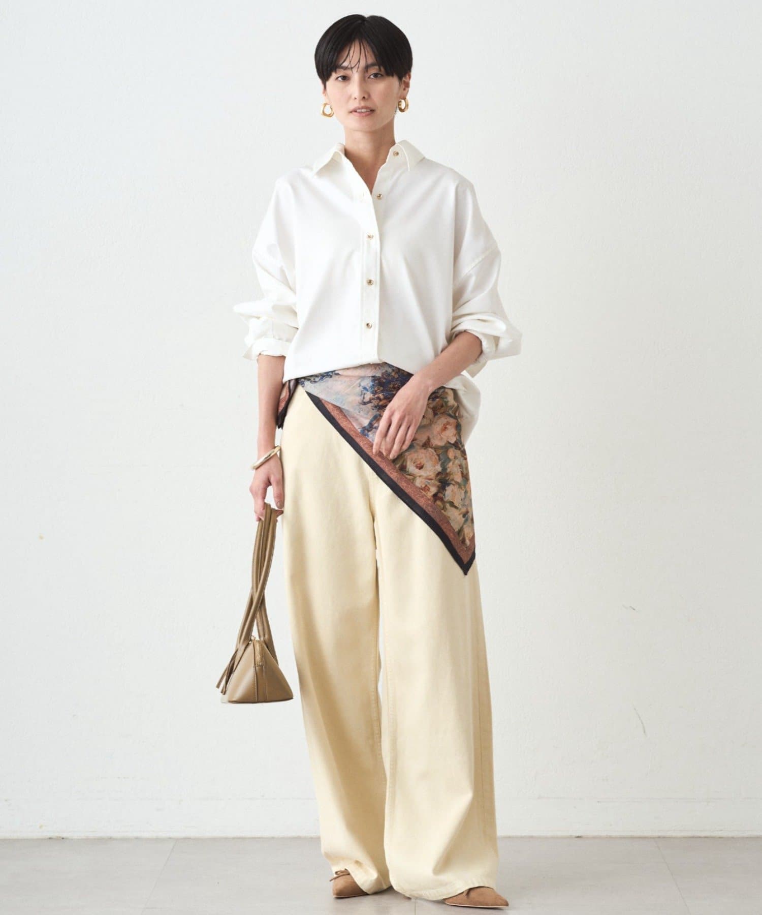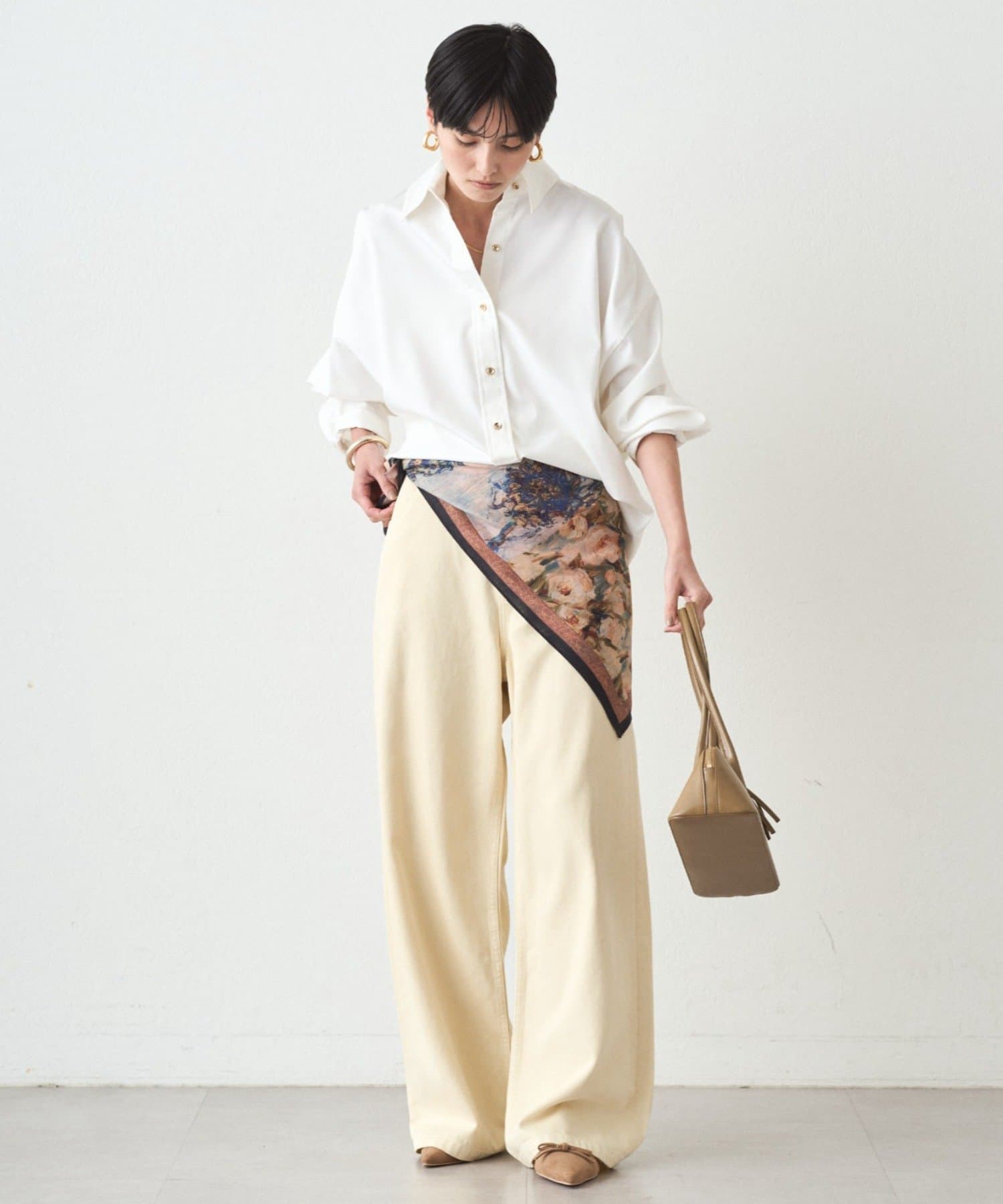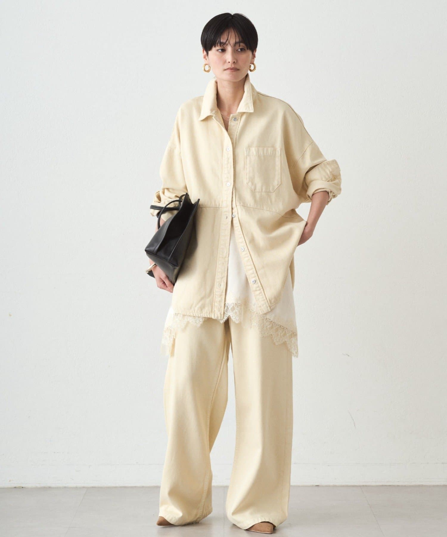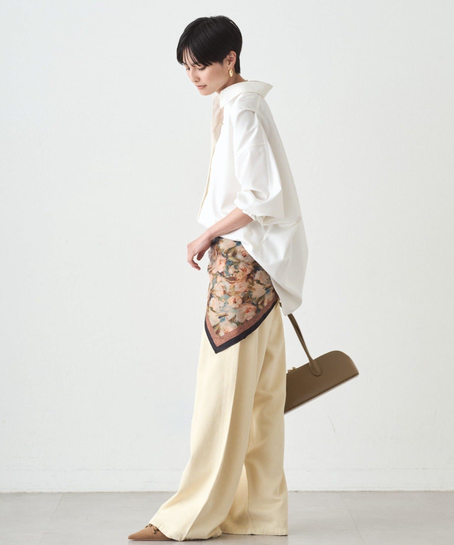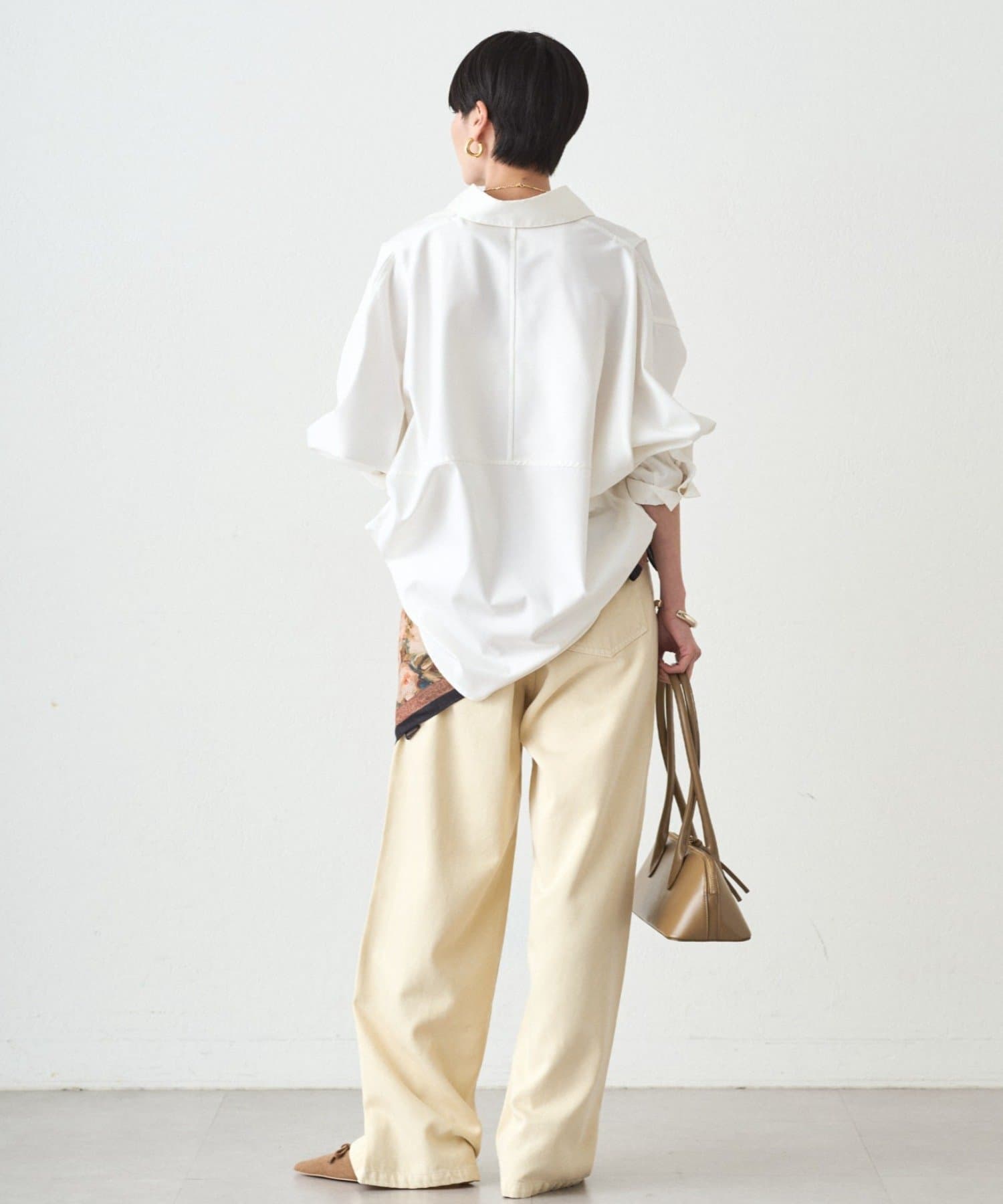 カジュアルながらも、どこか上品な印象を与えてくれる、こだわりのシルエットです。