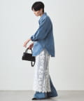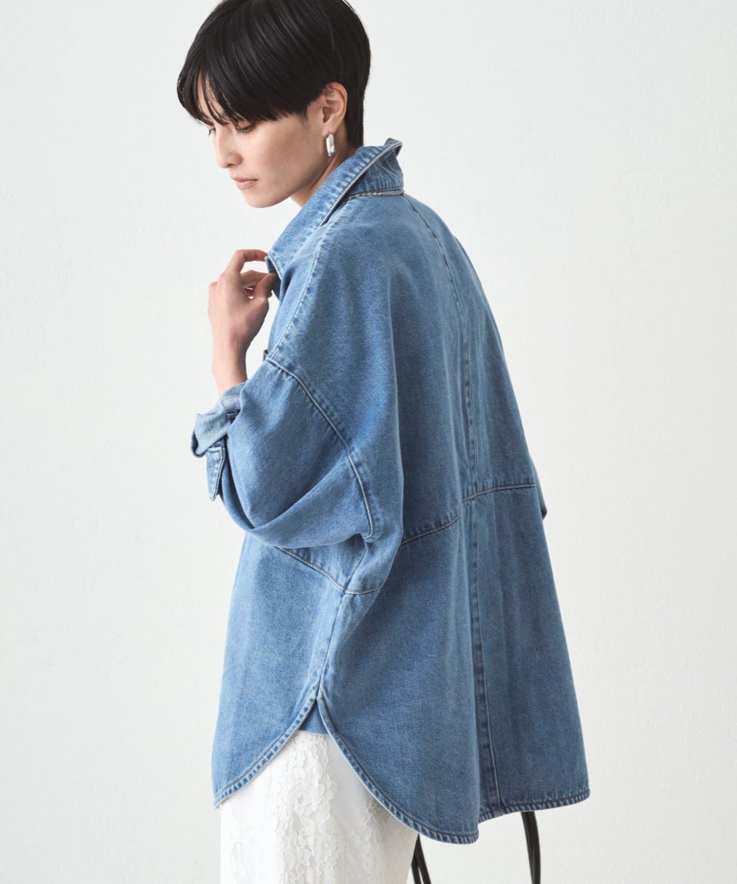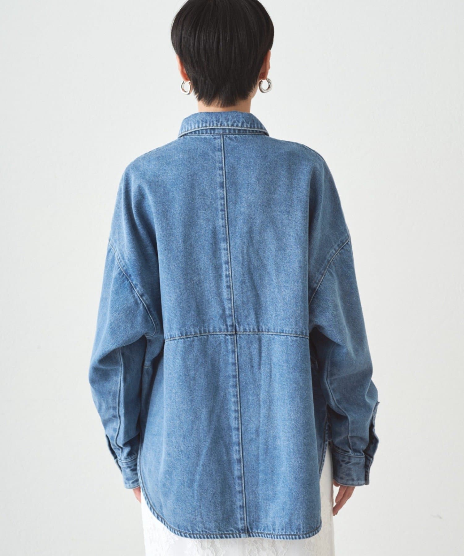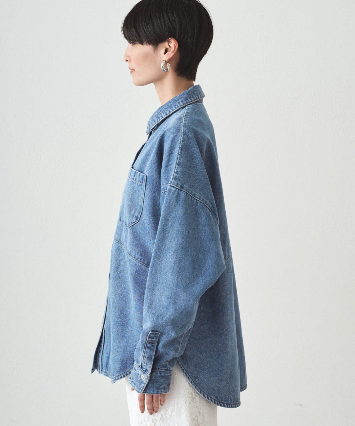 カジュアルなデザインのデニムシャツは、女性らしいアイテムに合わせるとバランスよく着られます。