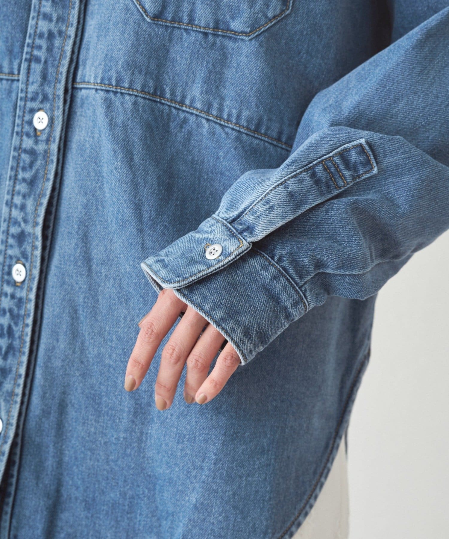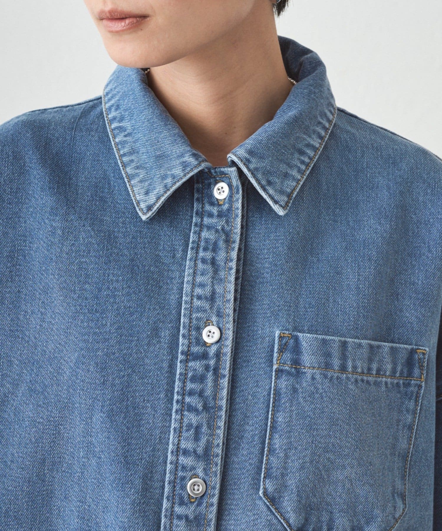 オリジナルで染めたブルーが特徴のデニムシャツ。