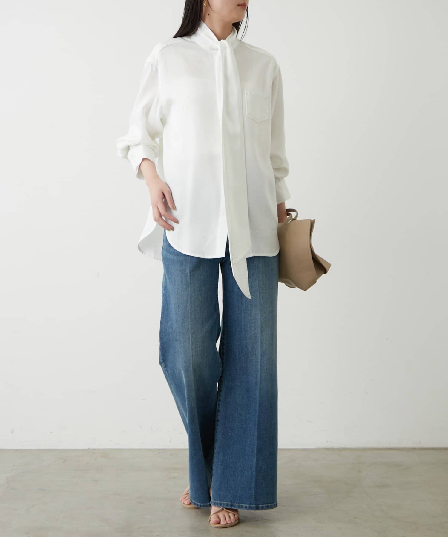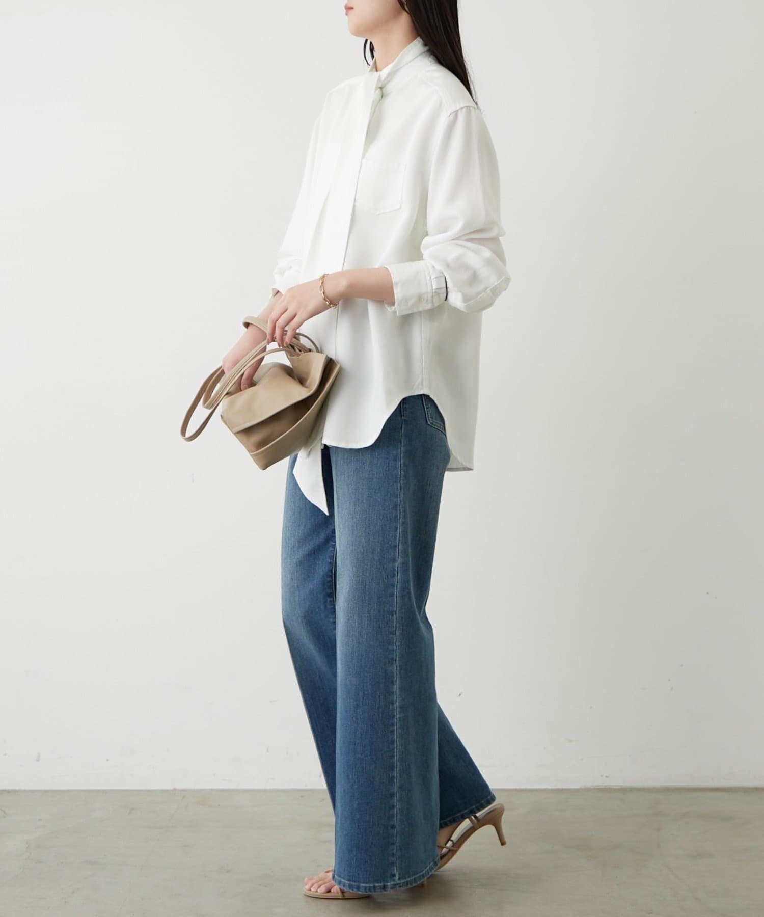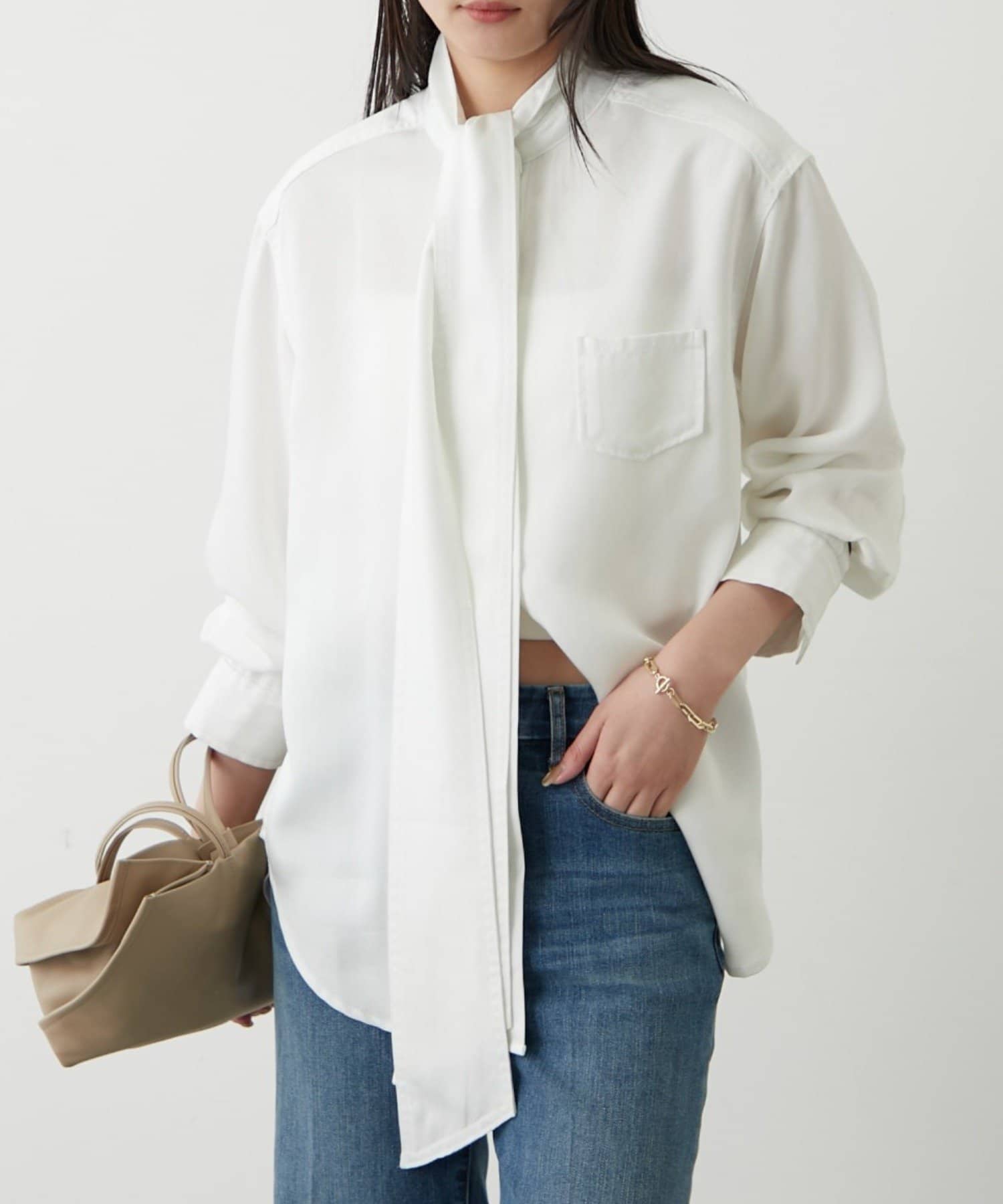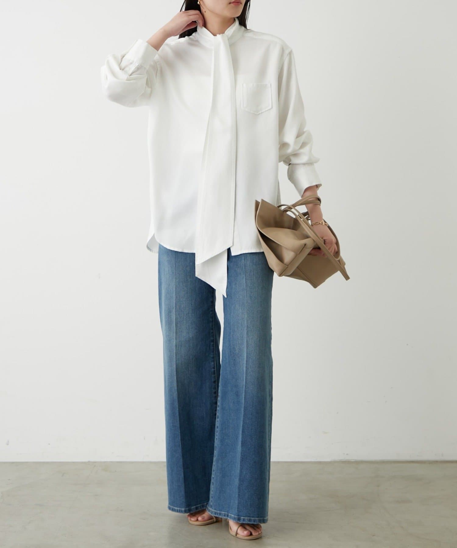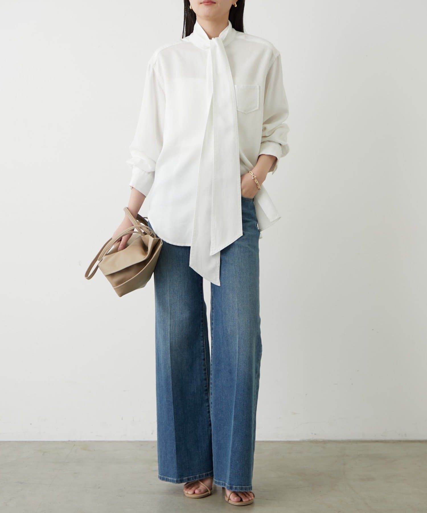 こなれ感と大人の遊び心をまとう、デニムボウタイブラウス