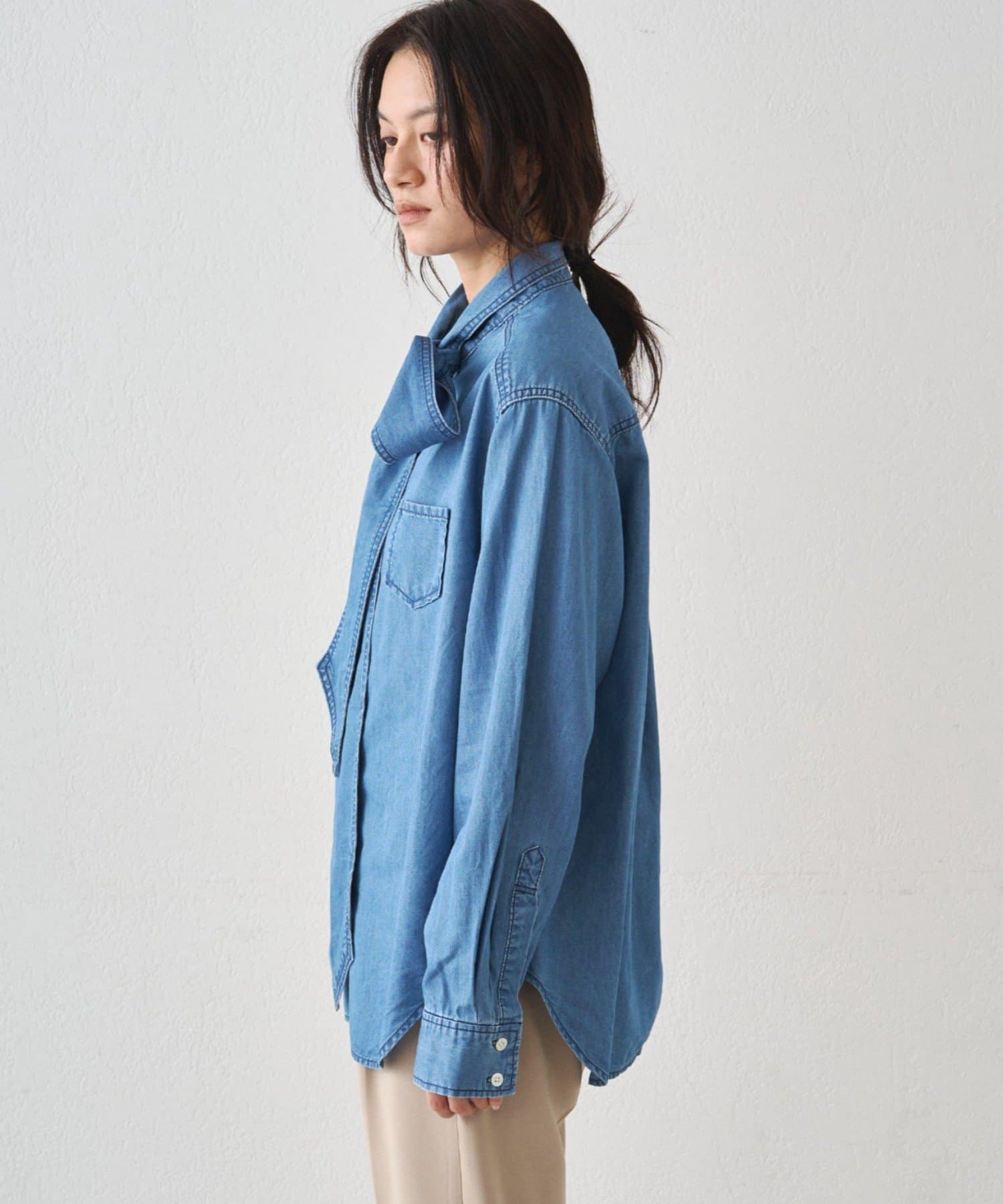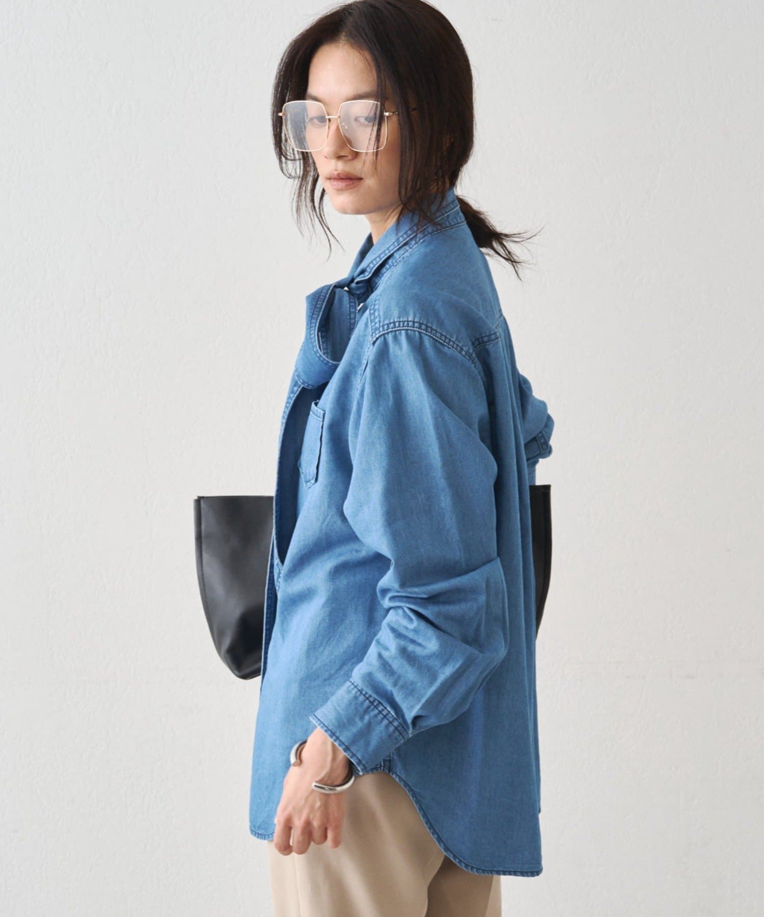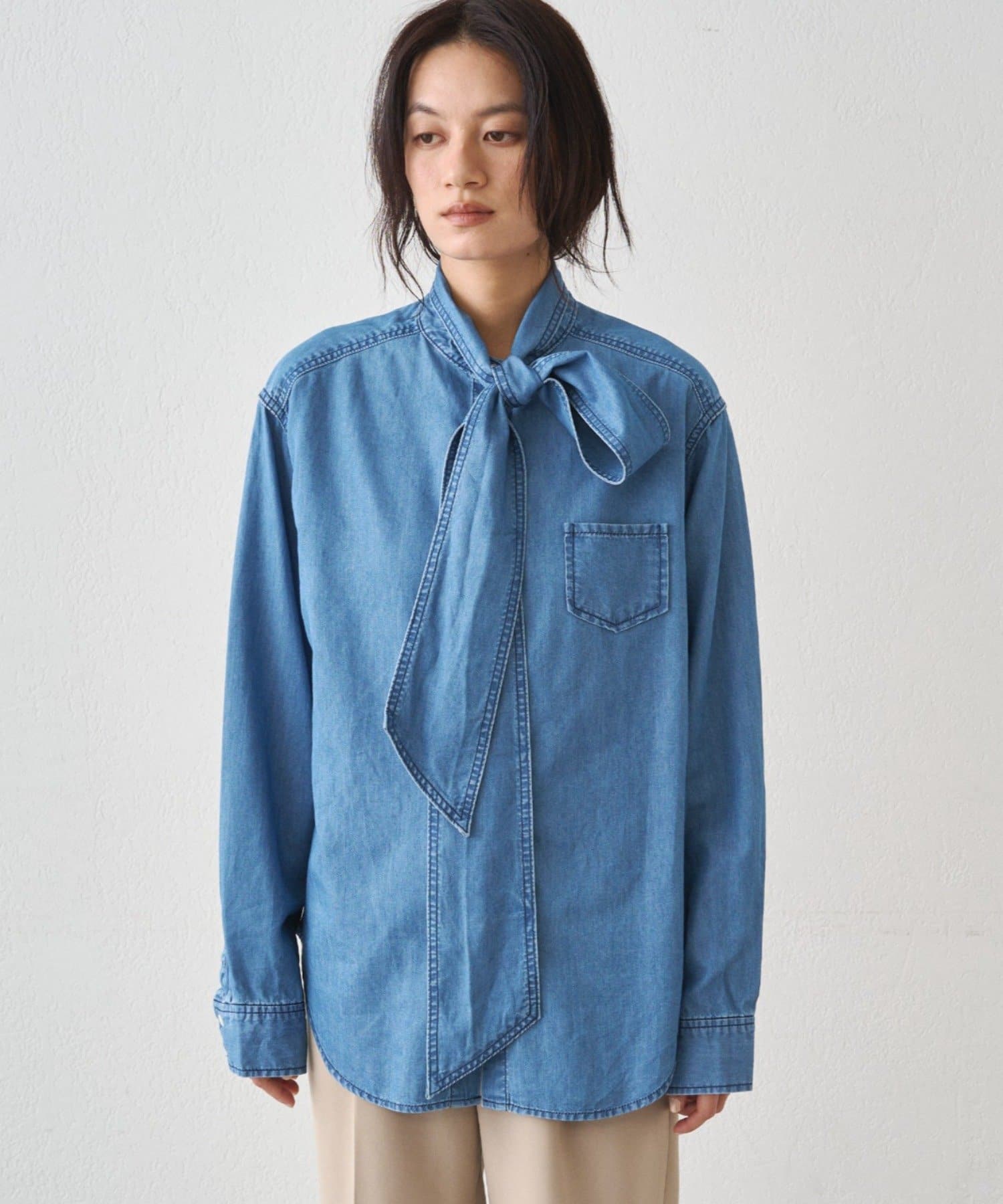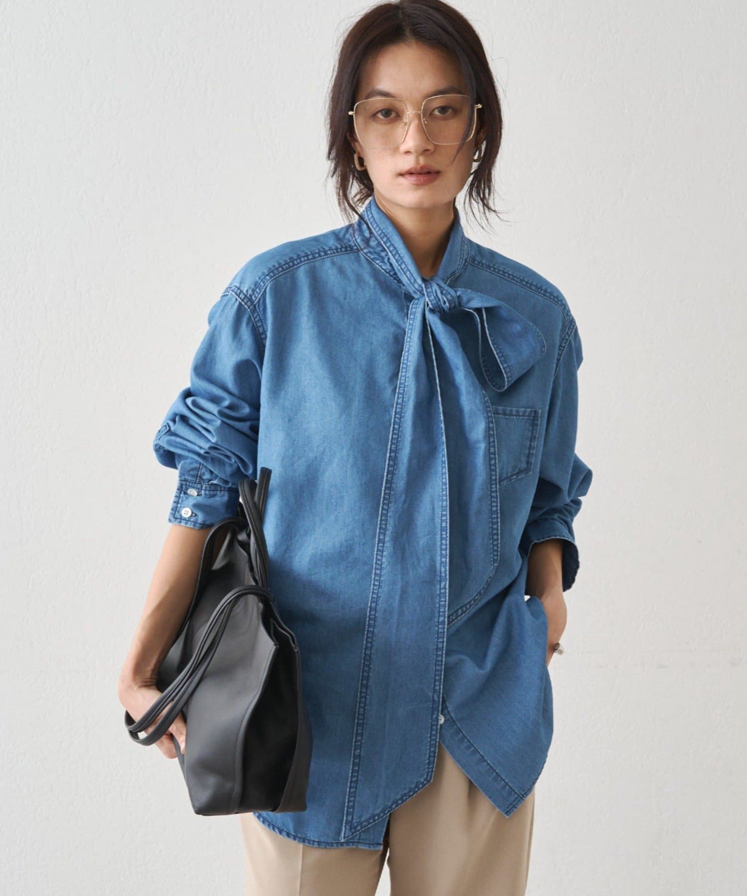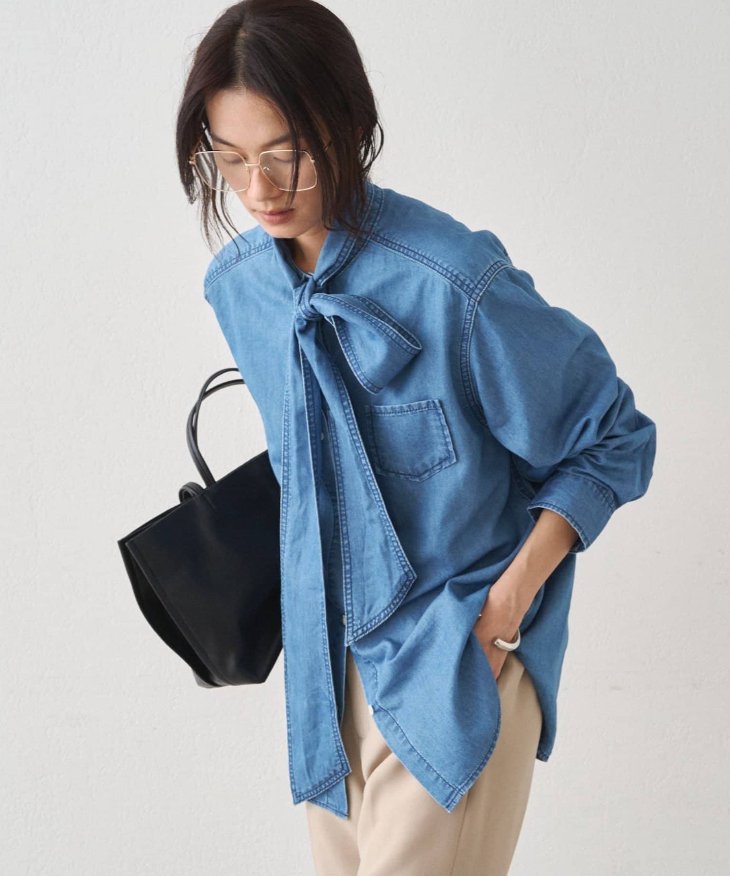 こなれ感と大人の遊び心をまとう、デニムボウタイブラウス