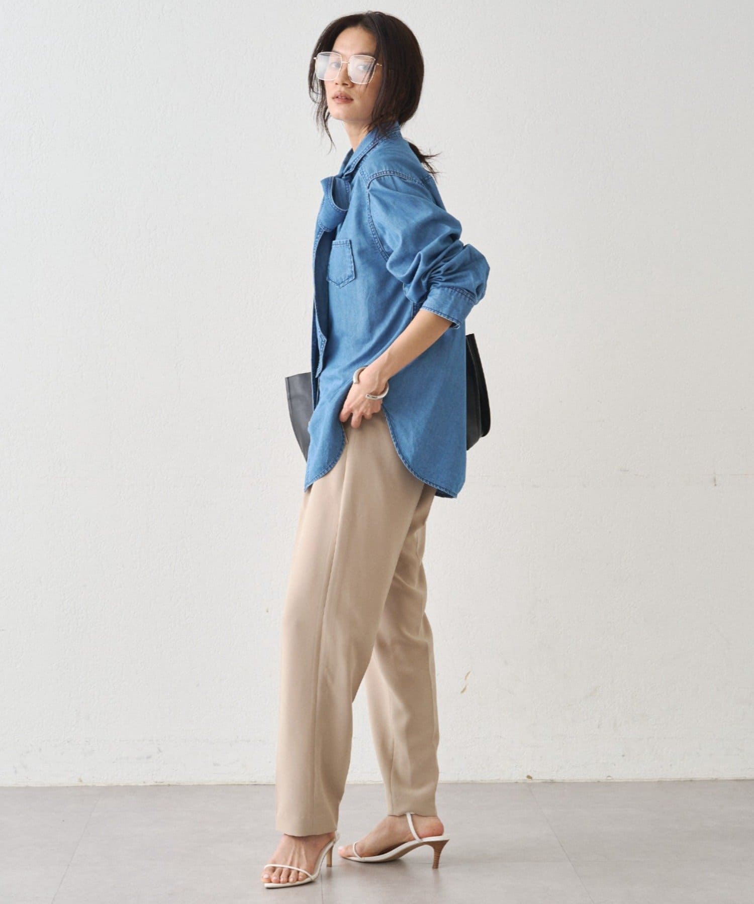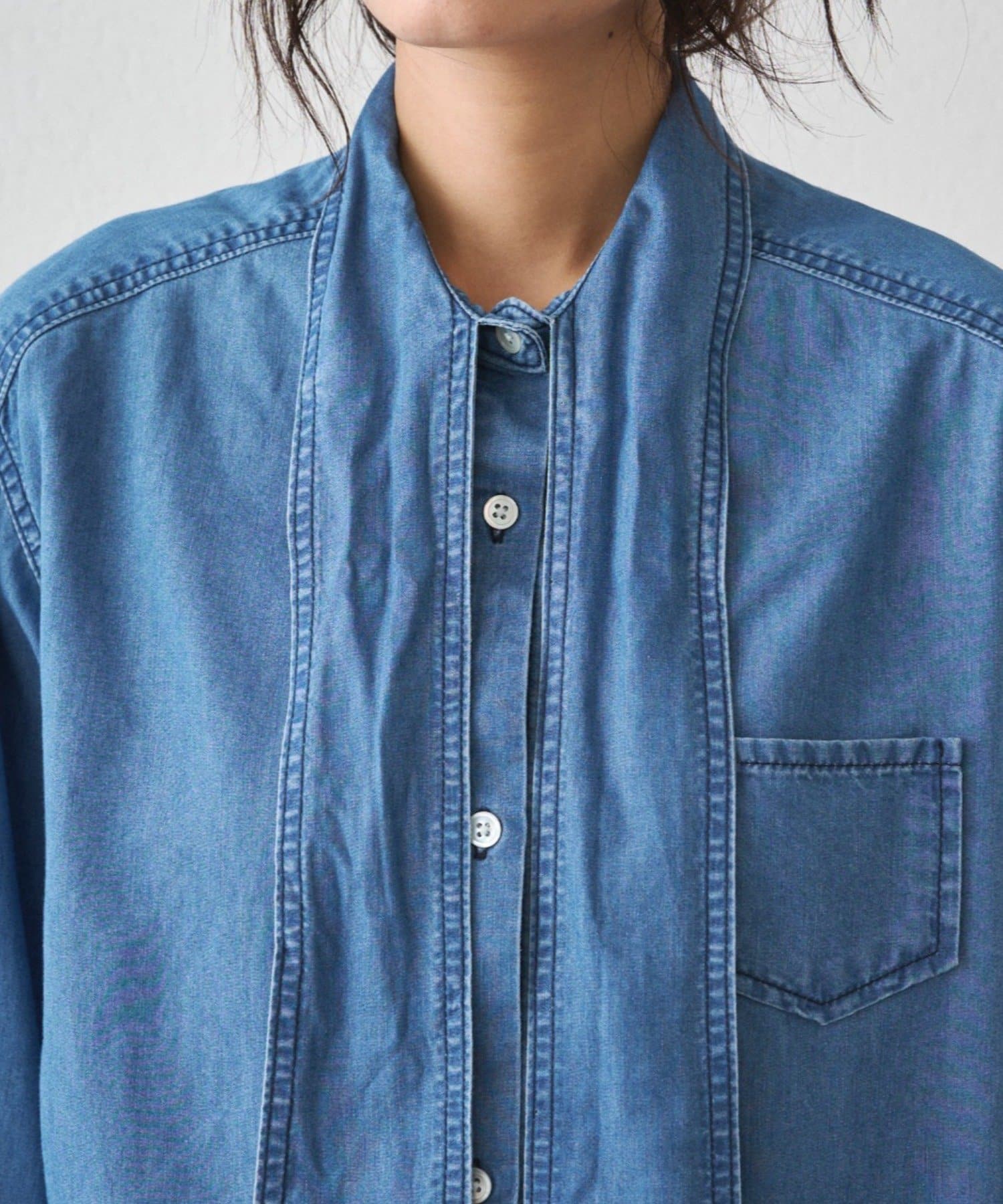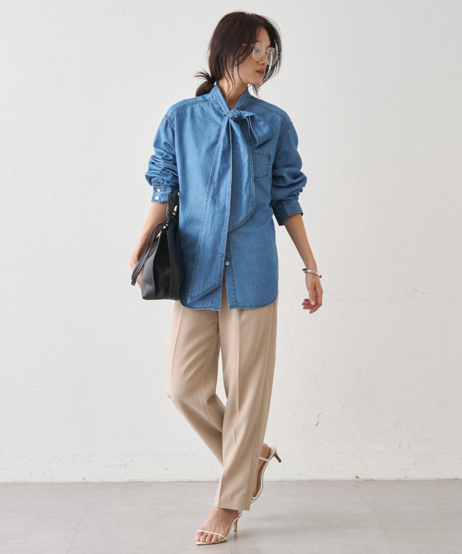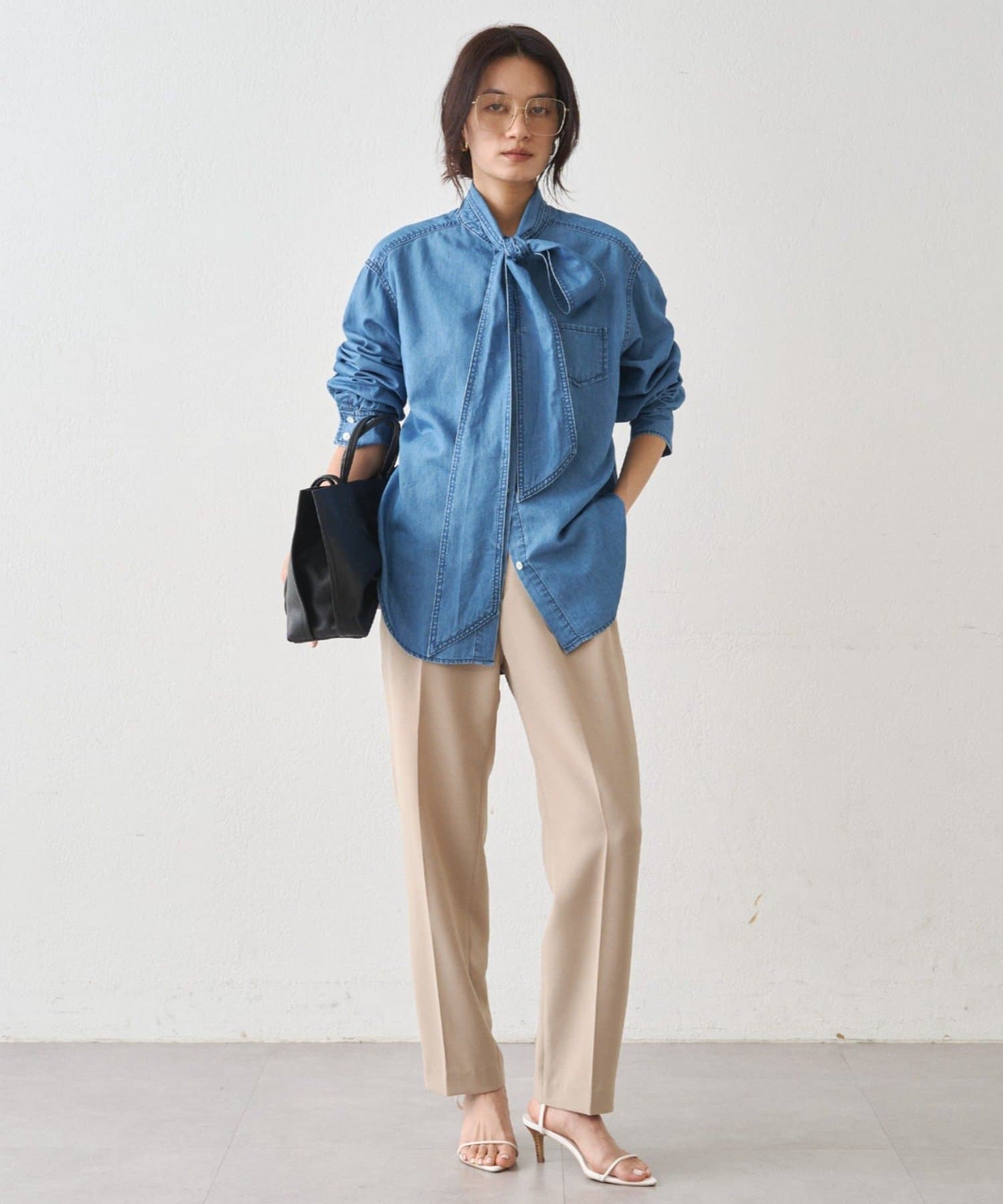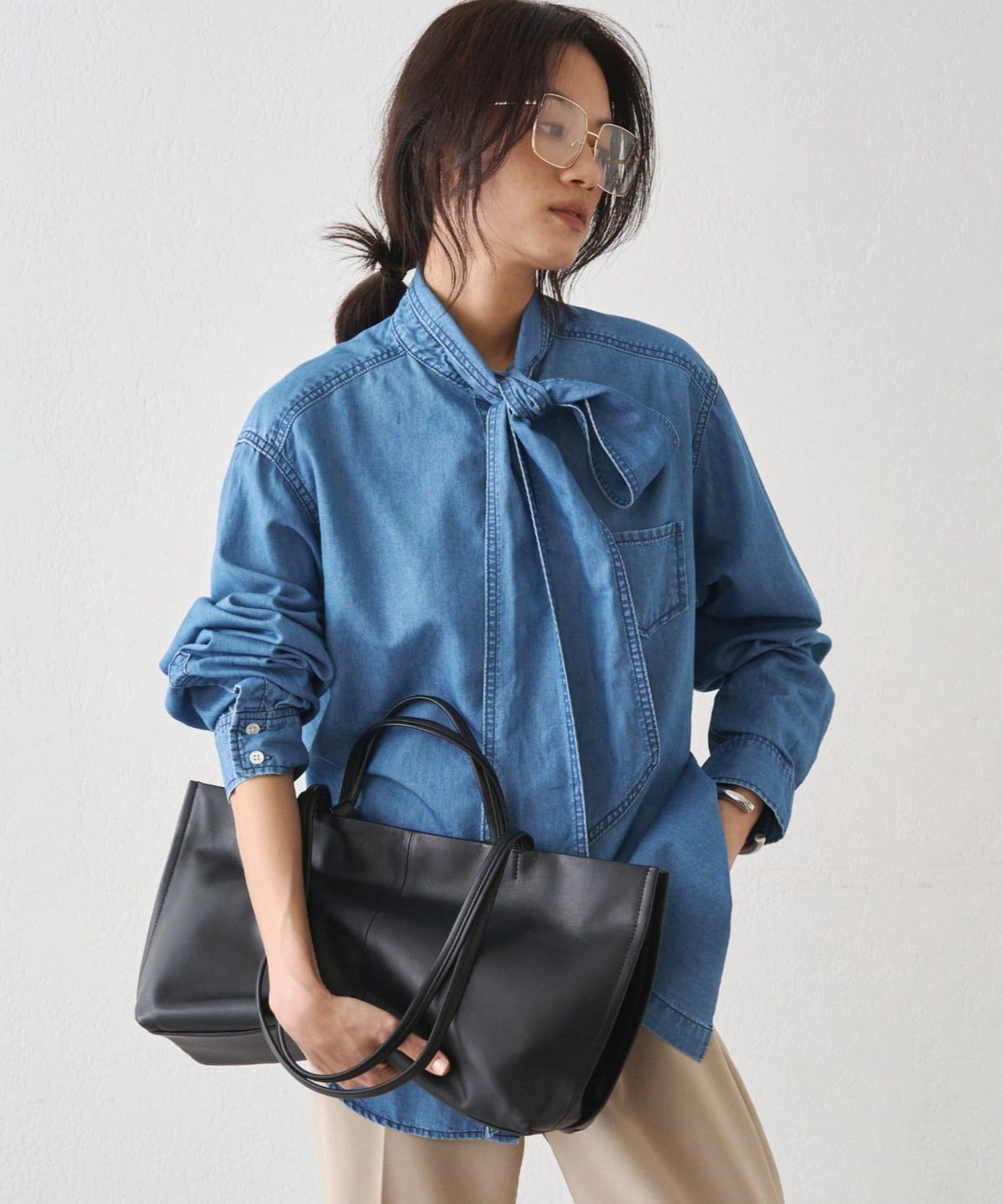 こなれ感と大人の遊び心をまとう、デニムボウタイブラウス