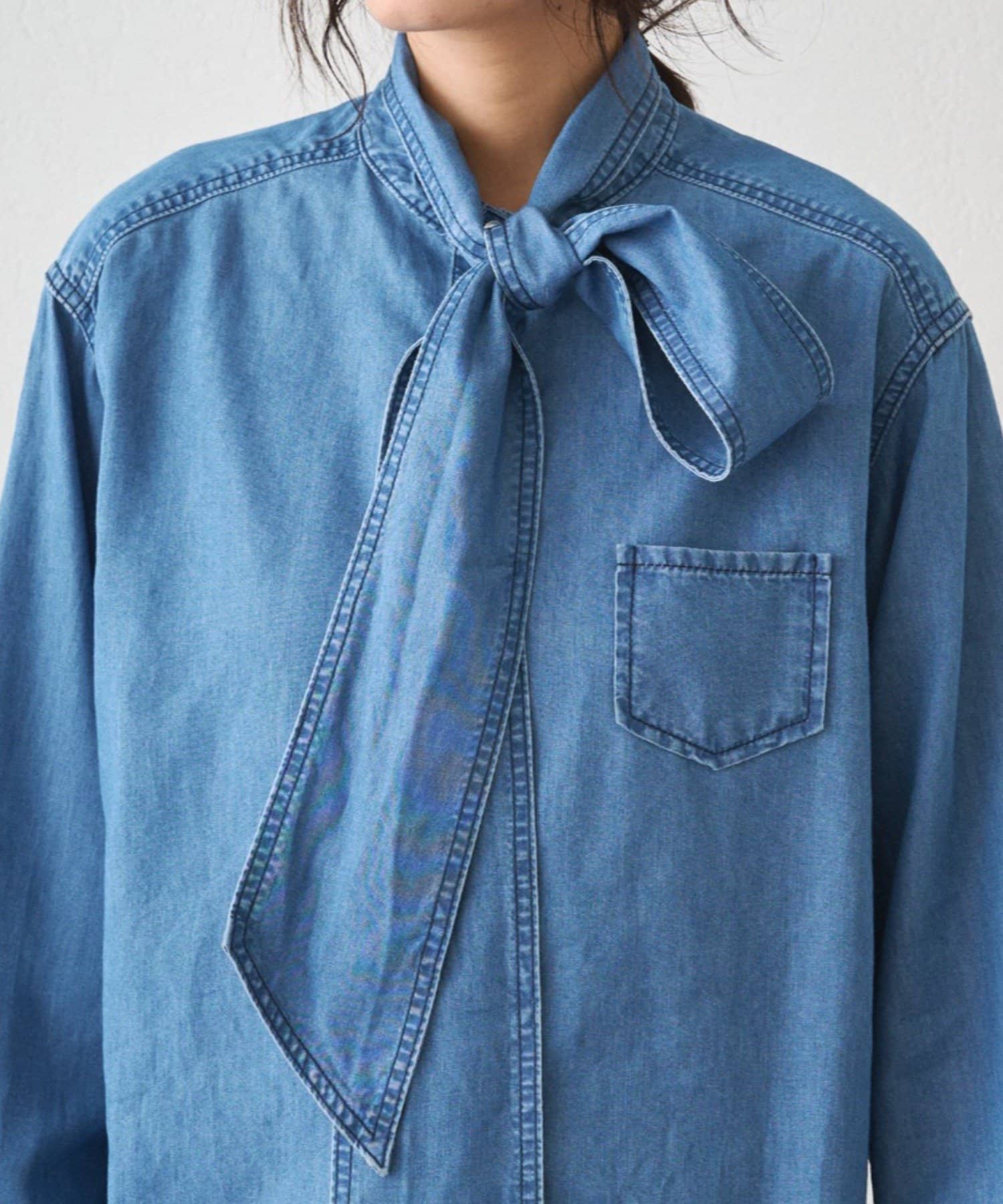 ライトデニムボウタイブラウス