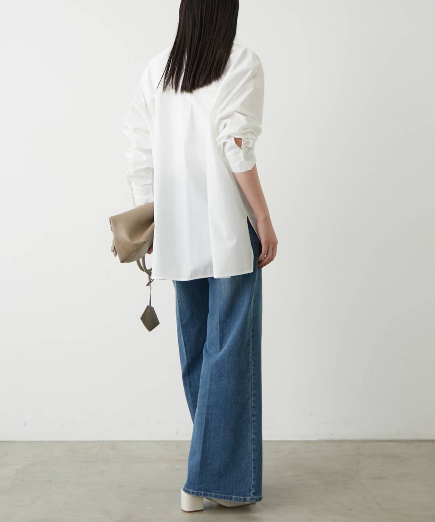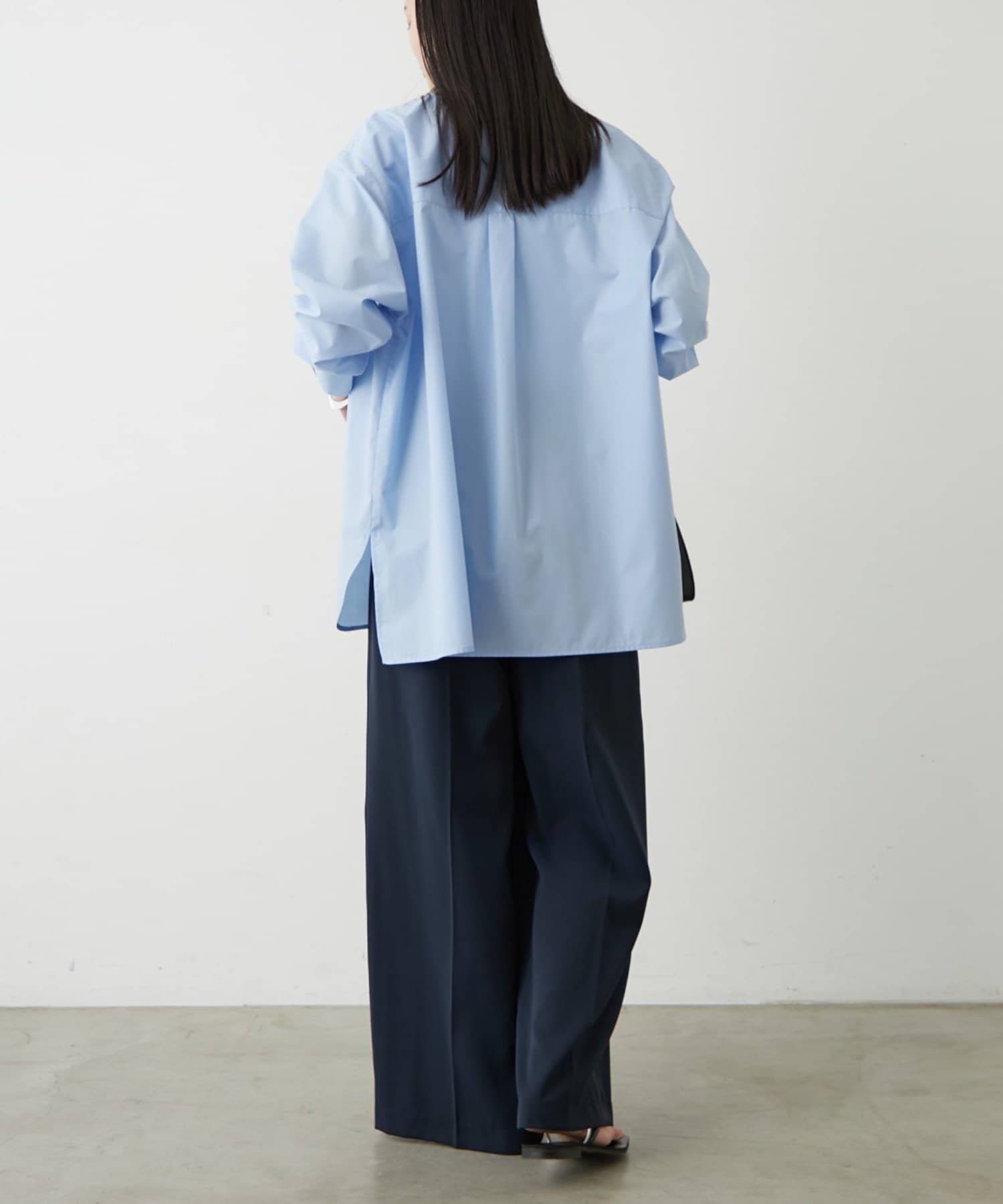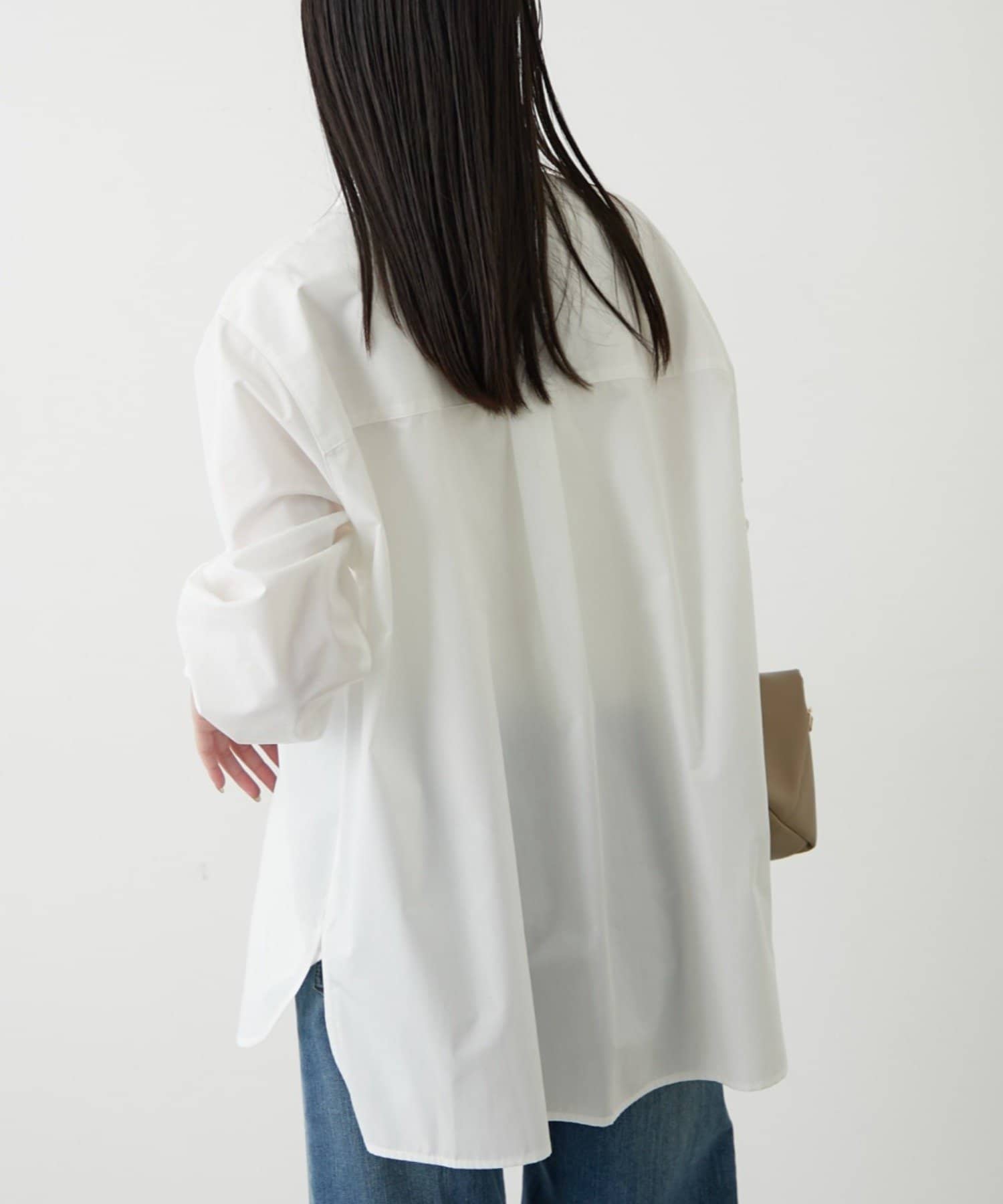 トレンドに左右されない、定番のシャツデザイン。どんなボトムスとも相性が良く、着回し力抜群です。