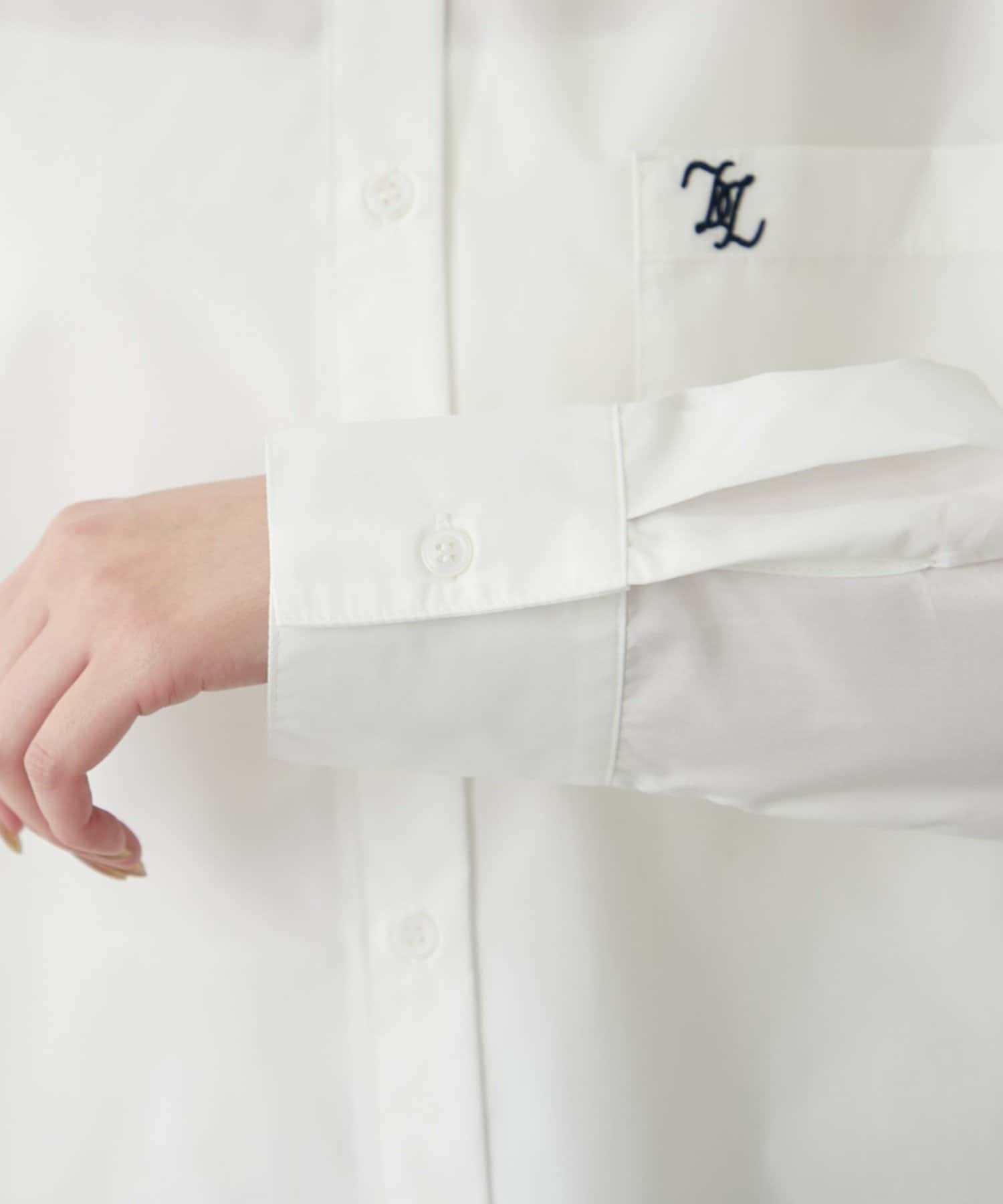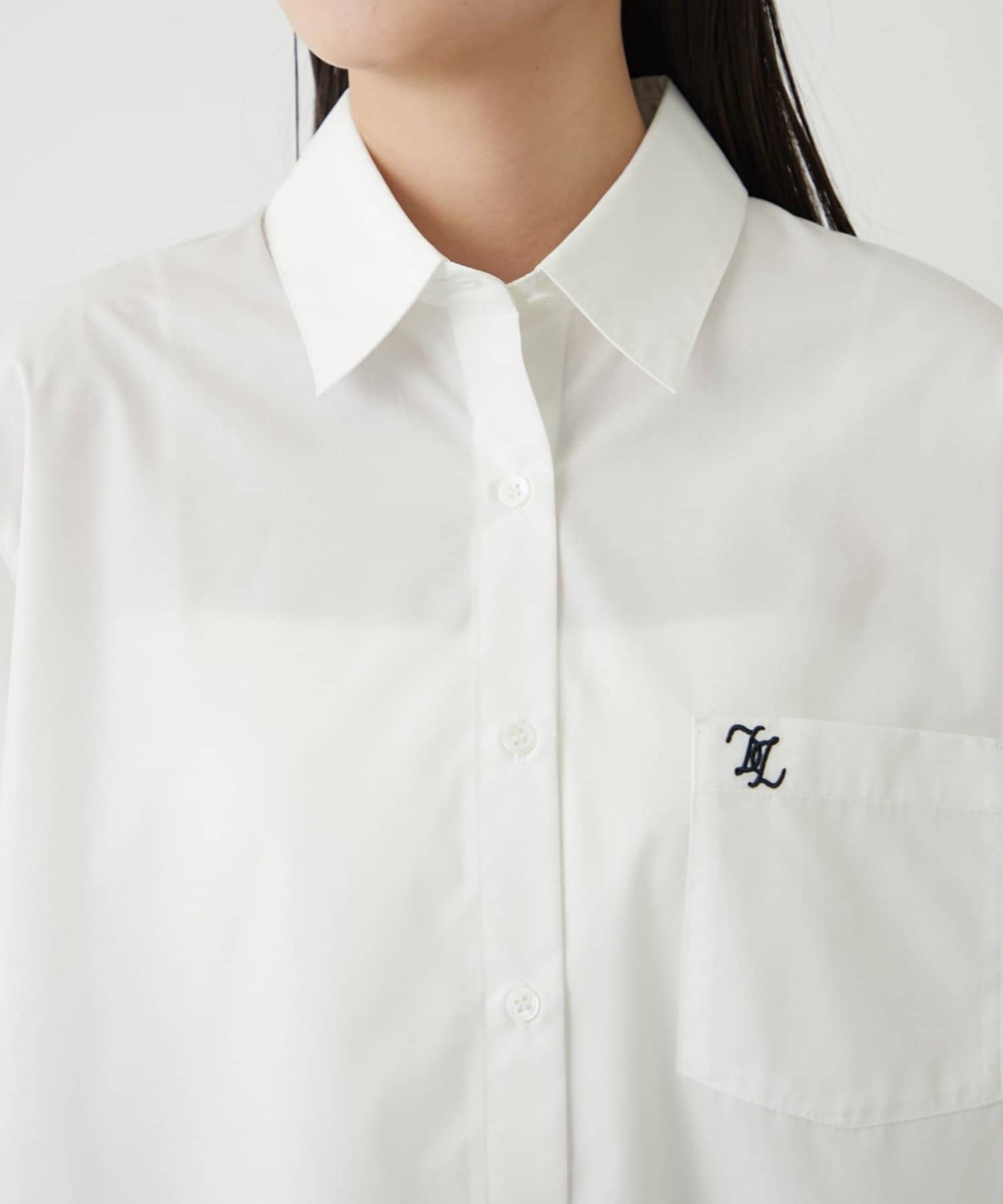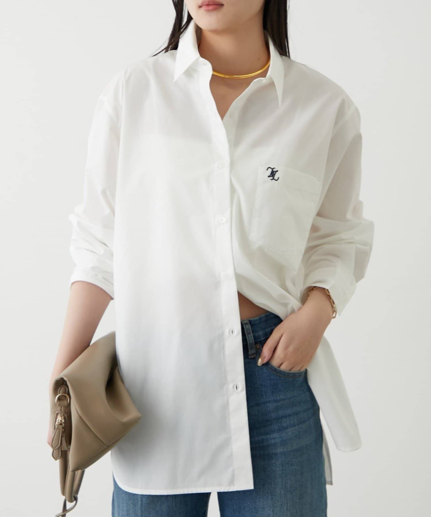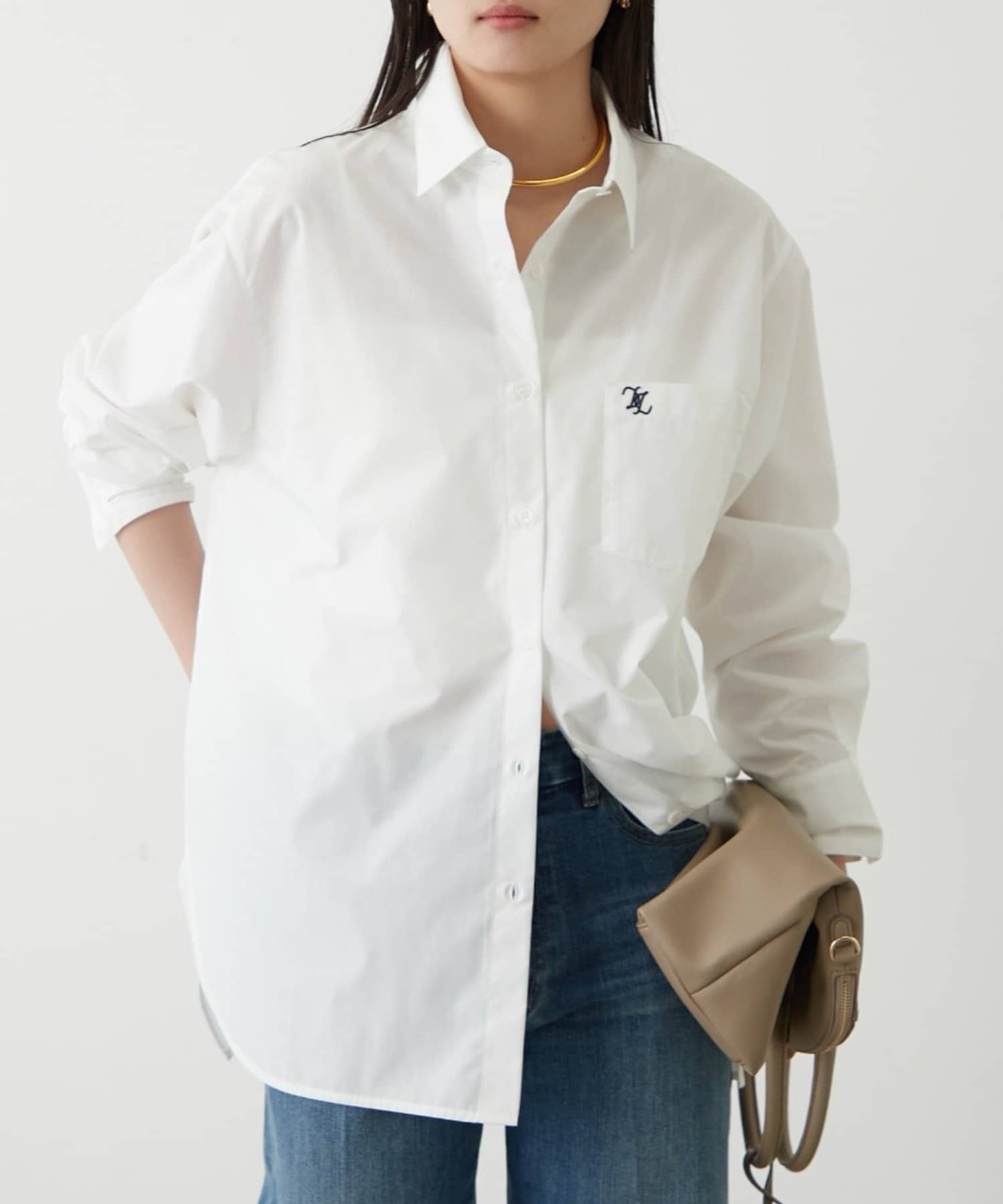 胸元のブランドロゴ刺繍が、シンプルながらも洗練された印象のロゴ刺繍シャツ