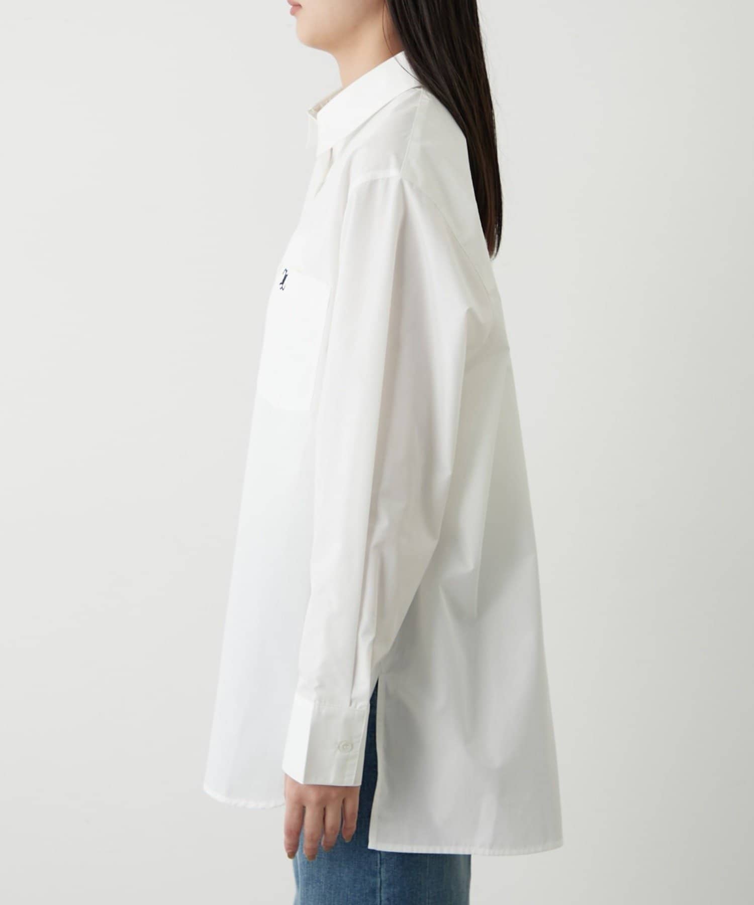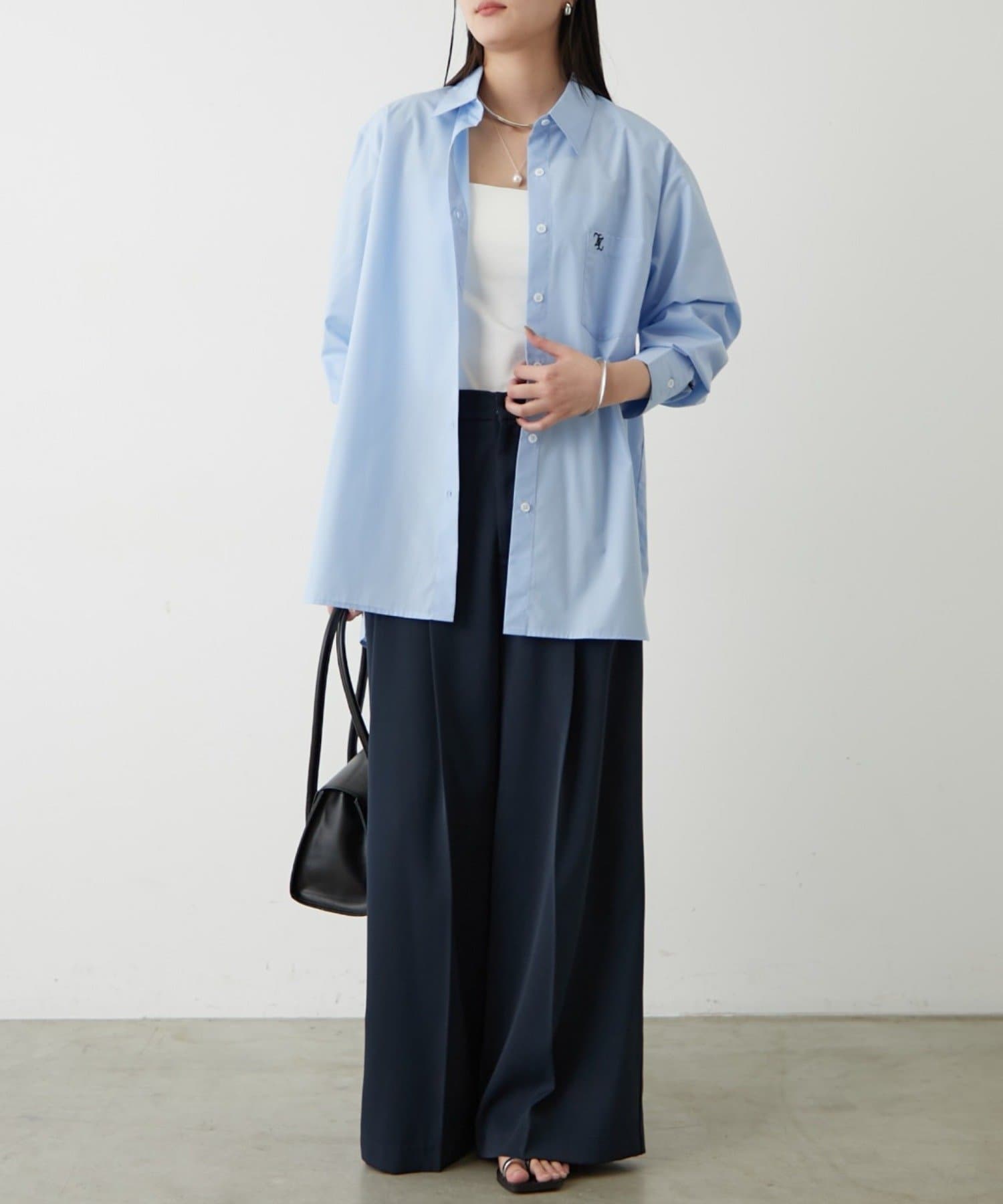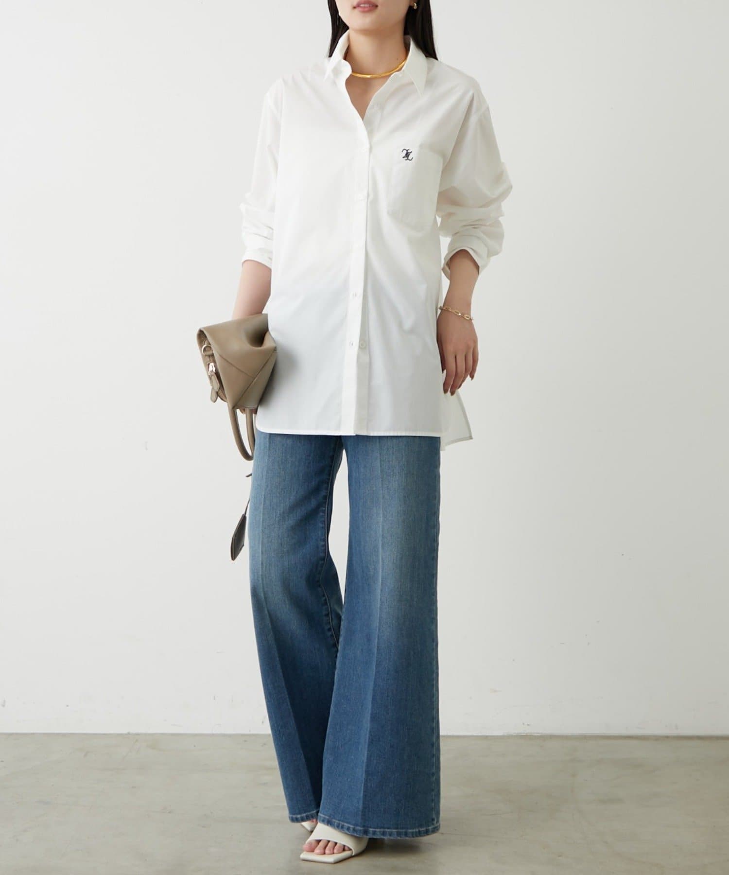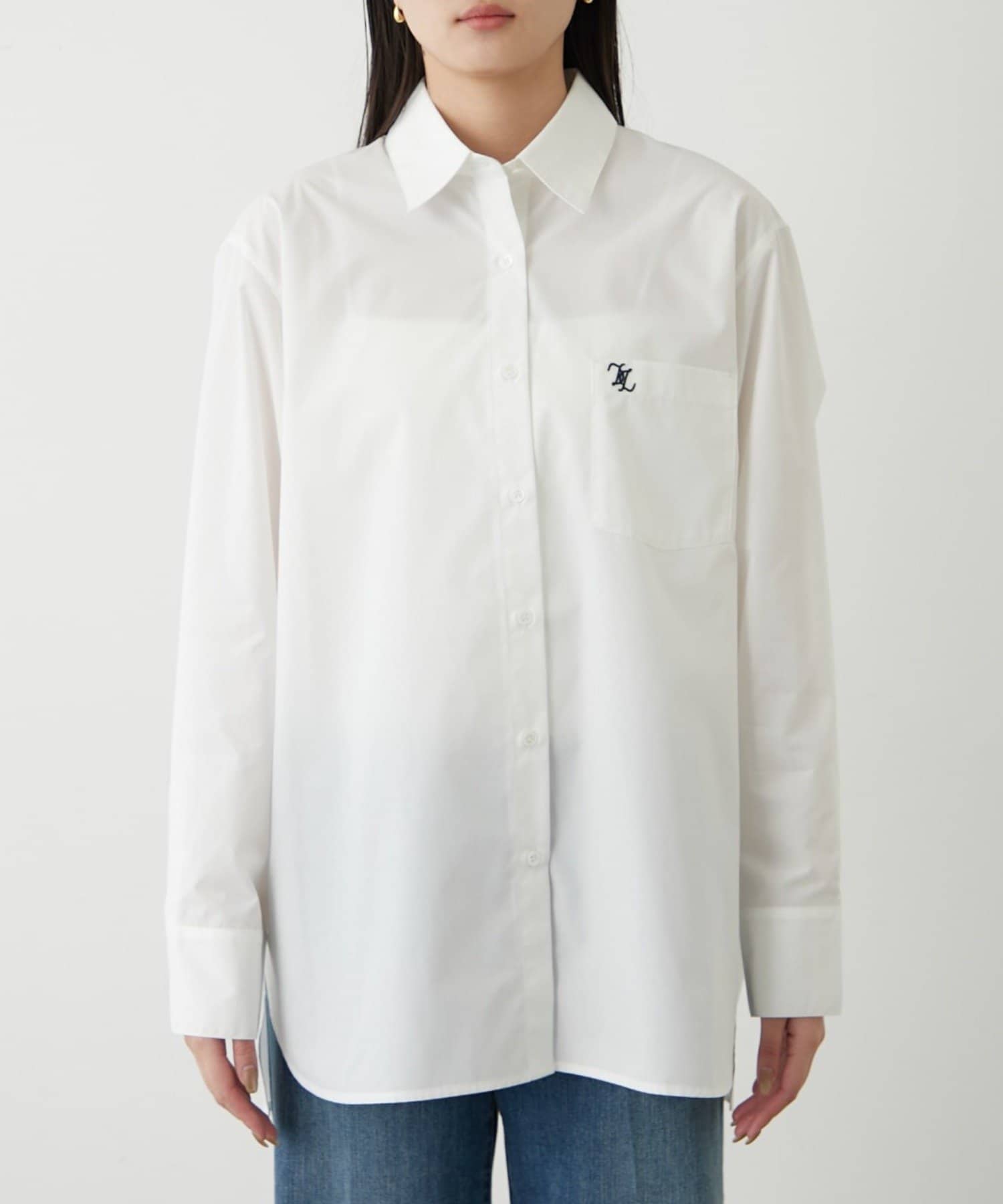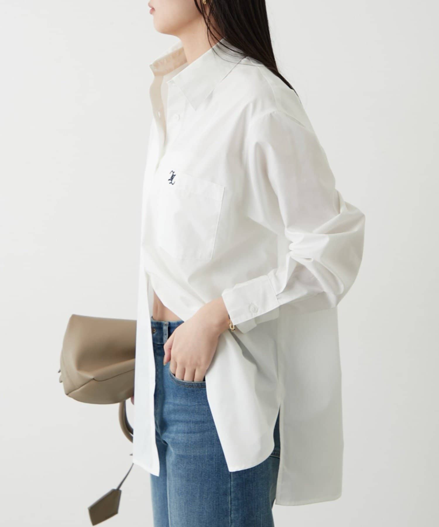 胸元のブランドロゴ刺繍が、シンプルながらも洗練された印象のロゴ刺繍シャツ