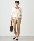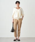襟ぐりはあえてリブなどの付属を付けず、女性らしくすっきりとしたVネックに仕上げました。