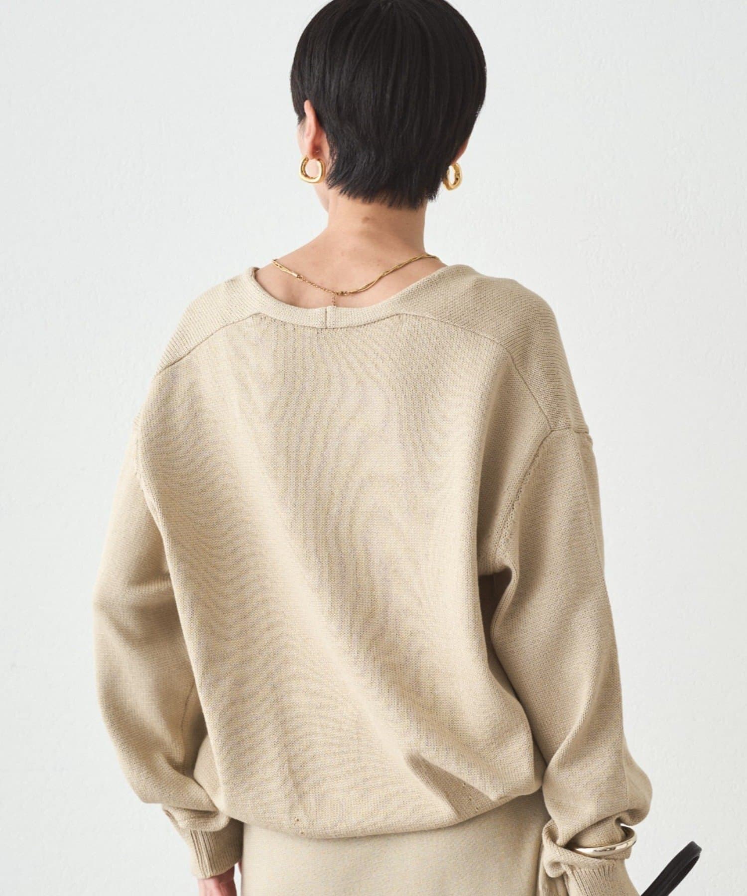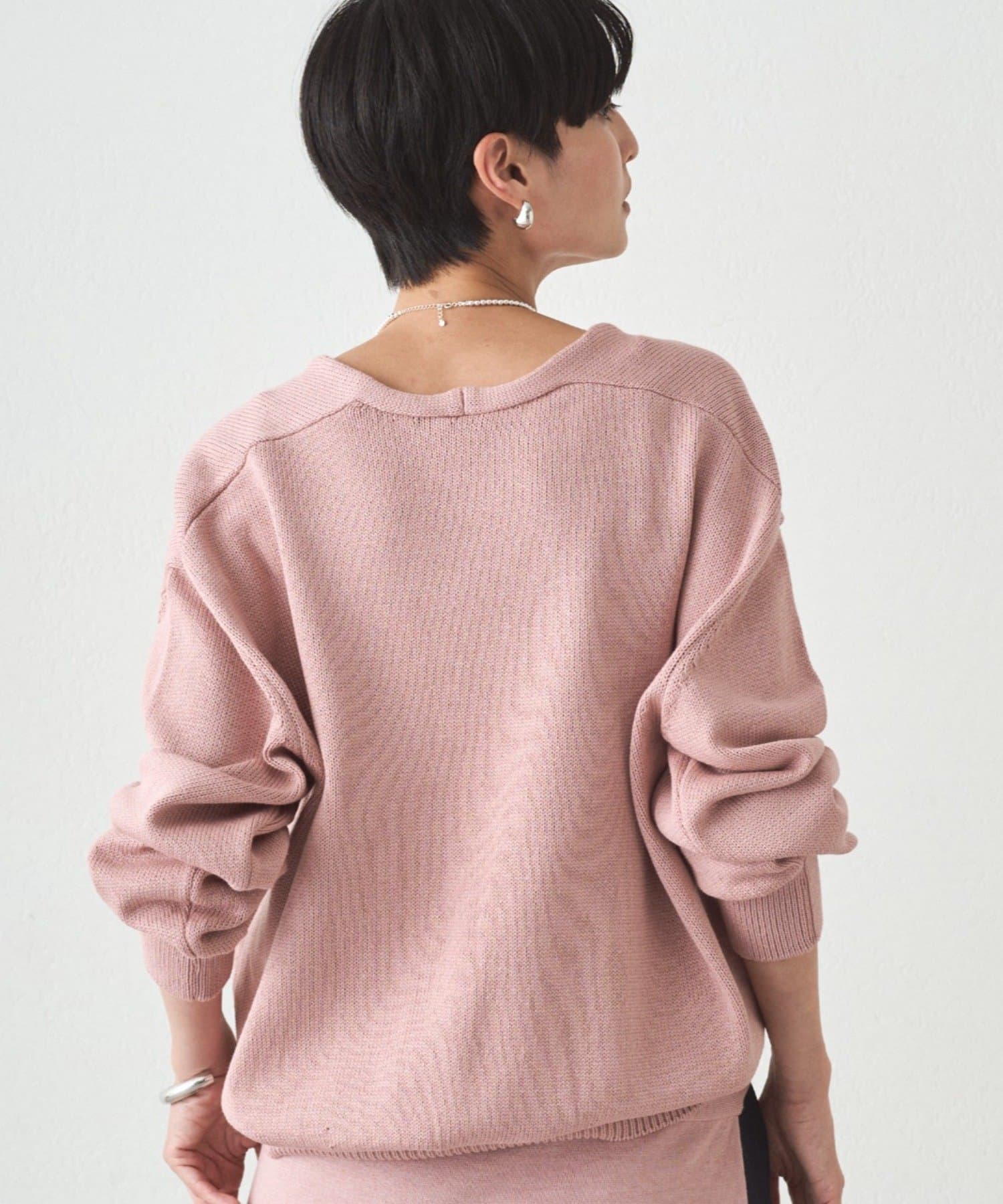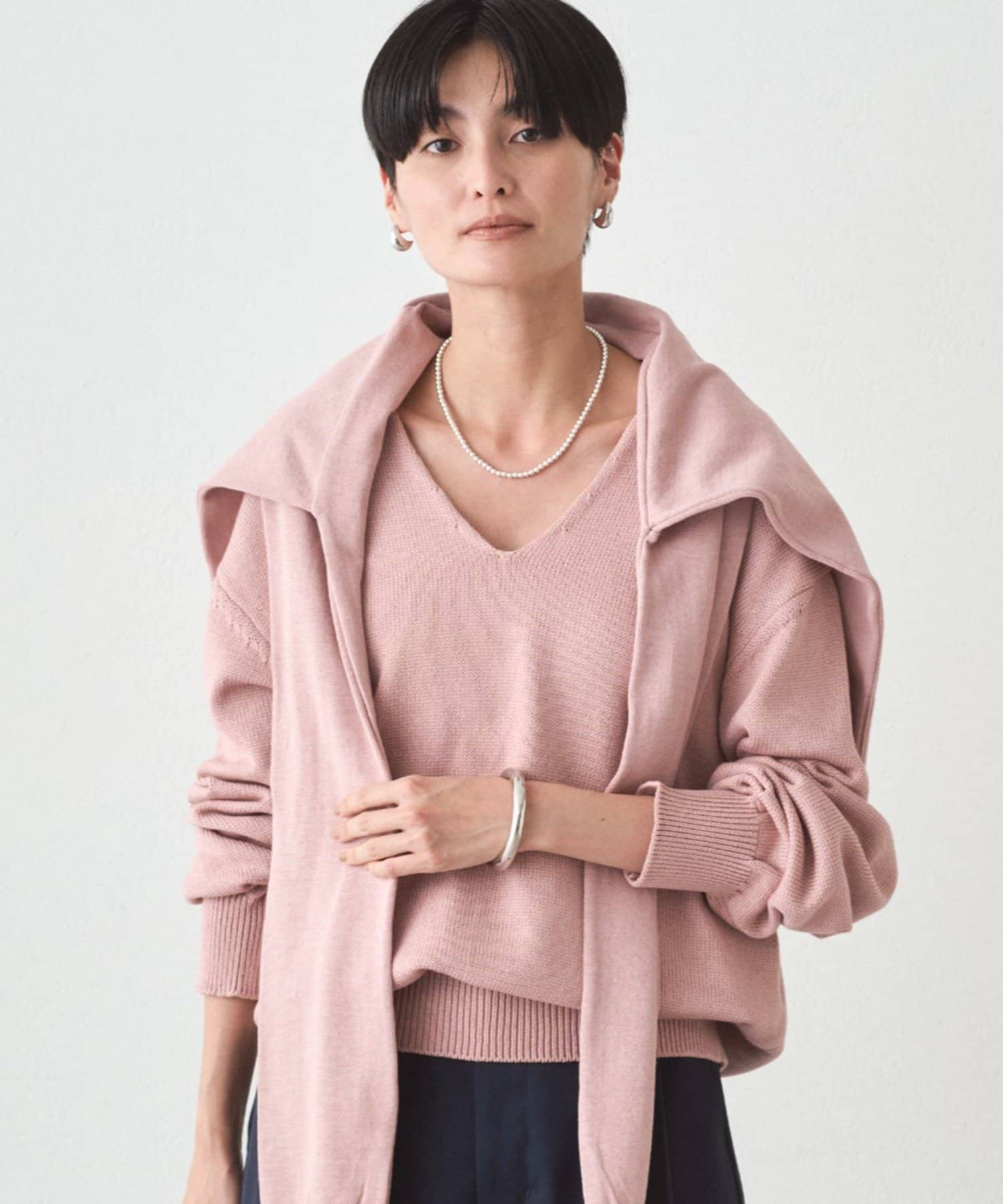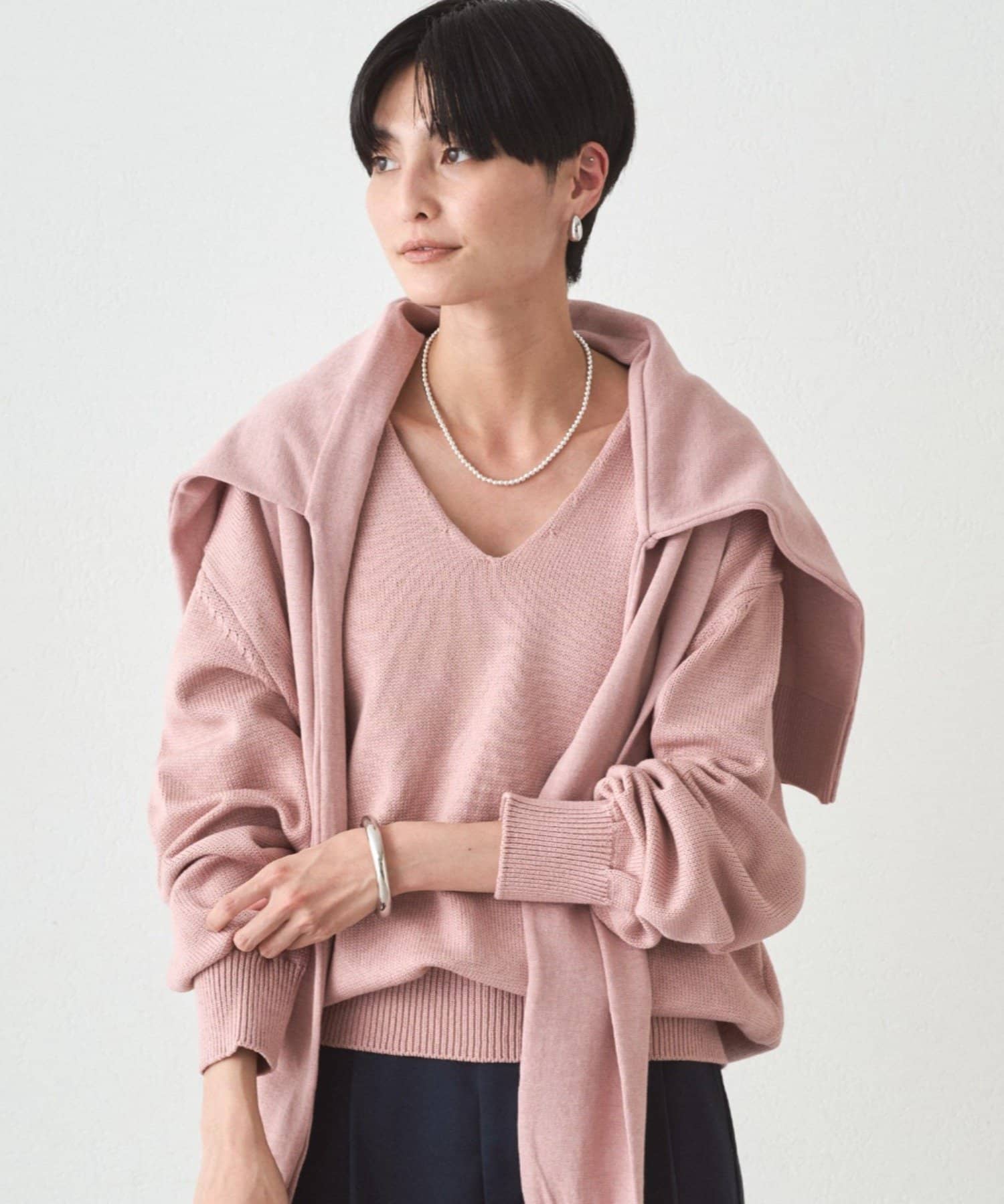 肩掛けニットと同素材で仕立てたVネックニット
