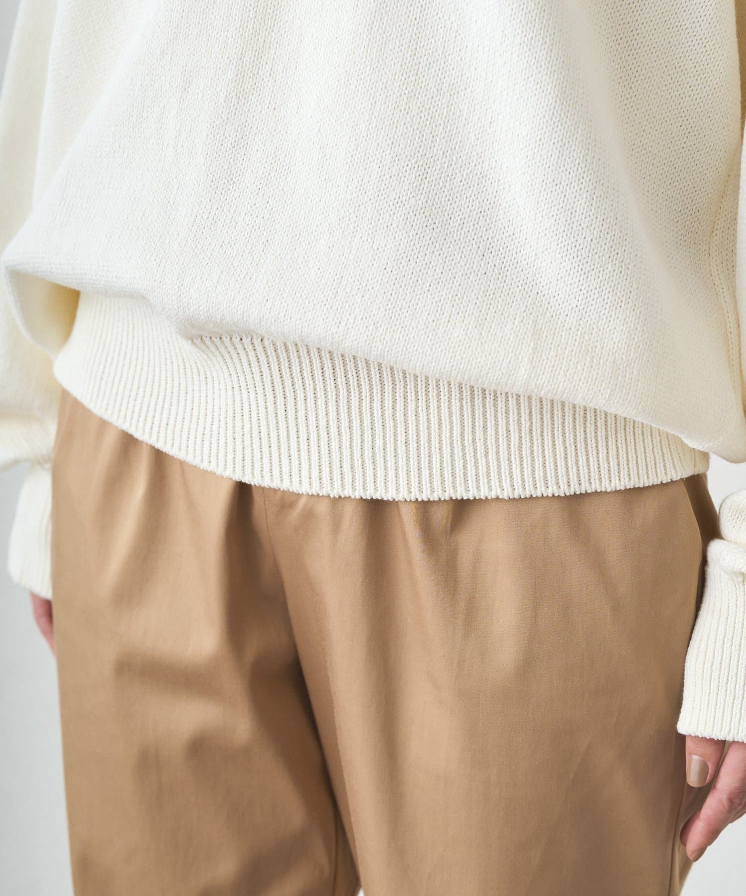 5ゲージのローゲージ編みで、日本素材のコットン糸を使用しています。しなやかさと上品な艶が魅力です。