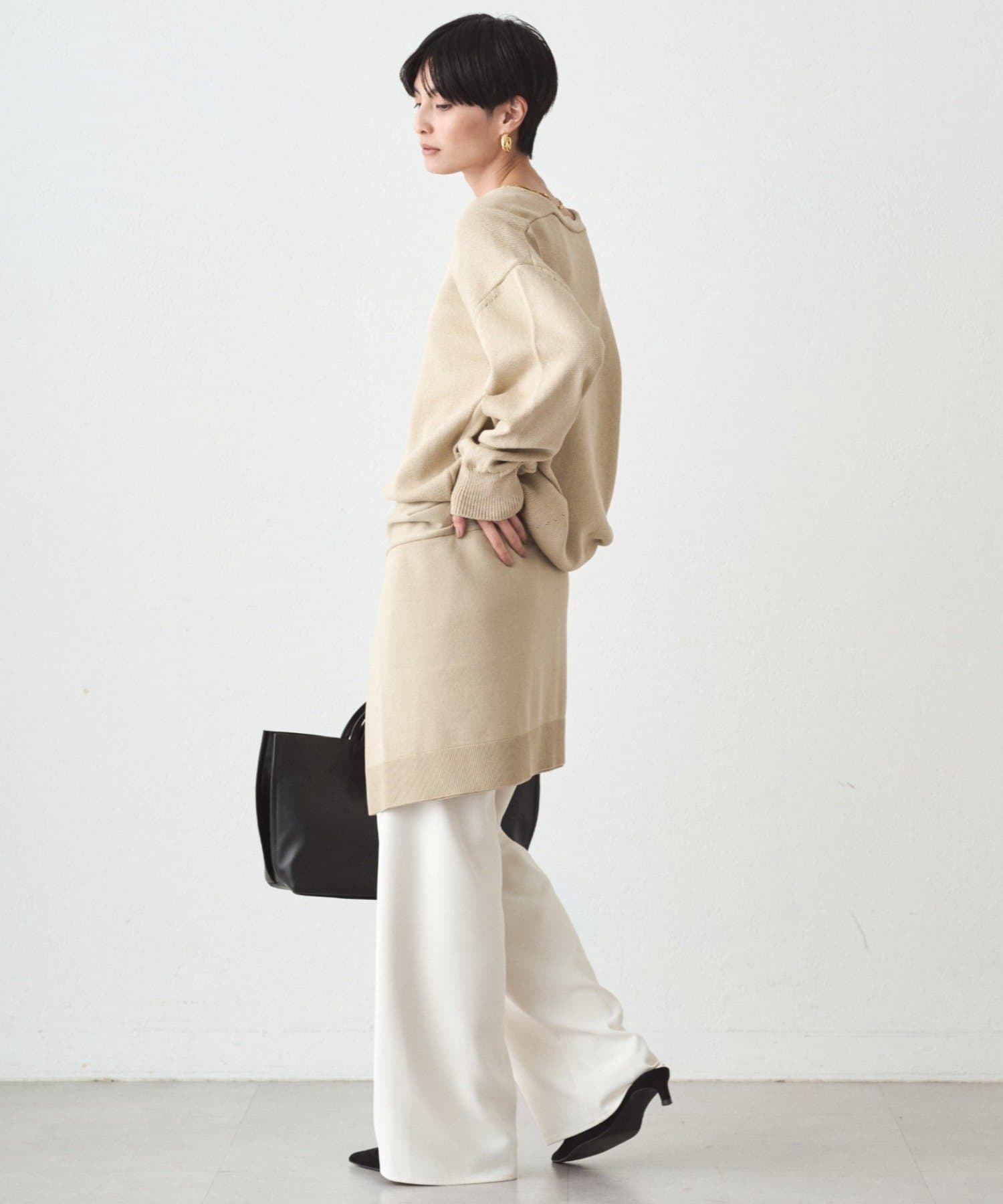 どの角度から見ても美しく見えるよう、裾まわりはコクーンシルエットで、ほどよくゆとりのある仕上がりに。