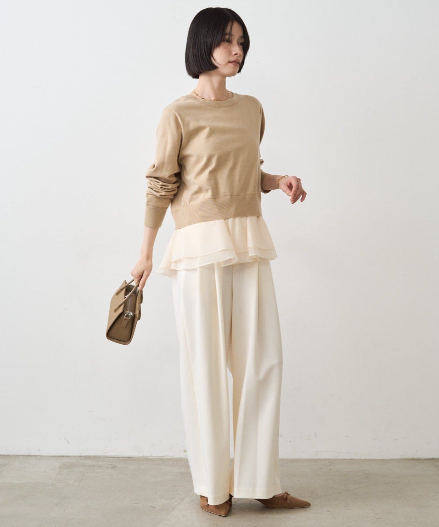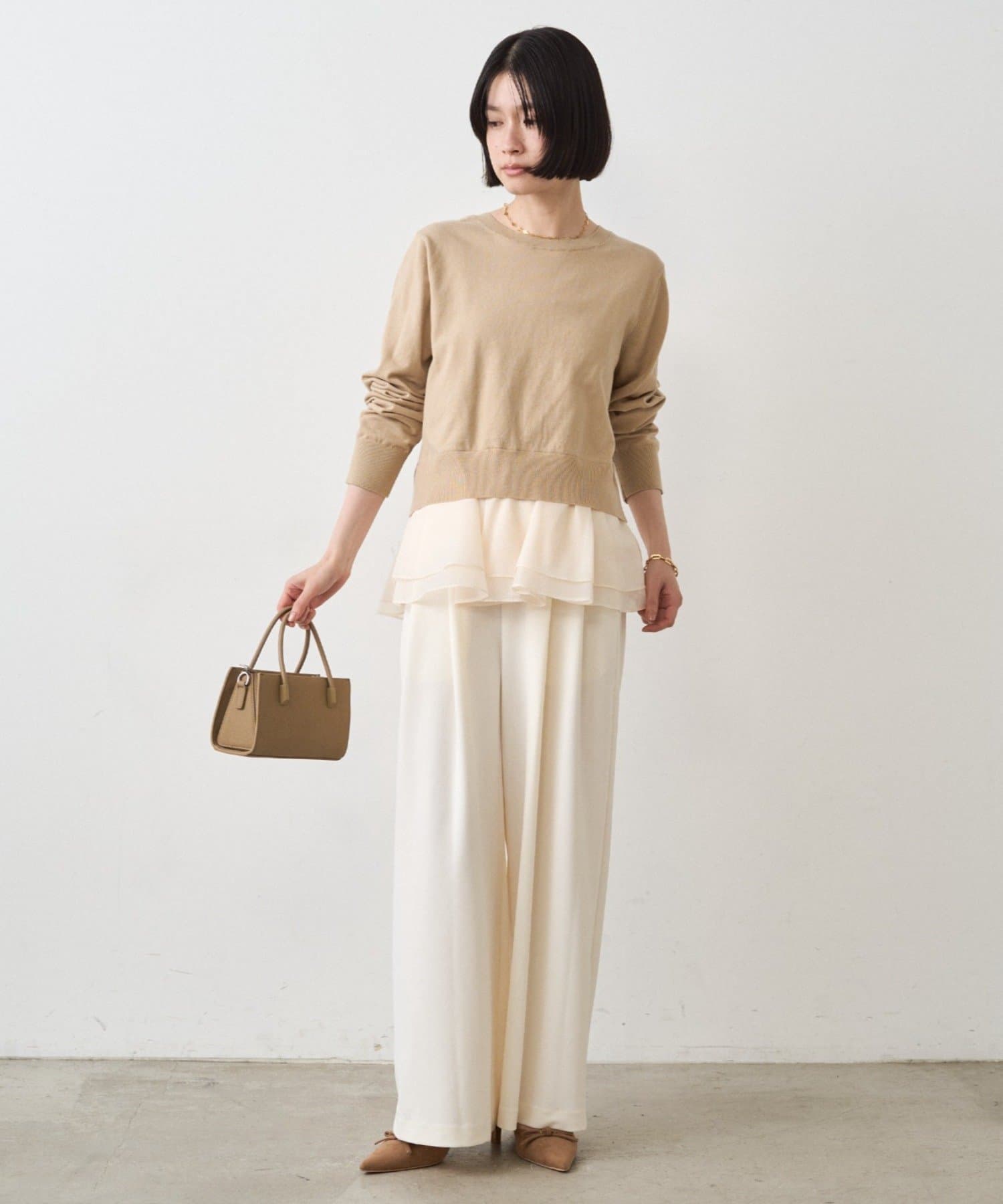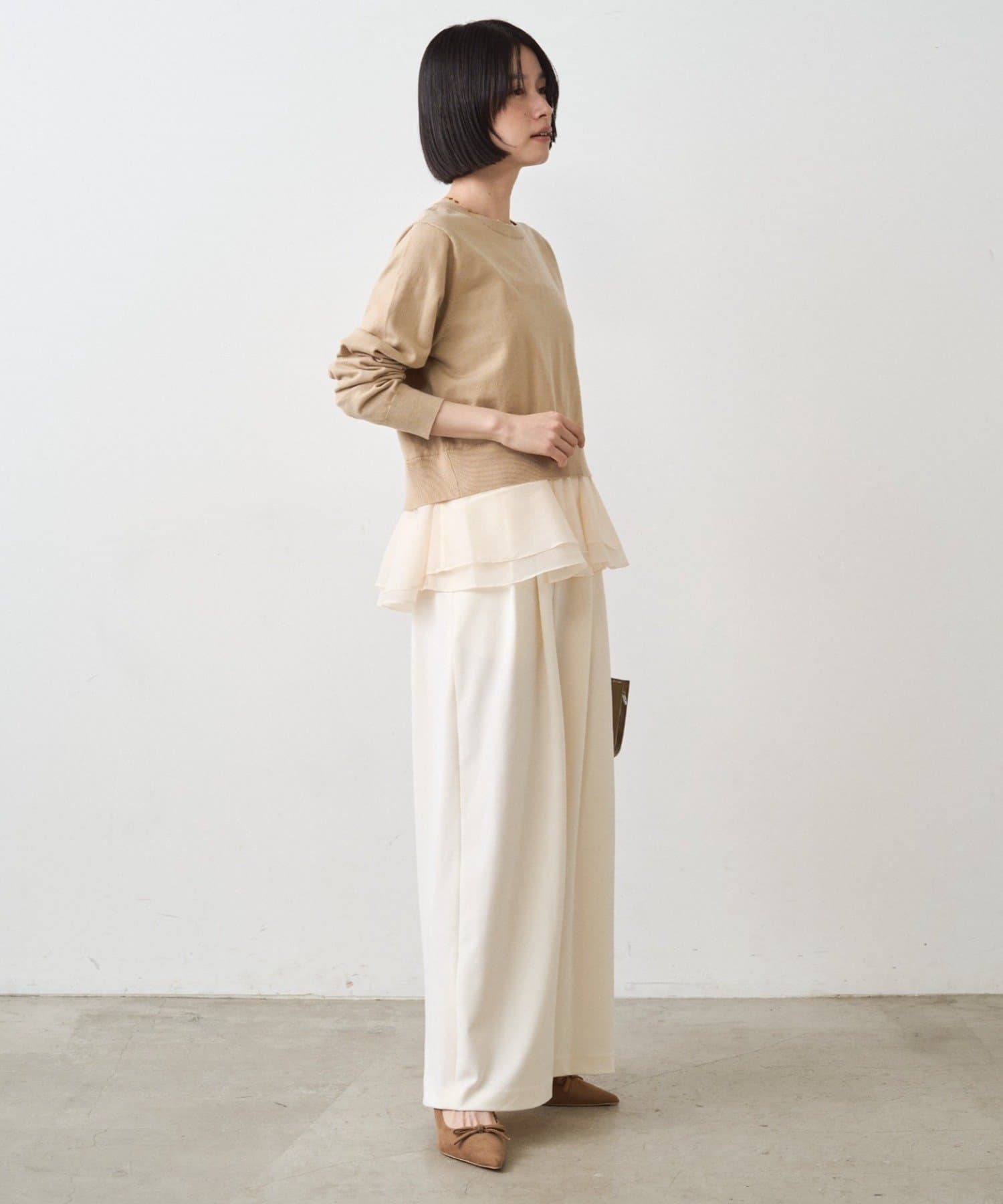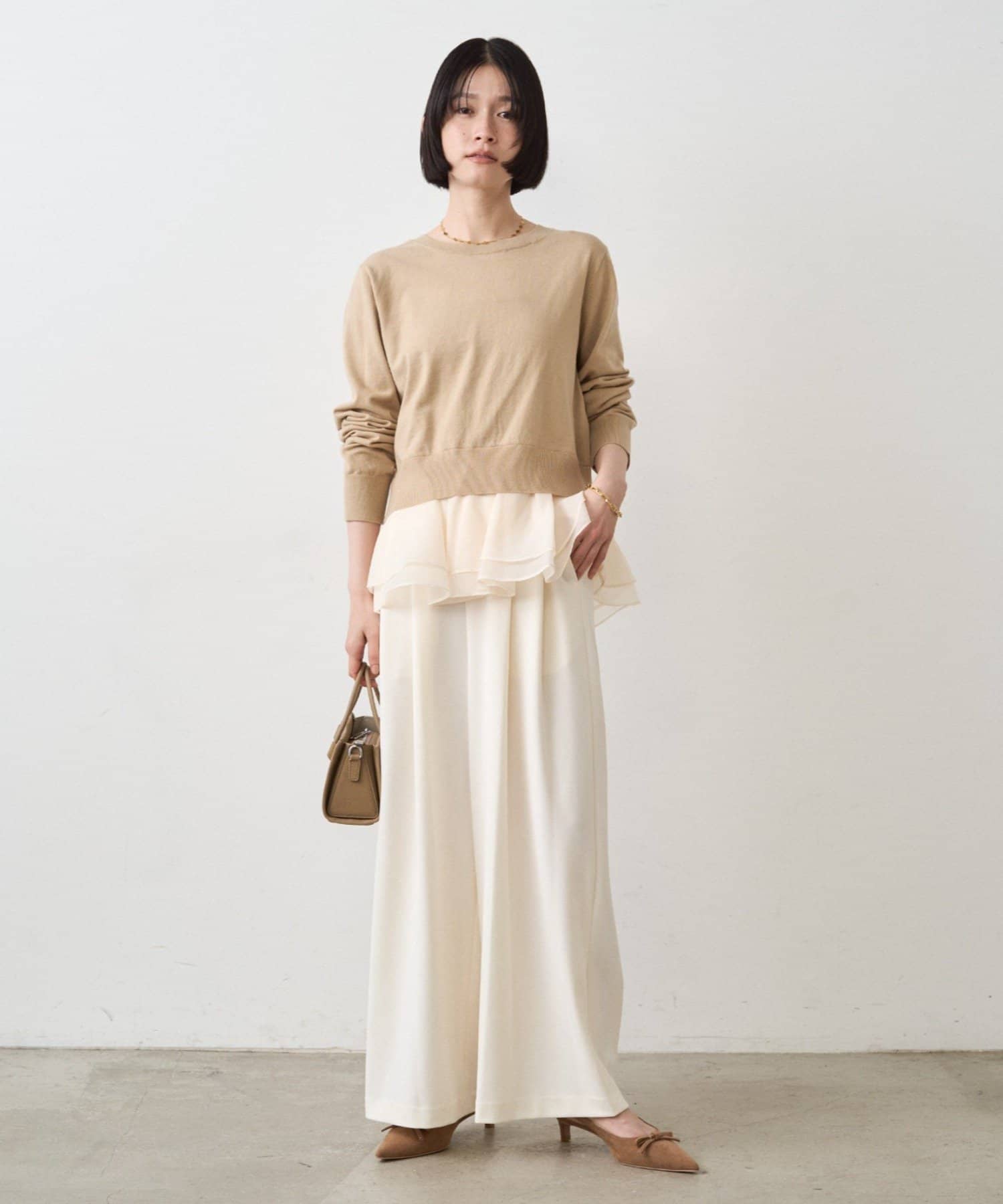 動くたびに揺れるペプラムが、着こなしに華やかさをプラス。