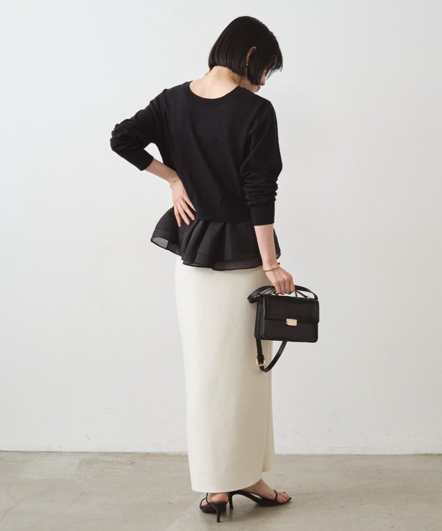 コンパクトな身頃と、裾に向かって広がるペプラムのコントラストが、女性らしいメリハリのあるシルエットを作り出し、スタイルアップ効果も期待できます。
