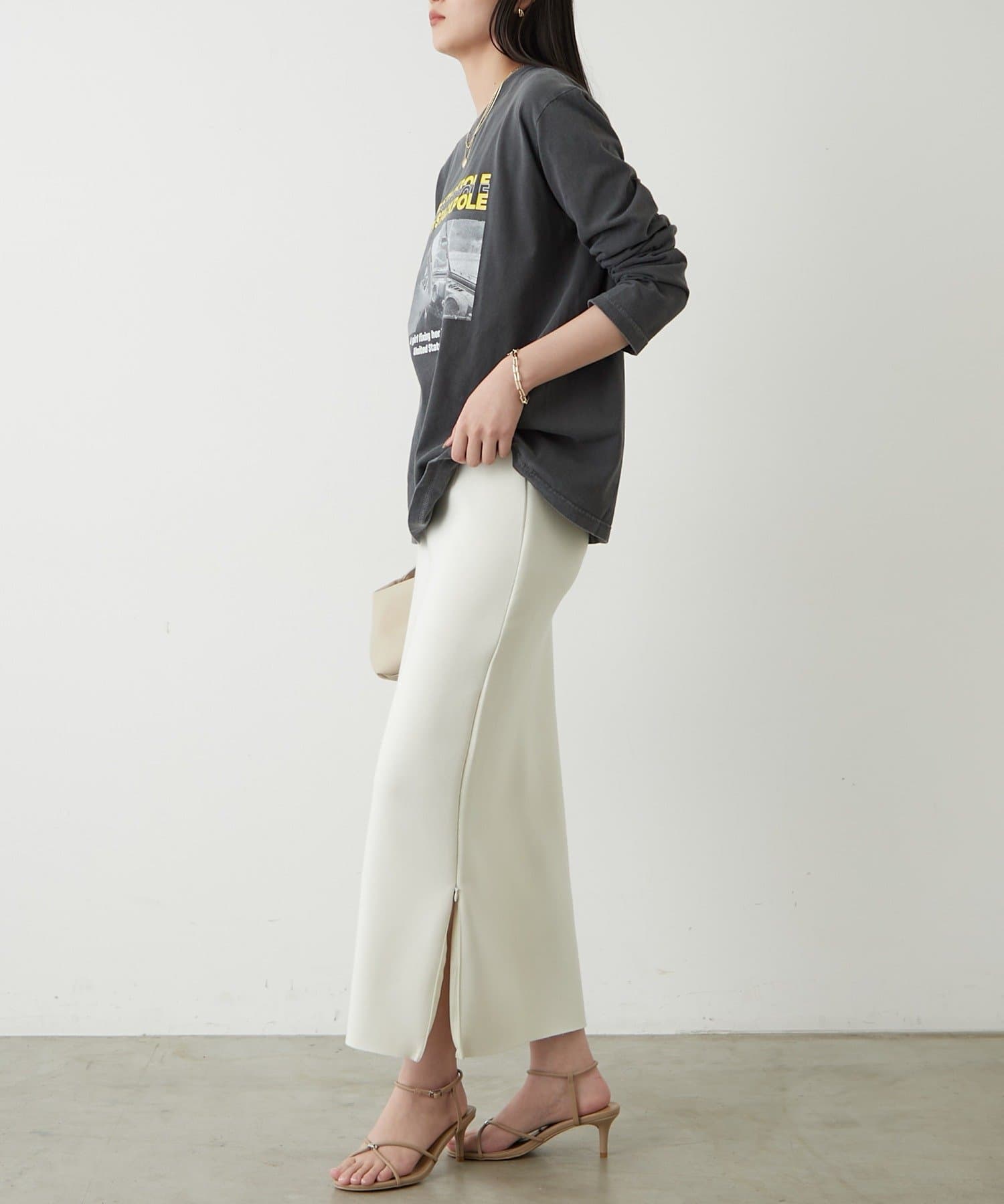 一枚で着る際は、裾をインするとバランス良く決まります。