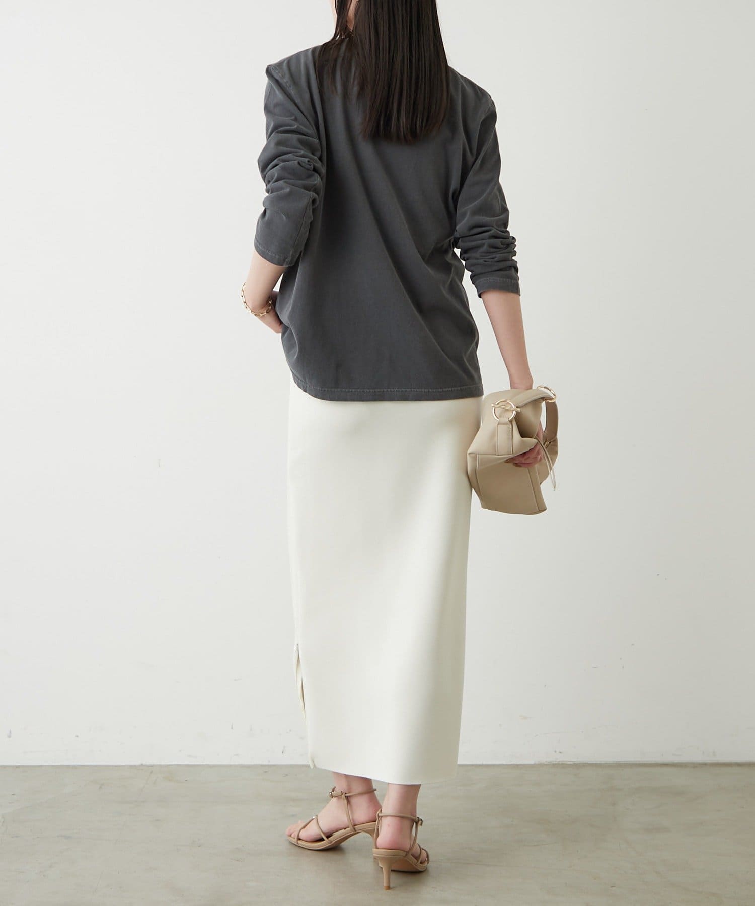 ゆったりとしたシルエットで着心地も抜群。ジャケットやトレンチコートのインナーとしても合わせやすく、季節を問わずロングシーズン活躍する万能アイテムです。