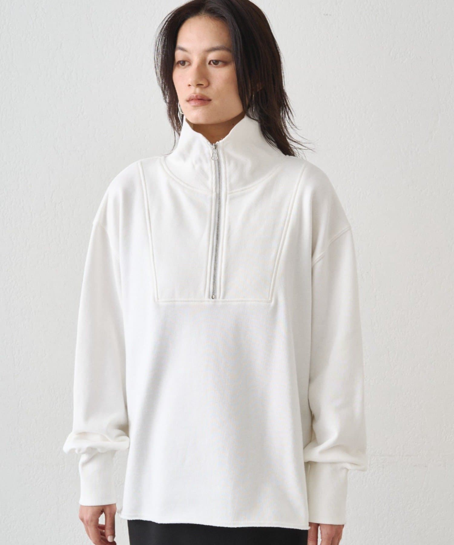 爽やかなスウェット素材のハーフZIPプルオーバー